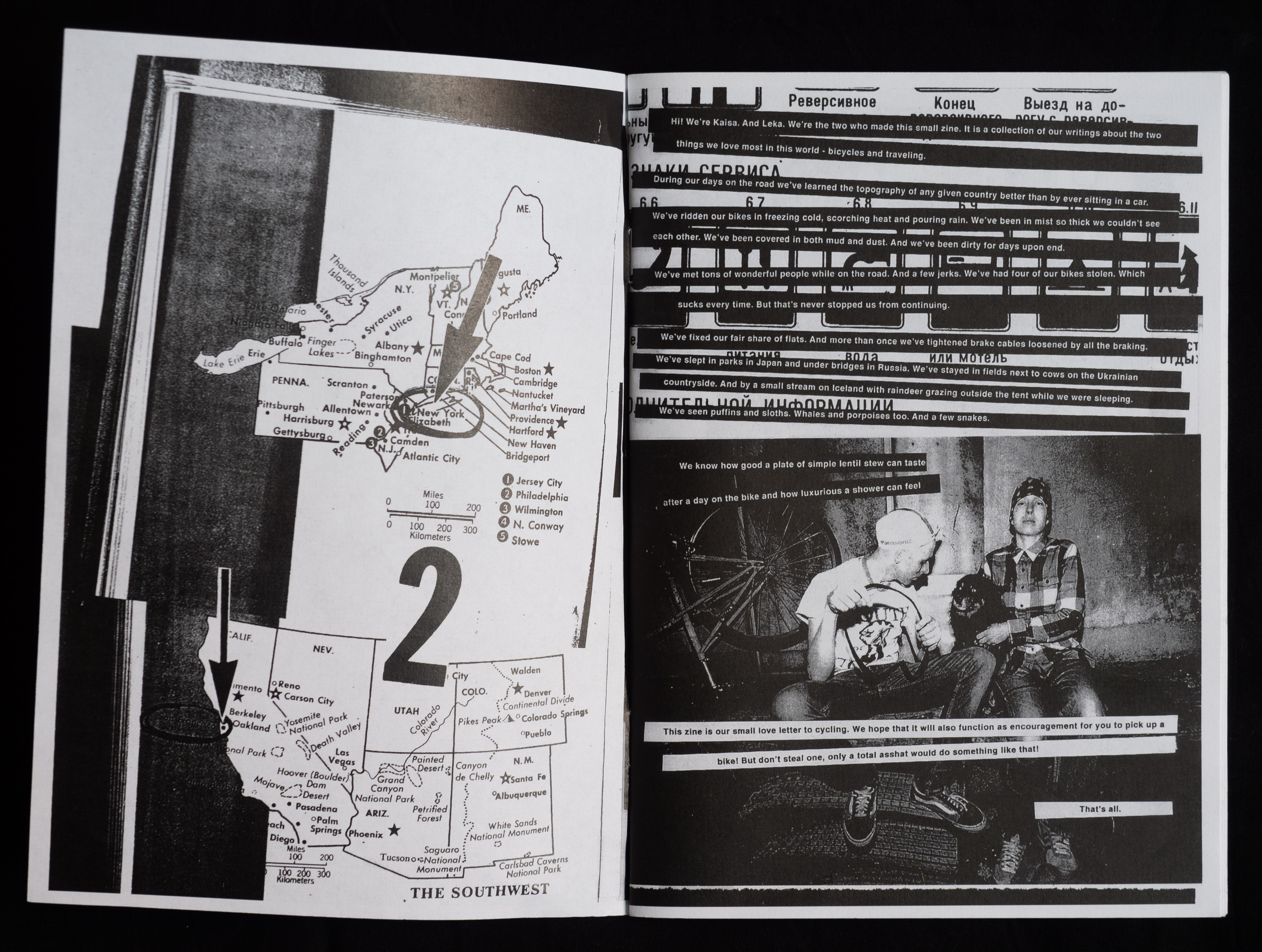 Well, actually we had two brilliant ideas. They were 1. To ride our bikes across North America, from East to West, and 2. To raise money for the trip by making and selling a punk zine about bike travel.