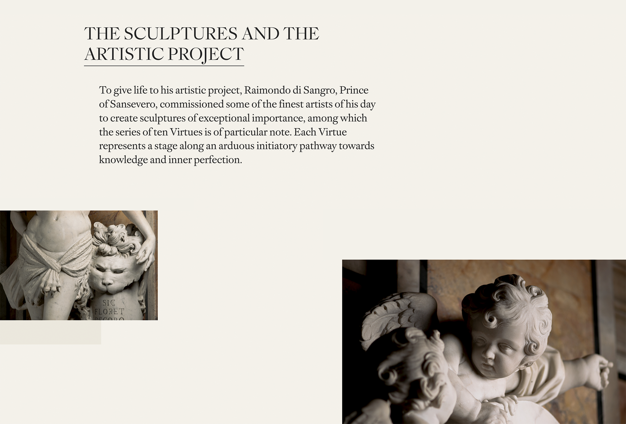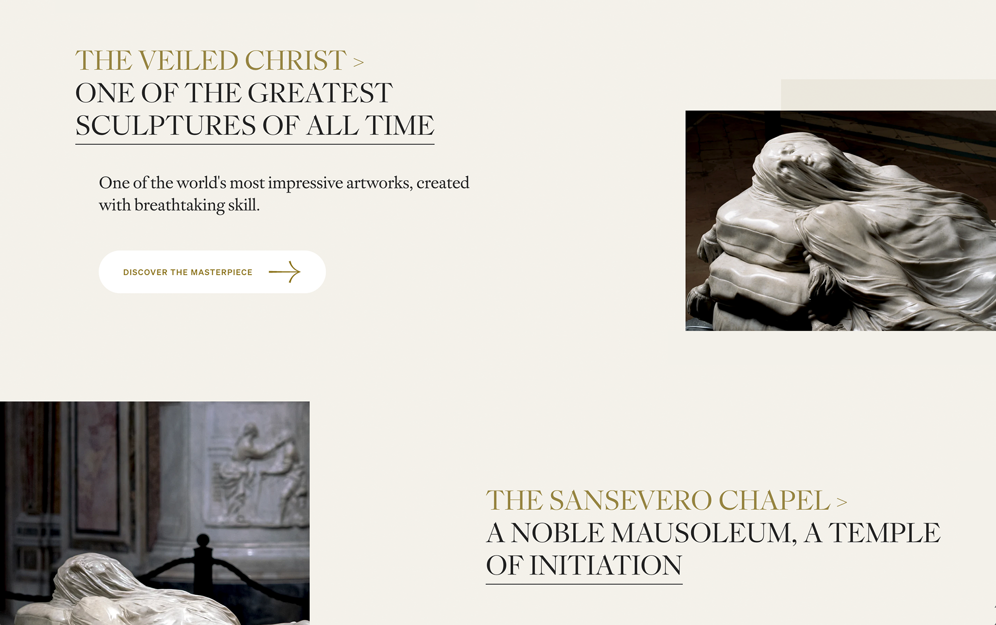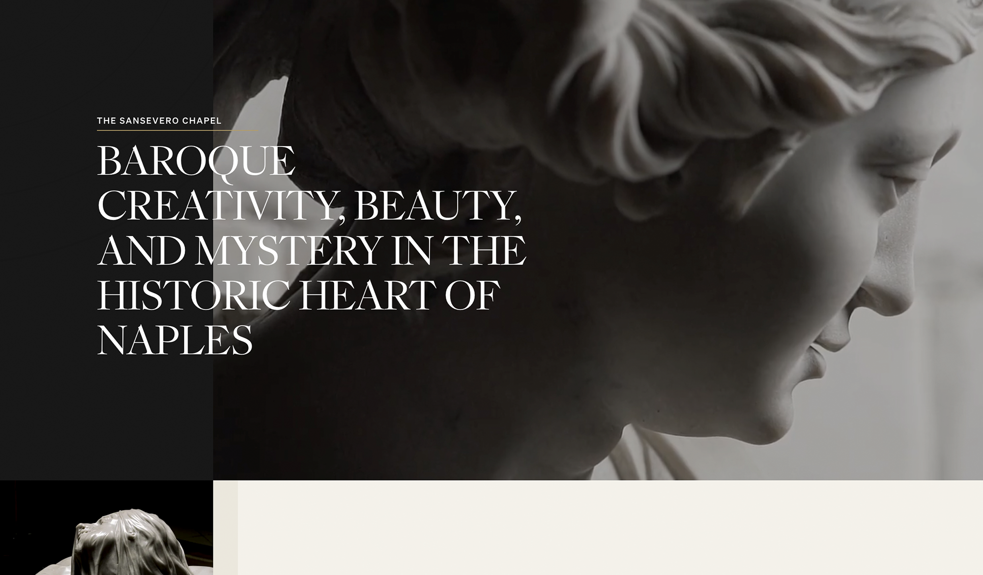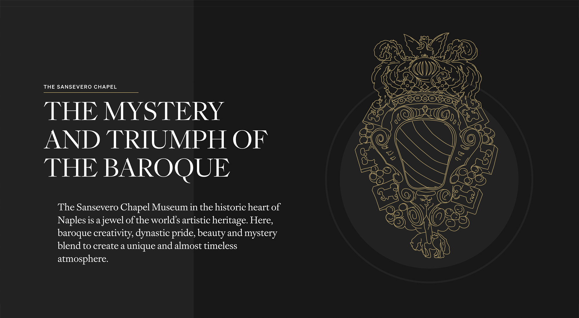Those who at least once in their lives have visited the Sansevero Chapel Museum know it: every corner, decoration or sculpture on which the gaze rests, sparks wonder. We wanted to transfer this halo of beauty and mystery even within the digital pages of the Museum and, to do so, we dived for months and months in the study of the Baroque. We have re-emerged with a surprising and accessible site, in which aesthetic choices accompany a complete and immersive browsing experience. Just like a real visit to the chapel.