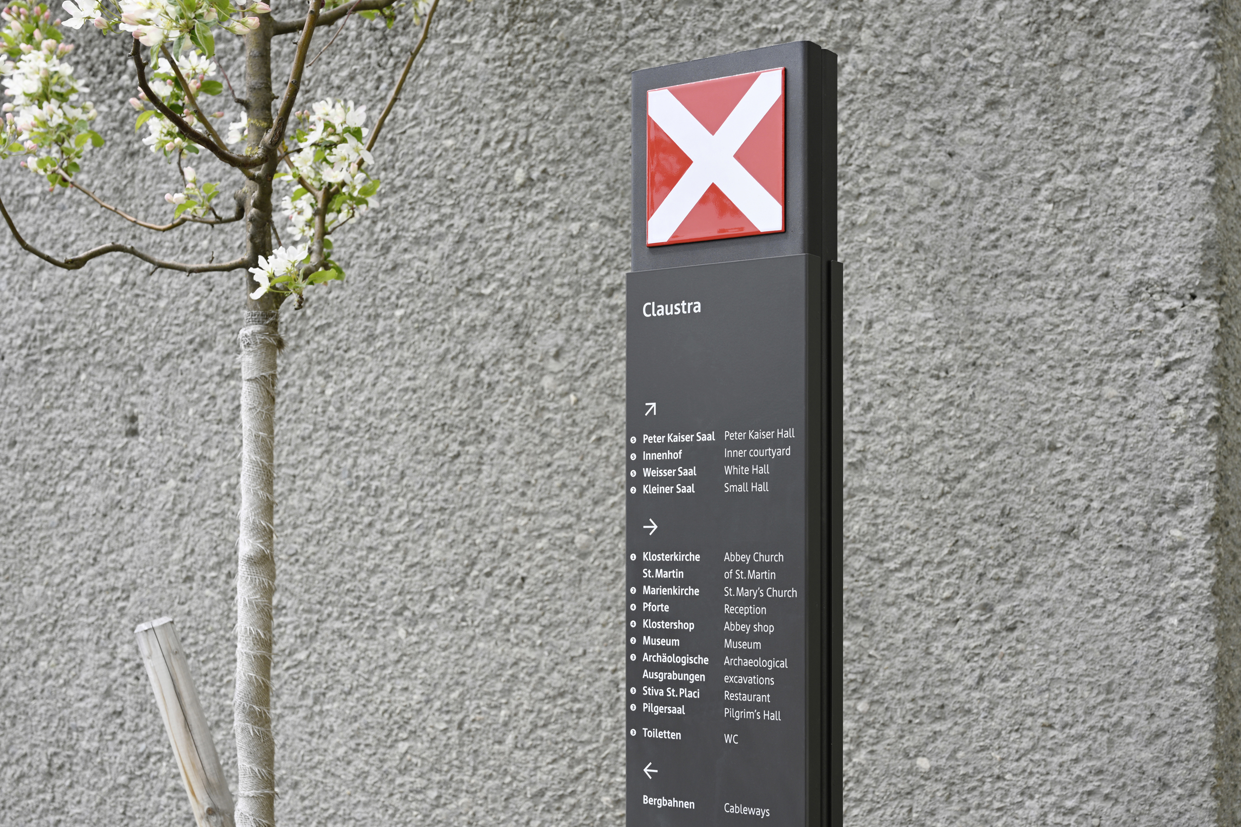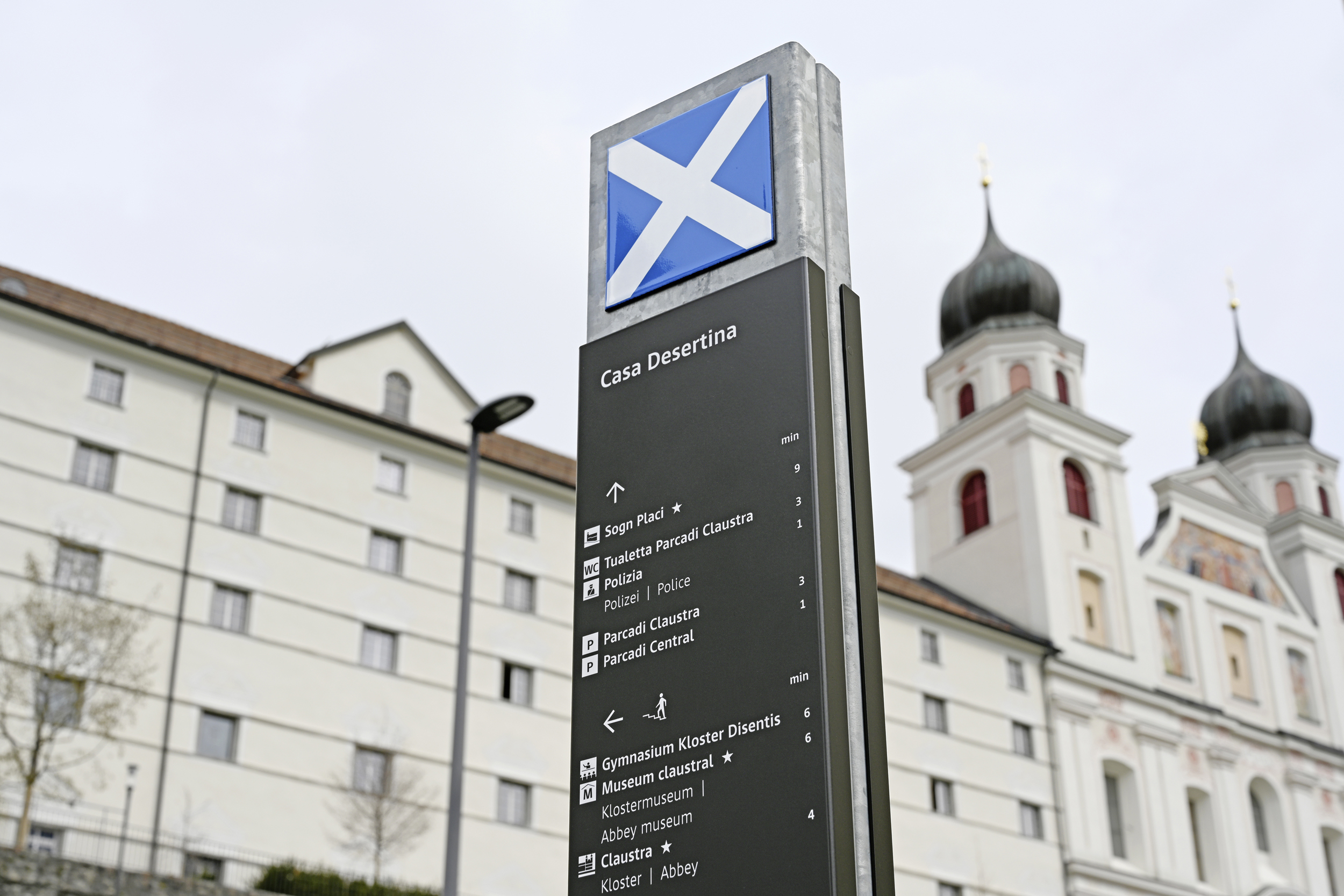 Cast is used for the signs in the beautiful village Disentis (Romansh: Mustér) in Switzerland. Signaletica Werner Egli conceived and designed the signs and infographics for the picturesque town with the well-known monastery and the historical buildings.