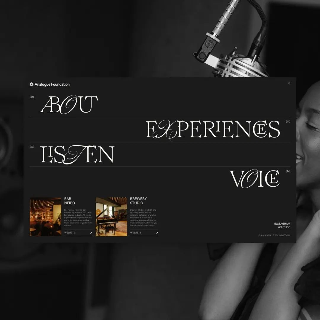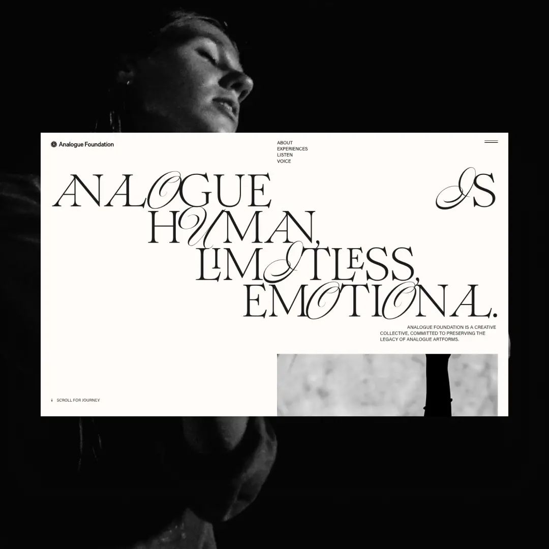 Designed by Shhh, Analogue Foundation’s new website has won two industry awards at Awwwards, “Site of the Day” and “Developer Award”. This website is set in the elegant Romie Regular with its unique set of ligatures, designed by Margot Lévêque. Romie is seamlessly blended in some titles with the script Nautica, designed by Resistenza. The sans-serif typeface employed is Acumin, a creation of Robert Slimbach, available on Adobe Fonts.