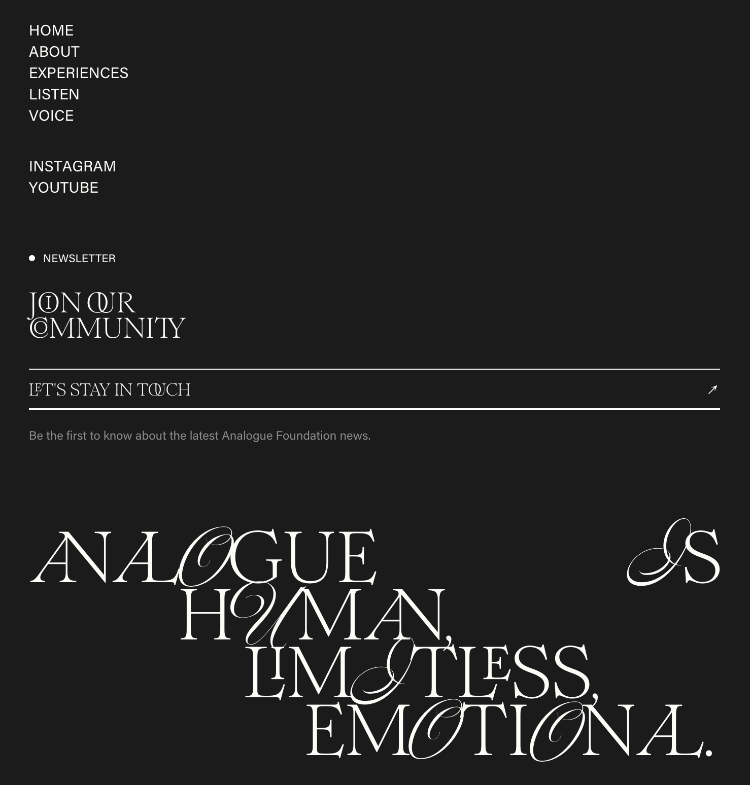 What is “analogue”? It’s not easy to sum up in one word. Simply put, it’s the feeling of being alive in the present moment. Analogue artforms and mediums have a personal quality to them, influenced by the human beings who perceive and interact with them.
