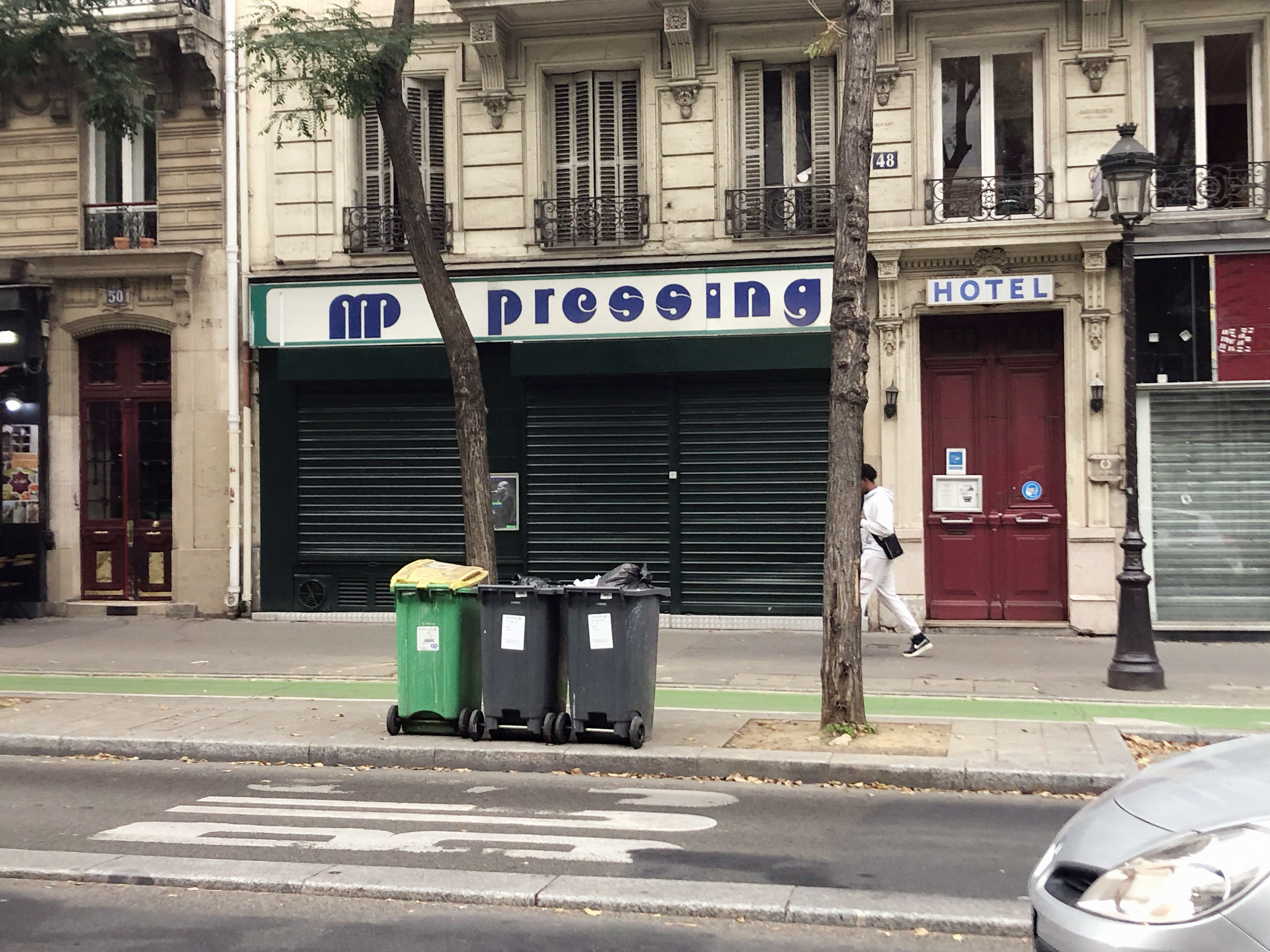 MP – of course! When I spotted this shop front I figured it was “Mr Pressing”.