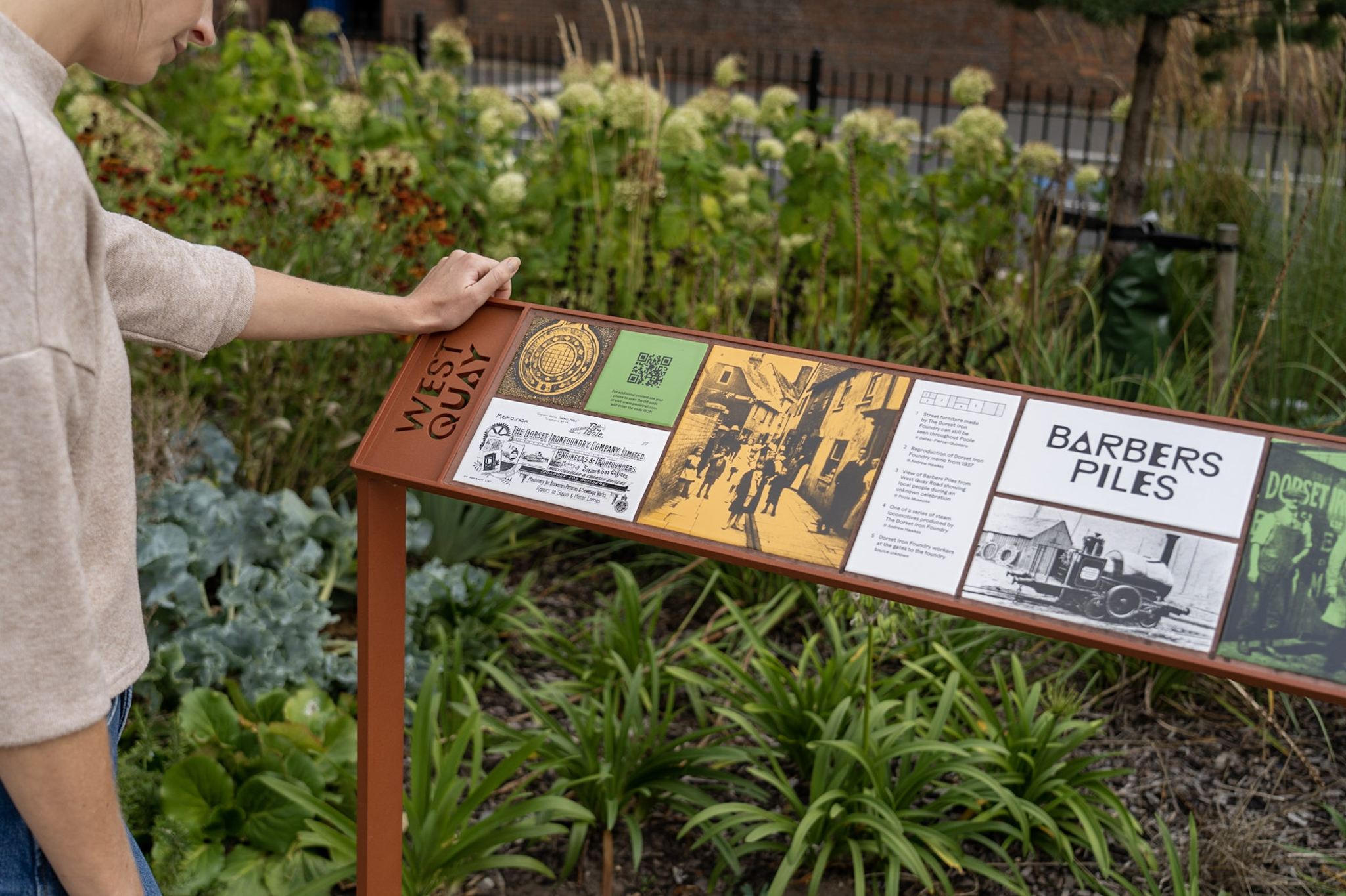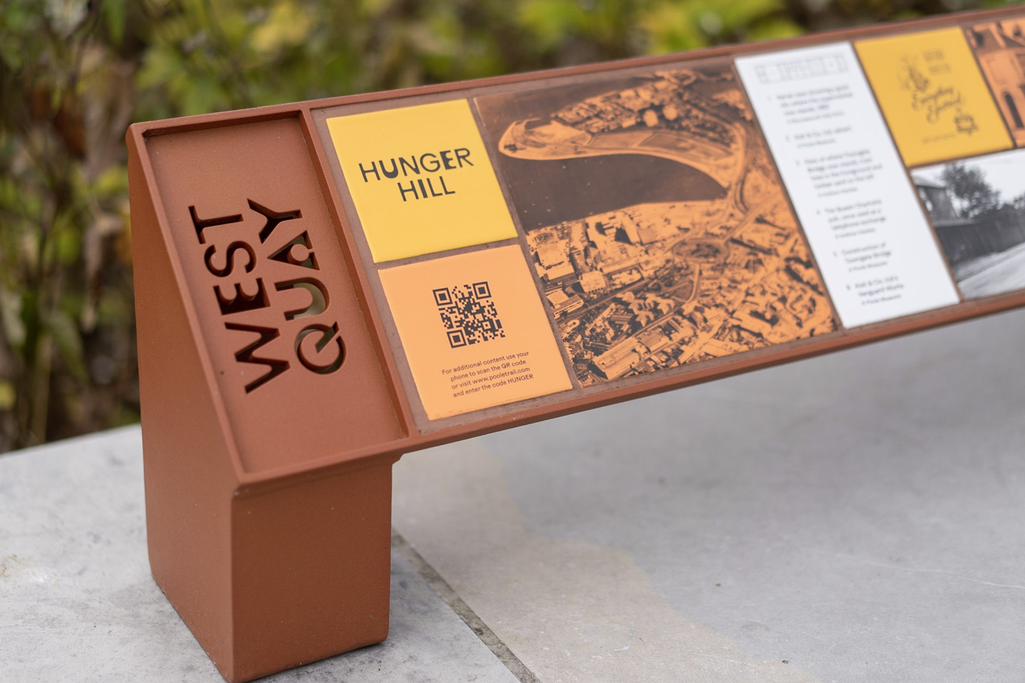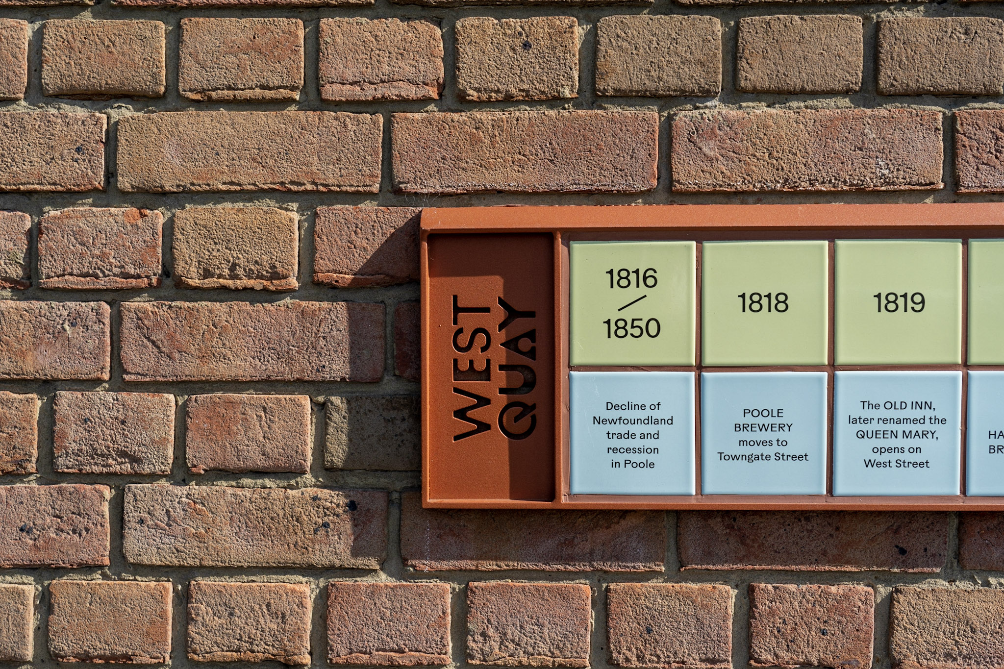 Identity, graphic design and wayfinding for West Quay, a placemaking and public art project in Poole, Dorset, in collaboration with architects Dallas—Pierce—Quintero.