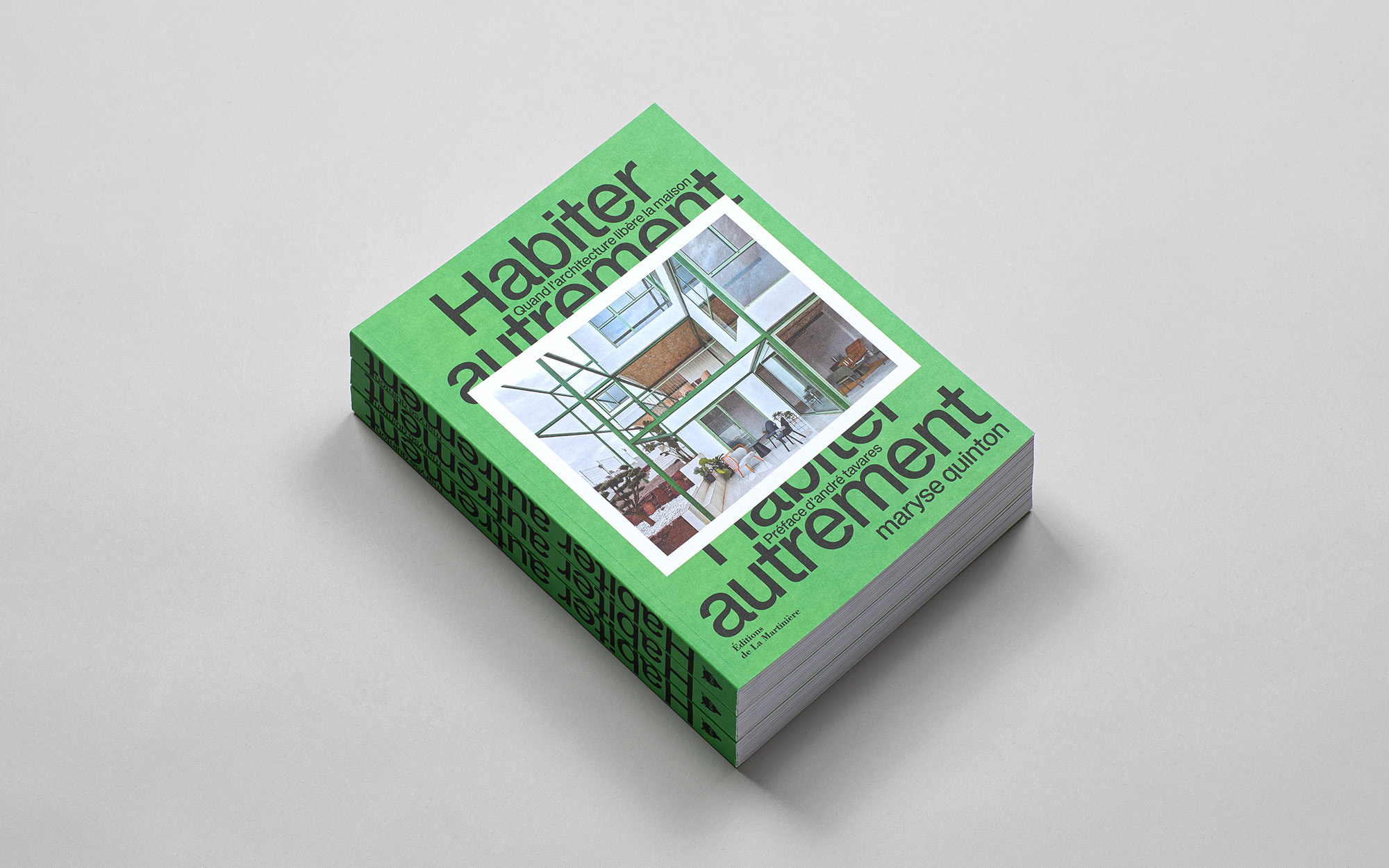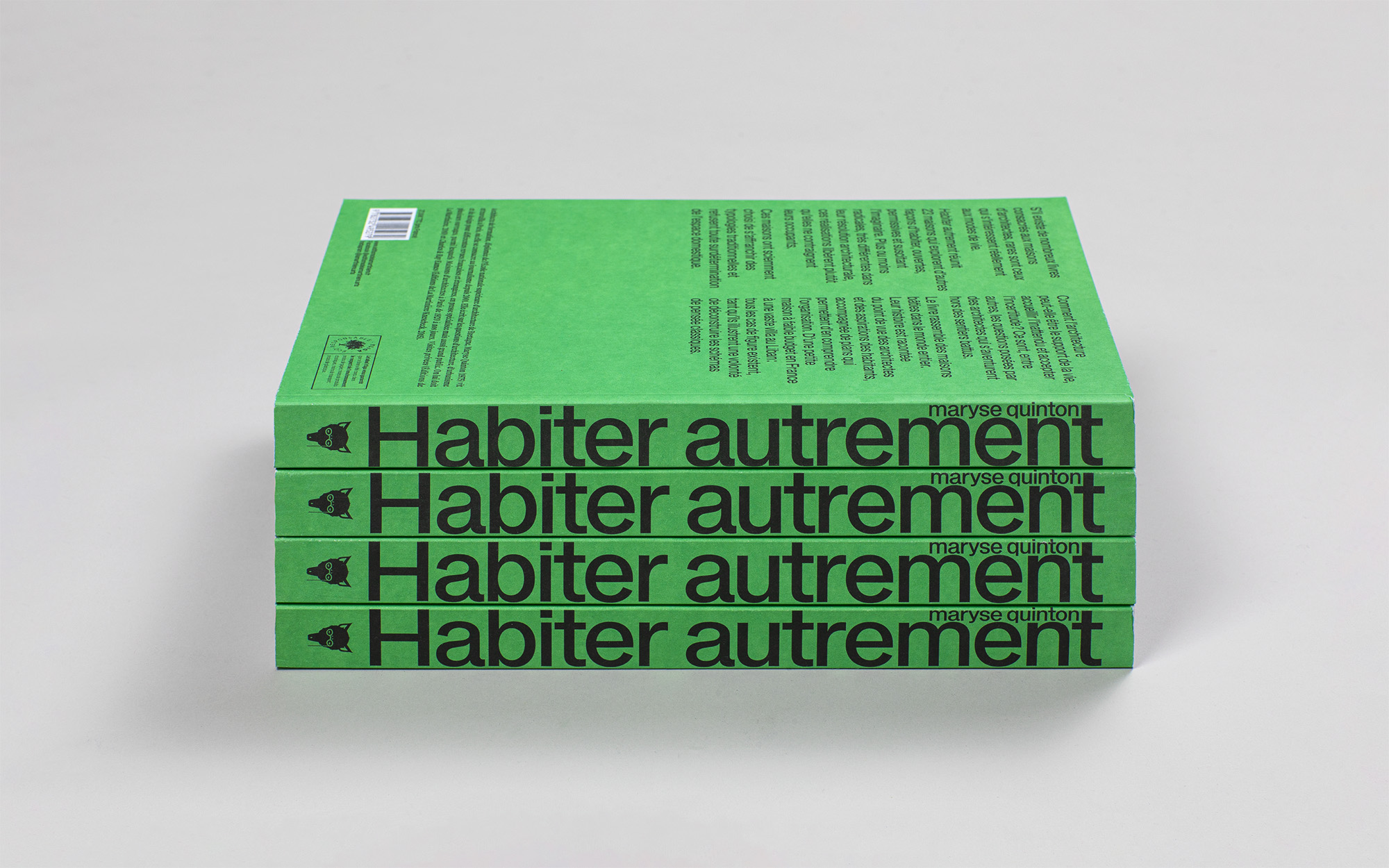 For Maryse Quinton’s book Habiter autrement, Dune Lunel Studio chose EB Trainer Grotesk distributed by Électro-bibliothèque for a display use but also for a deck use. The accompanying serif is Boogy Brut by Bureau Brut.