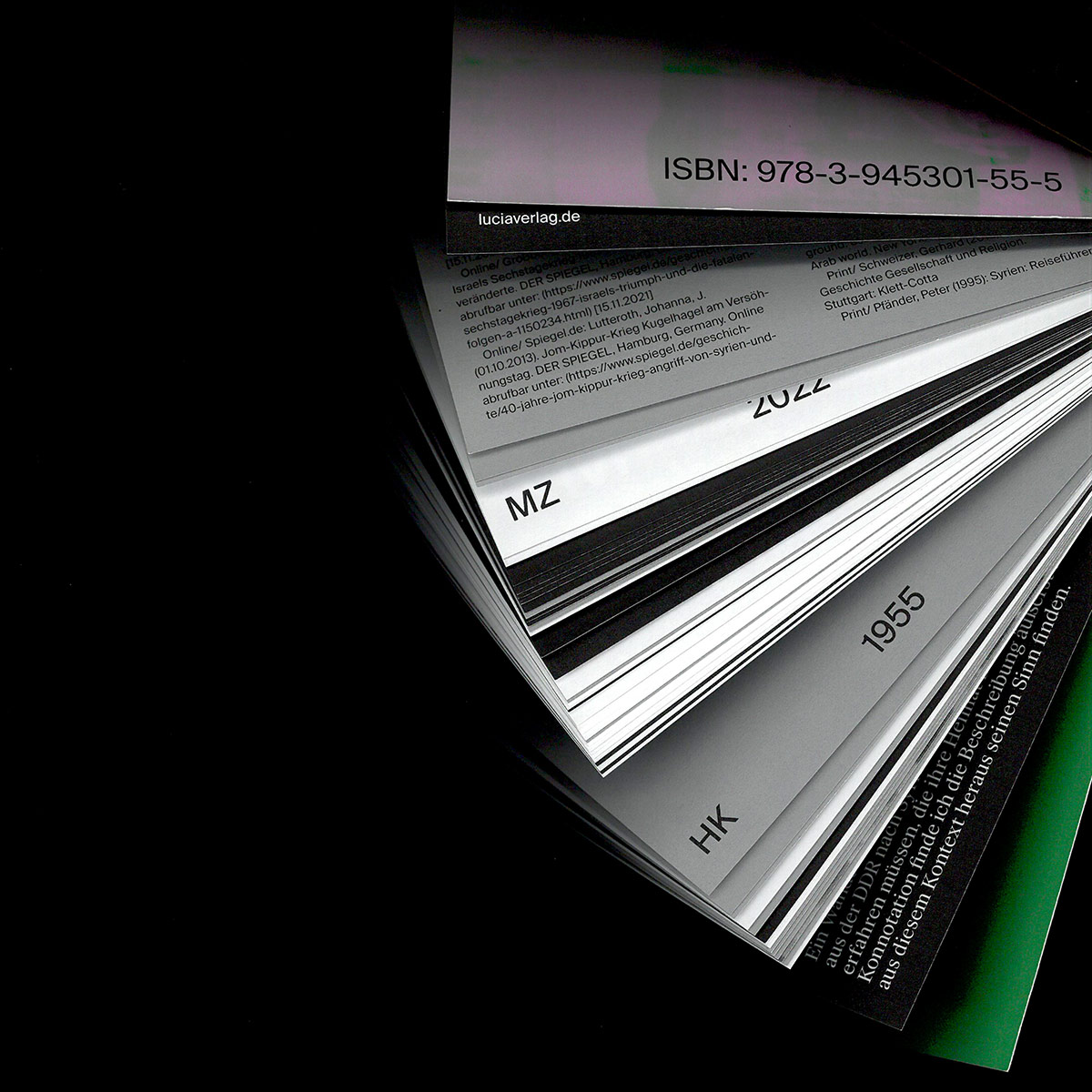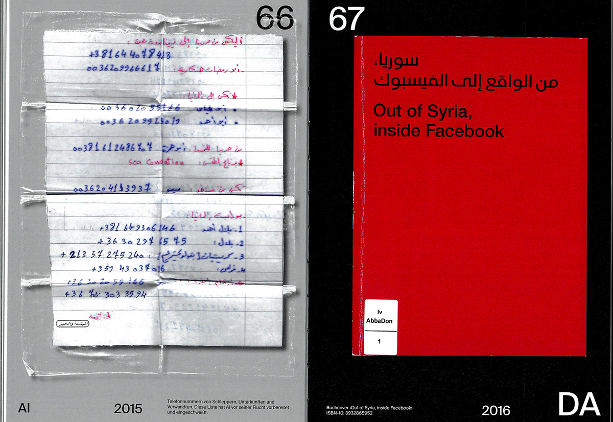 Damaskuserlebnis is a thread-sewn brochure with 104 pages, measuring 16.5×23.5×1 cm. It was digitally printed on 270 gsm Symbol Card and 120 gsm Lona Offset by DZA Druckerei zu Altenburg who also took care of the OTA binding. The book is available from do you read me?! Berlin. ISBN 978–3–945301–55–5