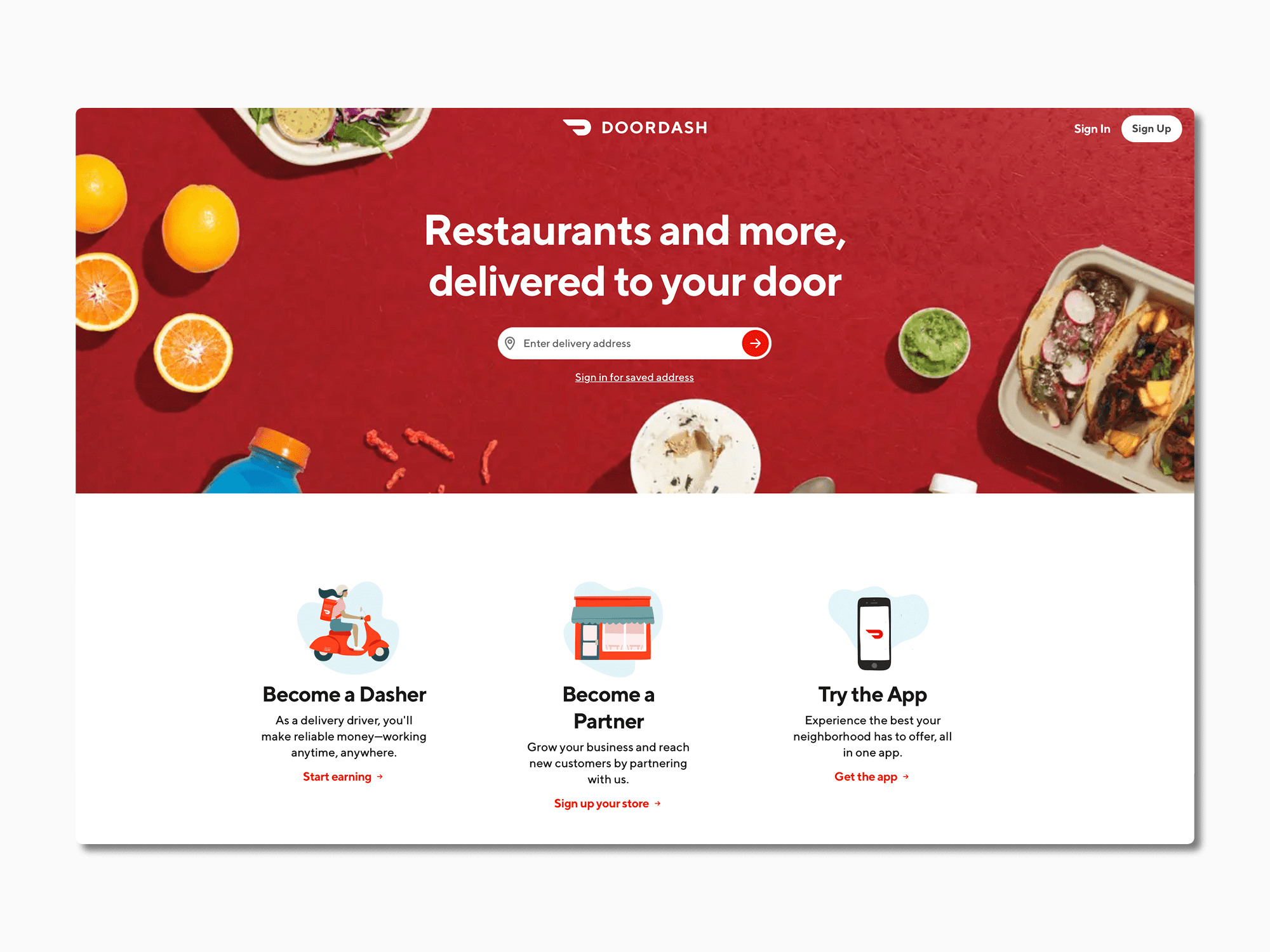 DoorDash Contributed by TypeType on Dec 16th, 2023. Artwork published in 2018. Source: www.michaelallendesign.com License: All Rights Reserved. DoorDash is a large global online food ordering and delivery service. Since the 2018 rebrand by Character (now Michael Kent Allen), TT Norms Pro is used for the website and beyond. Source: www.doordash.com License: All Rights Reserved. Source: www.michaelallendesign.com License: All Rights Reserved. Source: www.michaelallendesign.com License: All Rights Reserved. Source: www.doordash.com License: All Rights Reserved. Source: www.michaelallendesign.com License: All Rights Reserved. Source: www.michaelallendesign.com License: All Rights Reserved. Source: www.doordash.com License: All Rights Reserved. Typefaces More about TT NormsGet TT Norms Formats Web (5514) Advertising (2074) Branding/Identity (8284) Booklets/Pamphlets (2356) Topics Services (1525) Food/Beverage (3009) Designers/Agencies Michael Kent Allen (1) Character (4) Tagged withbrands (1476)identities (2287)websites (3469)food delivery (42)food (285)logos (4887)all caps (7403) Artwork location United States (9767) San Francisco (336) In SetsTypeType (TypeType) (210) Post a comment Name Email – will not be published Website Your response Submit Comment More TT Norms in use SHIFTBRAIN 20th anniversary website2023SHIFTBRAINContributed by TypeType Maybe Sammy Cocktails2021The Bar Brand PeopleContributed by TypeType DesignBuild Project Servicesc. 2018Salt Creative StudioContributed by Darden Studio Sponsor More in Food/Beverage Rama CremefineContributed by Florian Hardwig Coffee Punch2021Céu DesignVítor ScarpatoGlauber VilvertContributed by Vitor Scarpato Molly & Me Pecans2013Studio NudgeContributed by Gregory Shutters mymuesli2012NavarraContributed by Florian Hardwig Staff Pick More in Advertising “Gifts come true”, Holt Renfrew campaign2019unknownPhoto(s) by Joe Clark on Flickr. Virginia Slims ad1971Contributed by Stephen Coles Star Crystal poster and print ad1986unknownContributed by Patrick Concannon The Velvet Vampire (1971) and Scream of the Demon Lover (1970) movie posters and press book1971unknownContributed by Florian Hardwig Staff Pick More Fonts In Use Typografische Monatsblätter, Nr. 4, 19871987Max CaflischContributed by Stephen Coles Staff Pick Le Journal de La Confluence Nº22012Bureau 205Contributed by Editions Deux Cent Cinq Staff Pick SYFY (2017–)2017Daniel DörnemannBeat BaudenbacherloyalkasparContributed by Cassie Staff Pick Ottavo2017MuccaMatteo BolognaContributed by Darden Studio Staff Pick