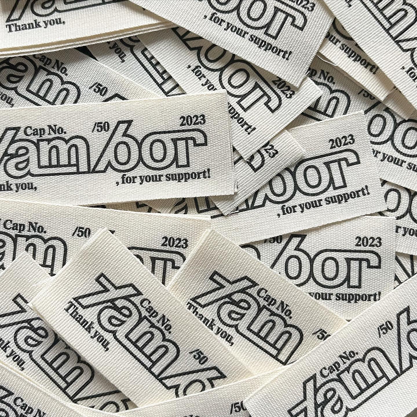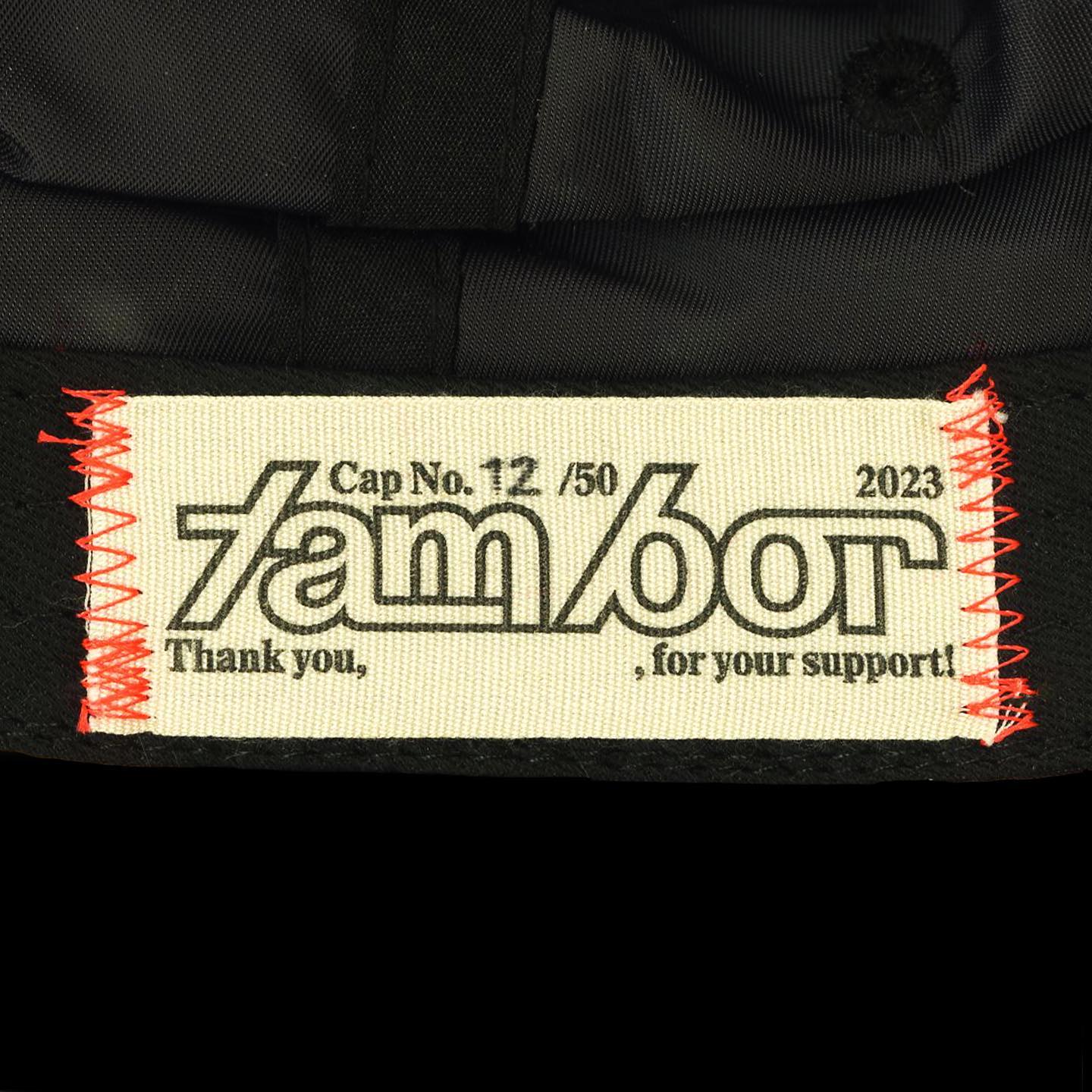 The black and white caps were produced in a limited edition of 50 (x2) copies, hand-numbered with each purchase, on a dedicated inner label composed in AL Sigla Nera. The outlined “tam bor” is custom lettering.