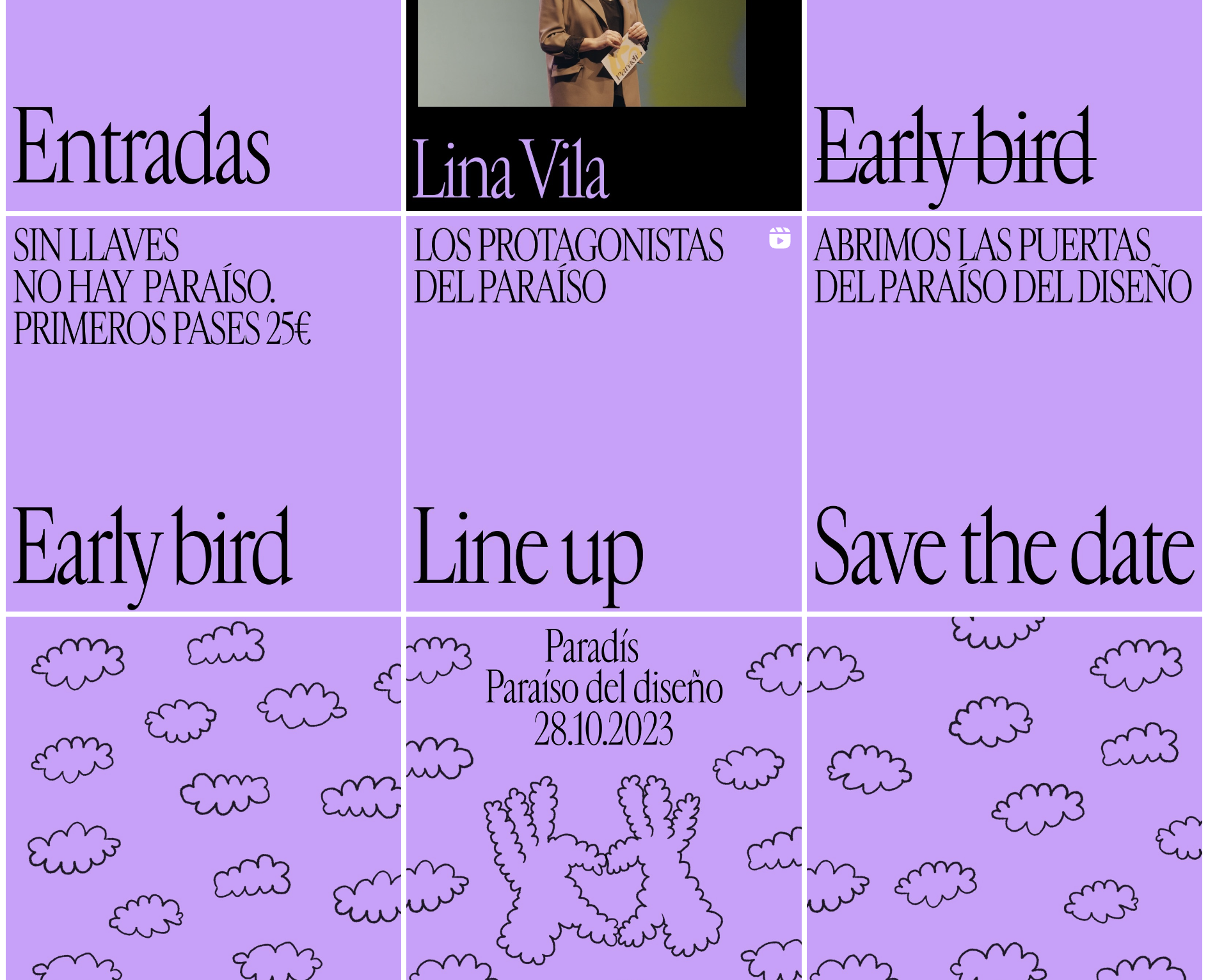 This recipe was applied for everything from the website (development: Jose Houdini), to social media posts (with motion graphics by María Gil), to various deliverables for the event itself, including lanyards, stage props and screen graphics.