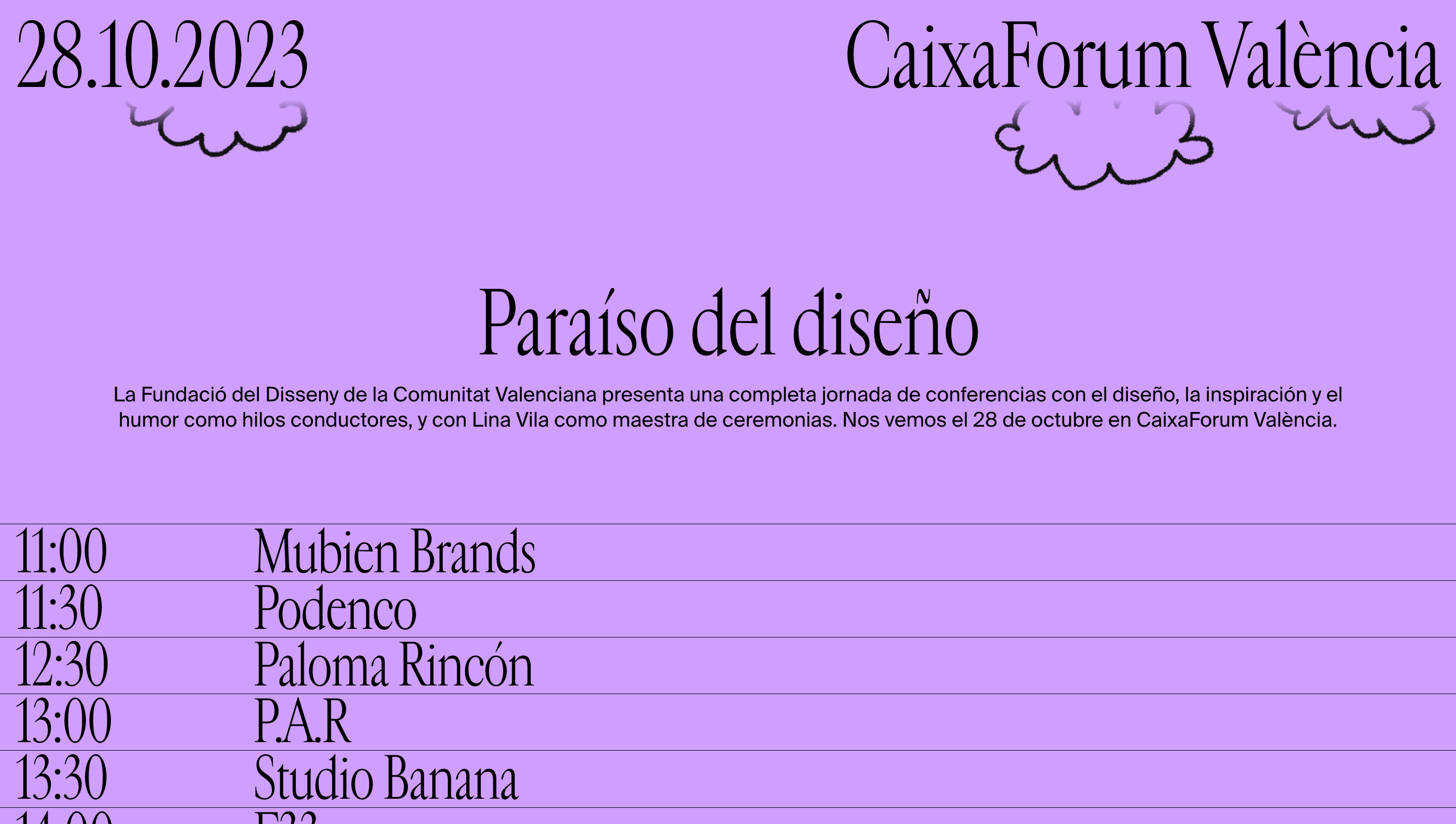 Paradís – Paraíso del diseño is a conference organized by Fundació del Disseny, the foundation of the Valencian design community. The latest installment took place in October at the CaixaForum València. Wences Sanz-Alonso curated the event and put together a program packed with inspiring presentations from national (Mubien Brands, Podenco, Paloma Rincón, P.A.R., Studio Banana, F33, Coko Gabriel) and international (Eva Cremers, Bürocratik, Gemma O’Brien) creatives.