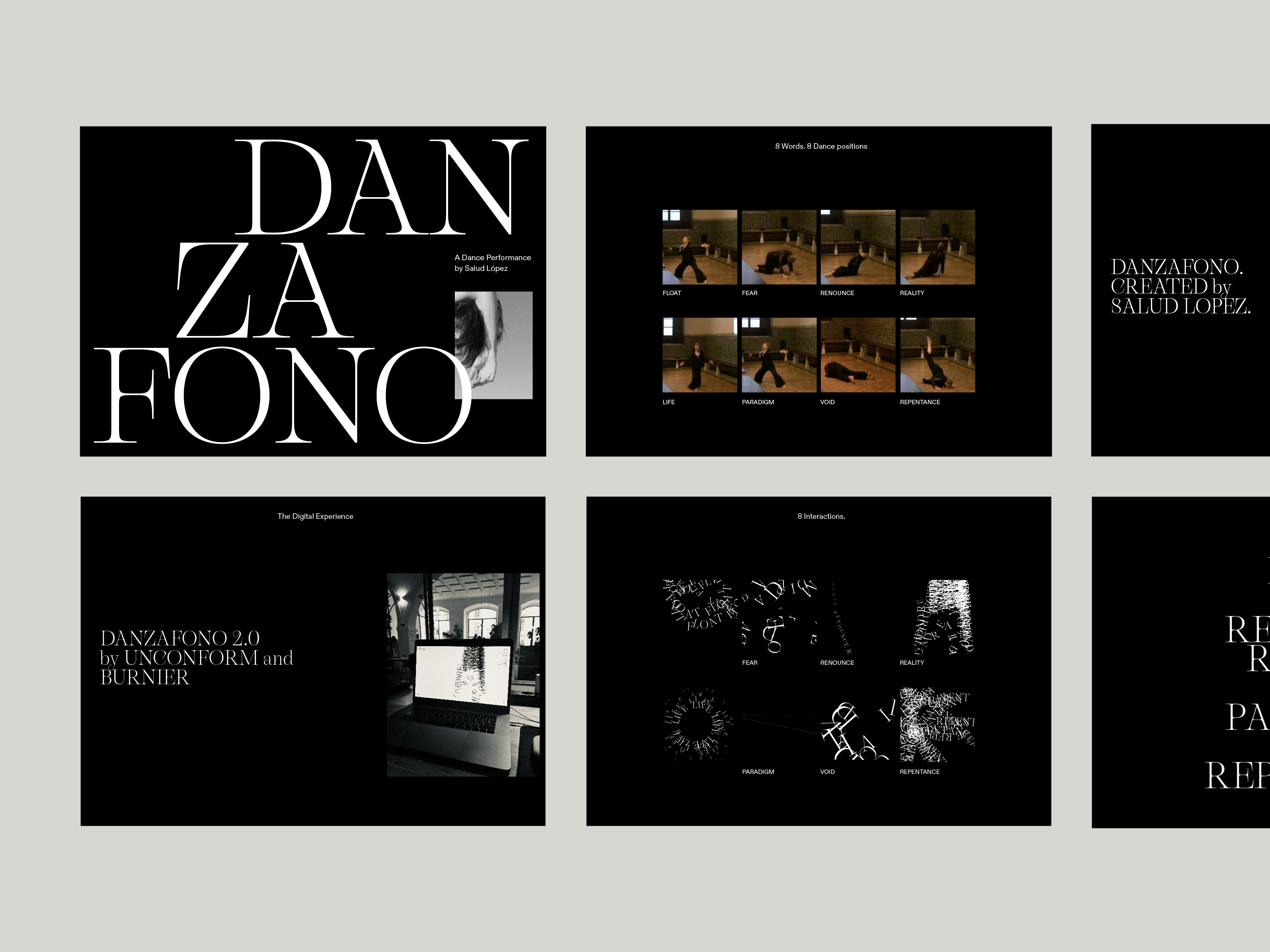 The Danzafono 3.0 website created by UNCONFORM Studio and inspired by dancer Salud López transforms physical dance into a captivating digital experience. Collaborating with creative coder André Burnier, we crafted a website where users control a digital dance performance through word selection, affecting rhythm and sequence. The use of the Gallique typeface, designed by Emma Marichal, perfectly complements the site’s artistic and interactive nature. It is supported by Dinamo’s ABC Diatype. This innovative fusion of creative coding, web design, and kinetic typography in Danzafono 3.0 illustrates a harmonious blend of technology and human expression, enhancing audience engagement in a new and innovative way.