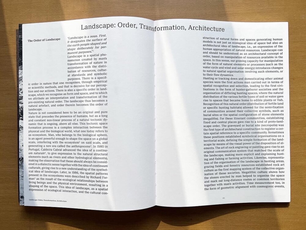 The Order of Landscape presents a powerful insight into the work of a forefront figure in contemporary landscape architecture, João Gomes da Silva. Through an extensive duotone photo essay by João Carmo Simões, a collection of texts and a set of plans, the book unveils this seminal body of work.