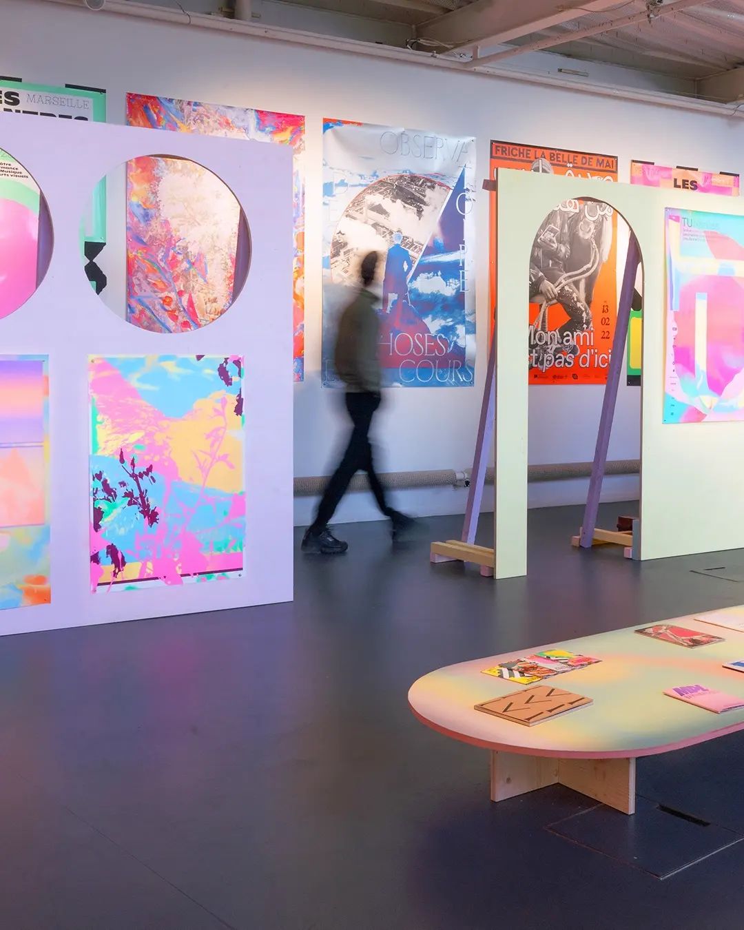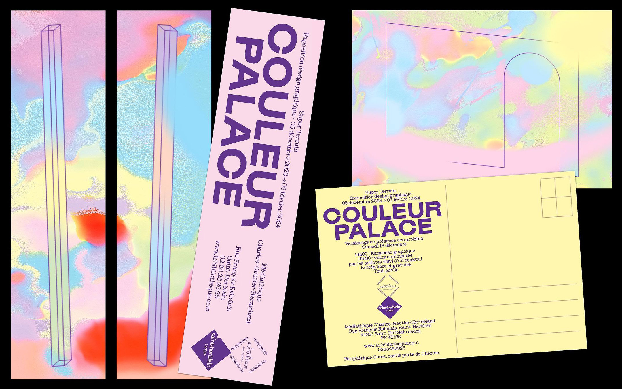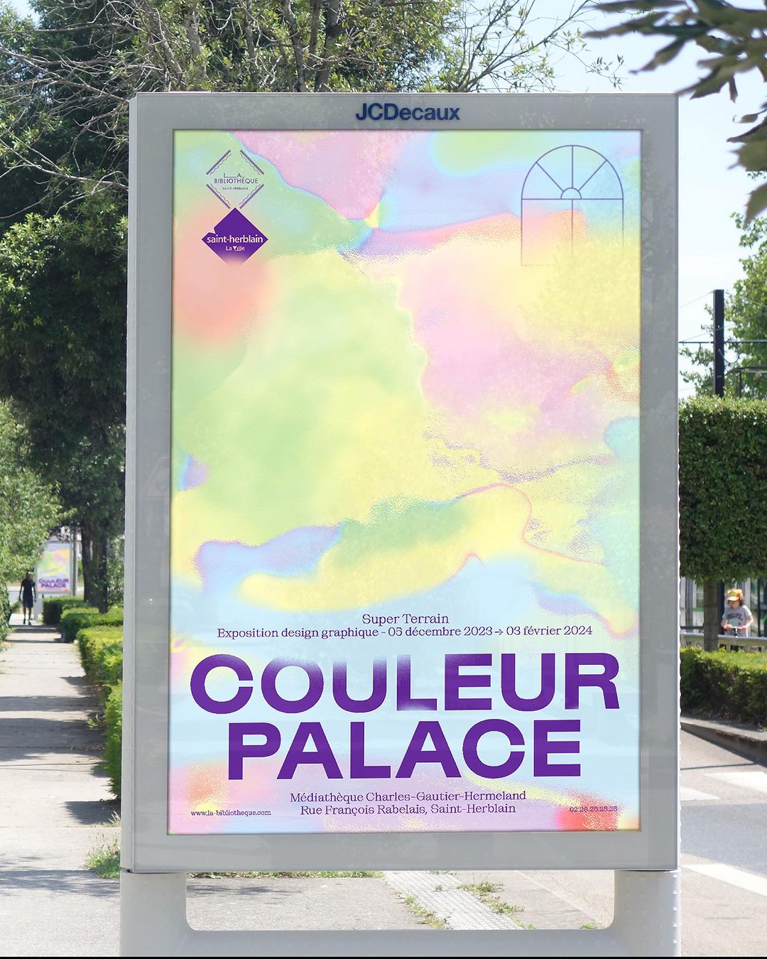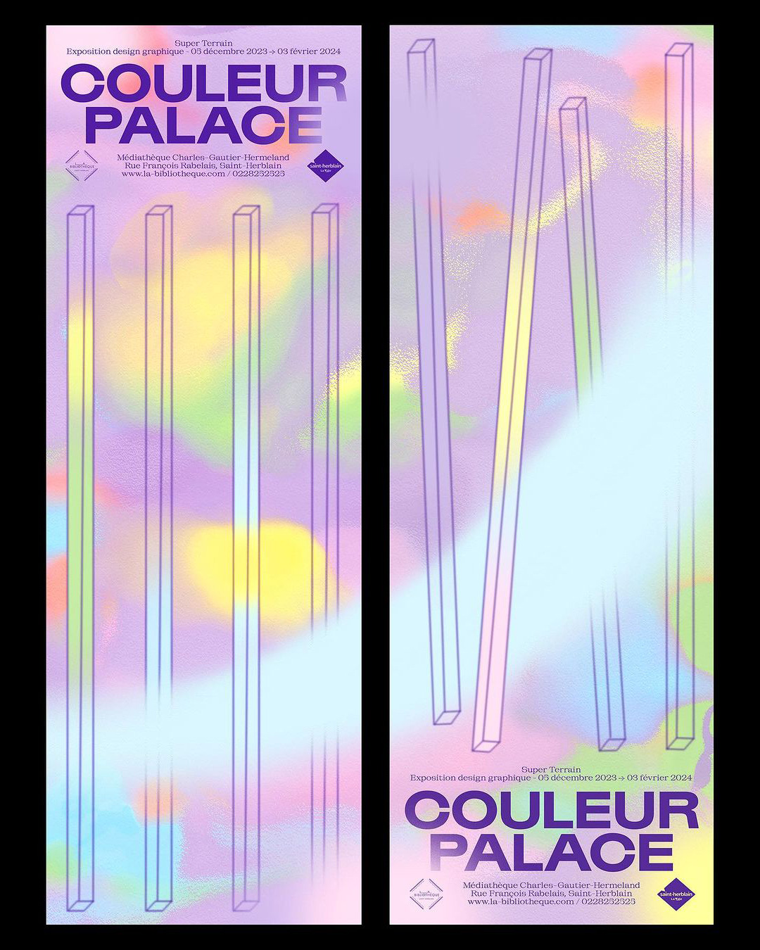 The Saint-Herblain library invited them to a retrospective exhibition of their work. For the poster and identity of the event, Super Terrain created a colorful identity combining Gustavo (from Lift-type) and Slack (from Due Studio).