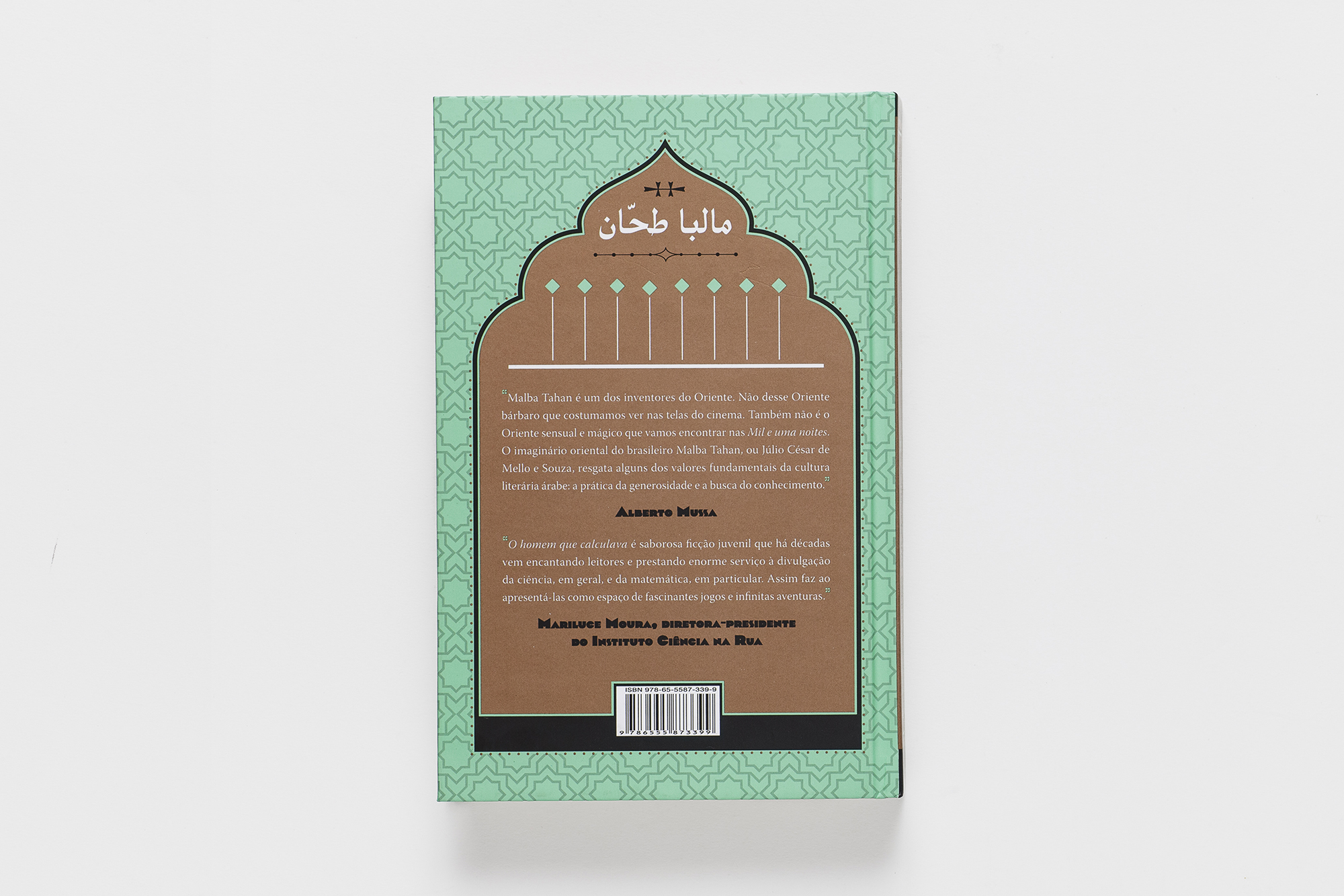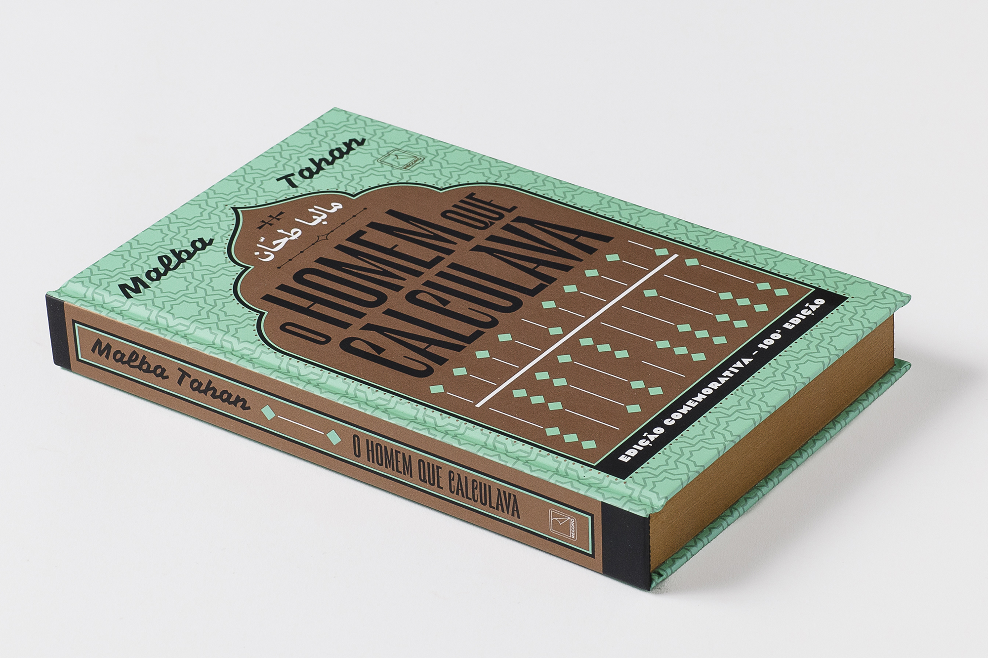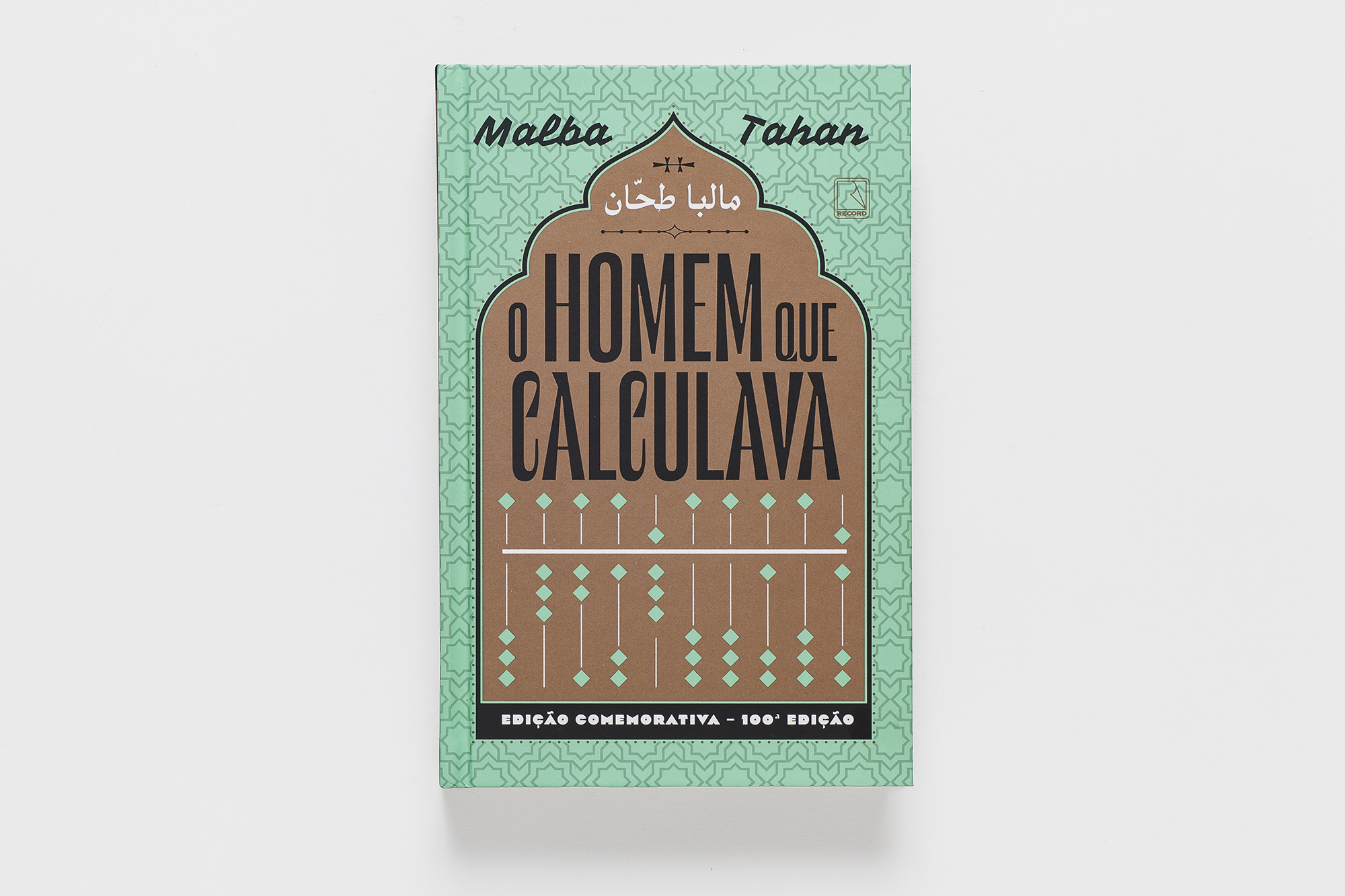 In 2021, Editora Record published the book’s 100th edition as O Homem que Calculava. The design uses Le Murmure and Vampiro for title and author, with their Arabic counterparts set in Noto Naskh Arabic and Reem Kufi. The edition notification is set in Impetus, and blurb and text are set in Warnock.
