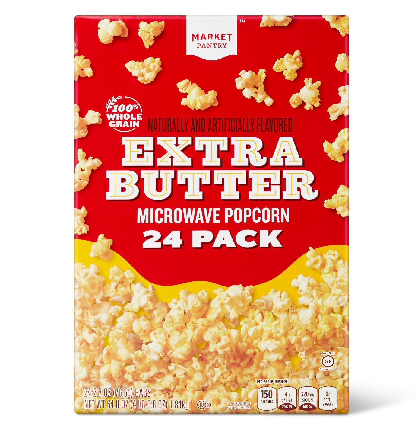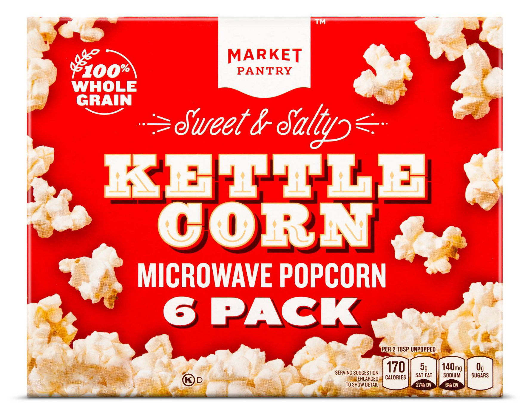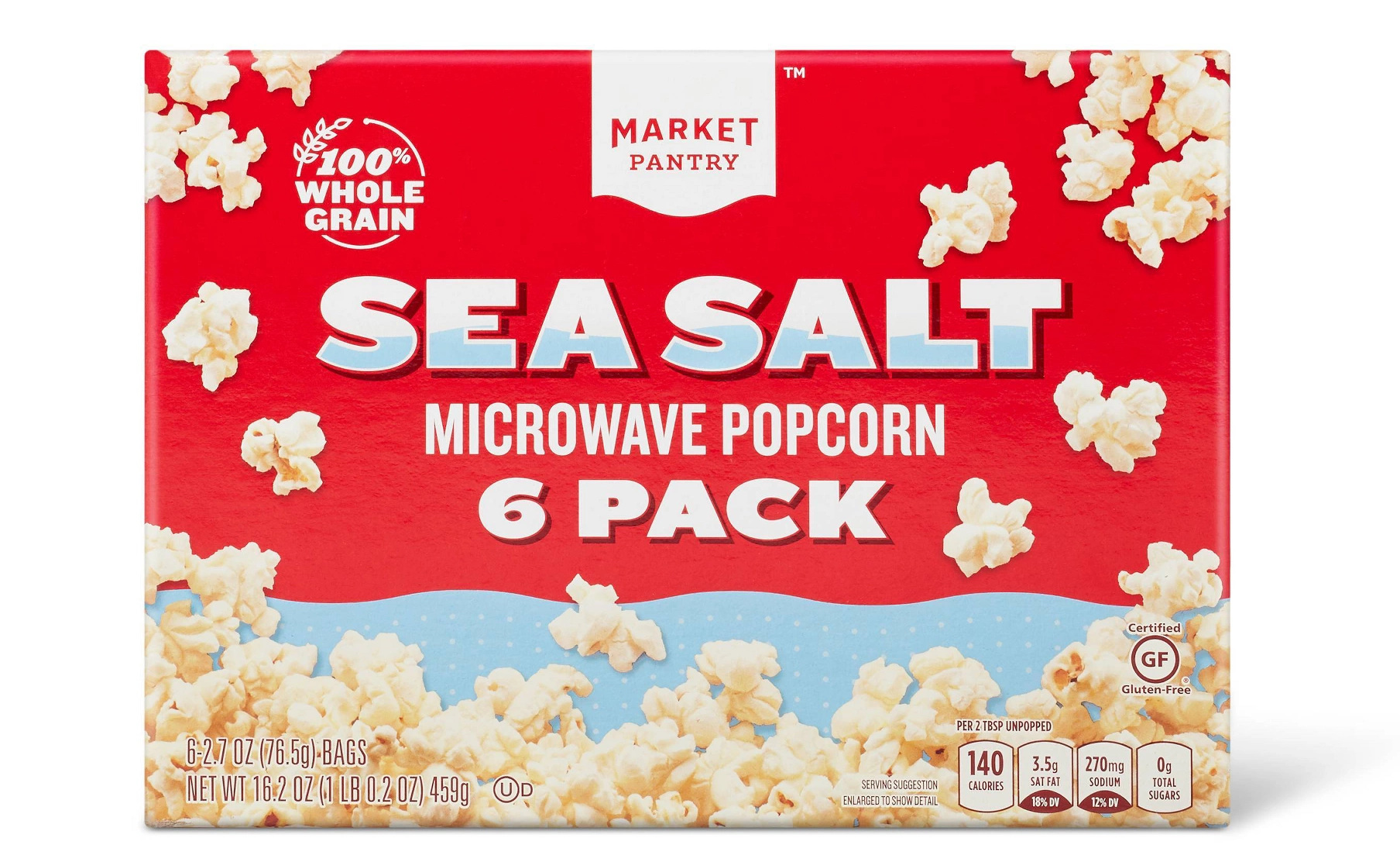 Packaging designs for the various flavors of Microwave Popcorn by Target’s private label Market Pantry.