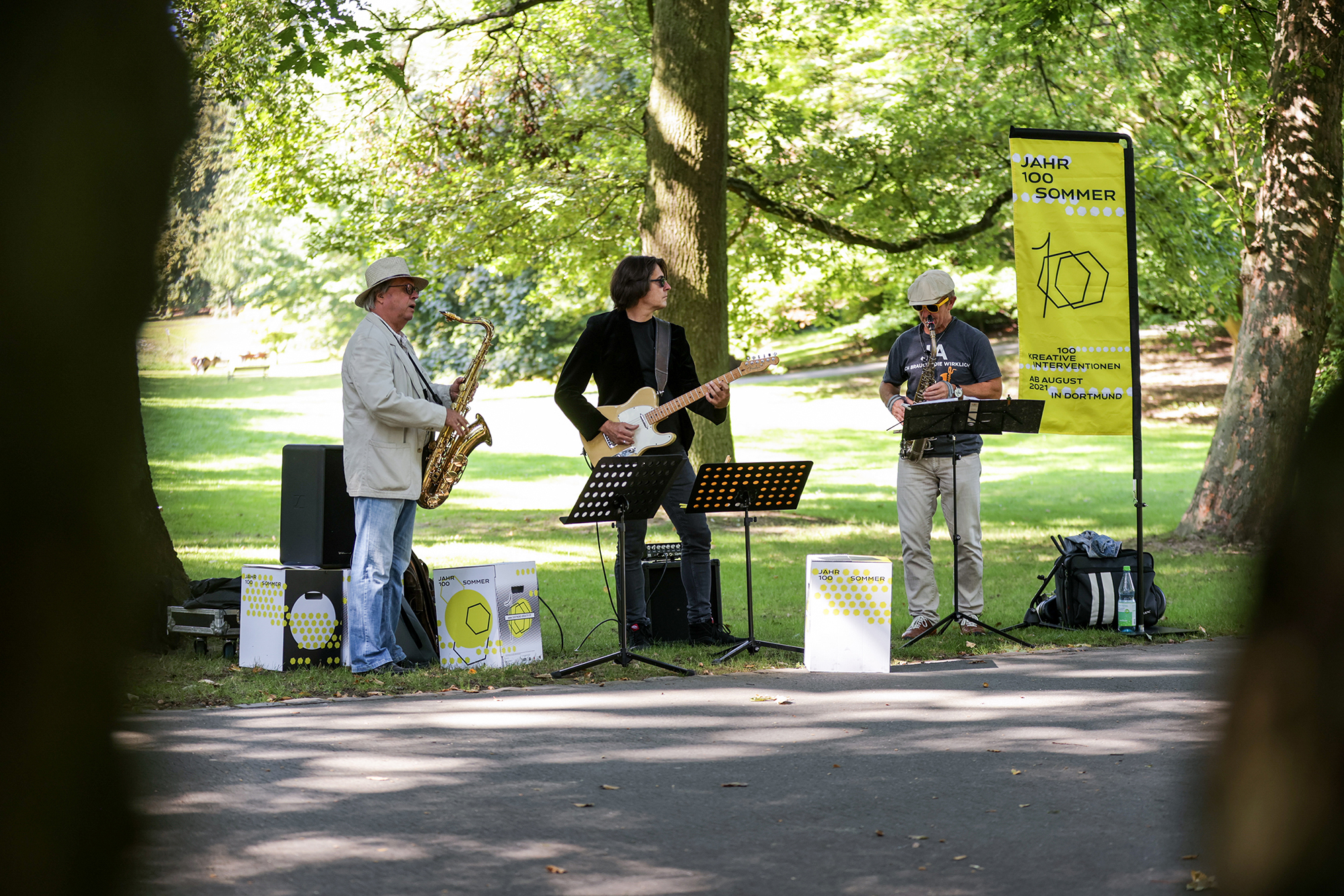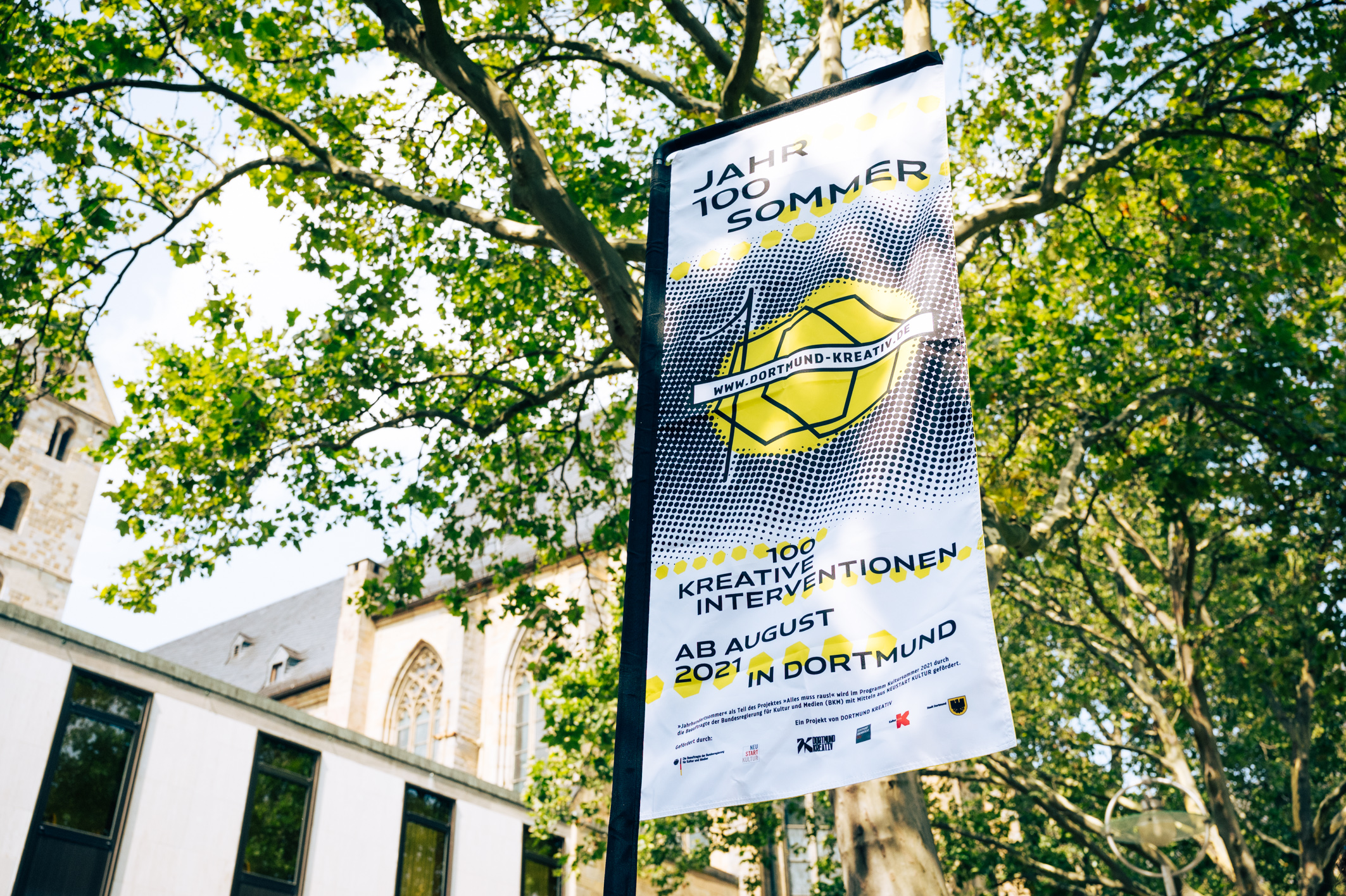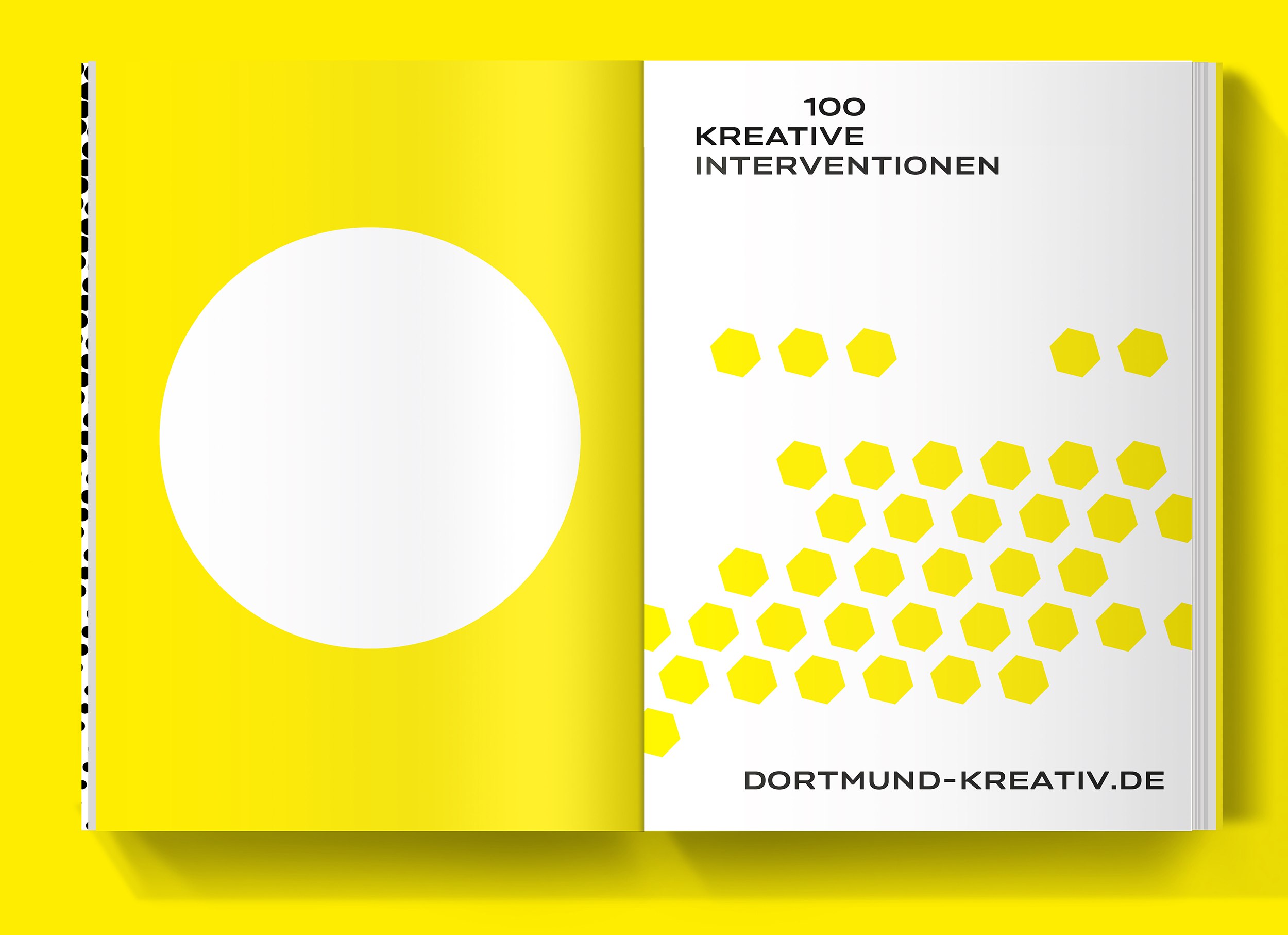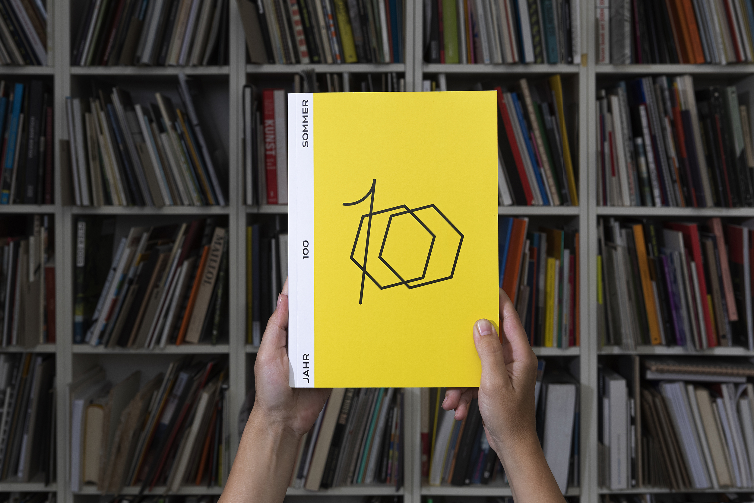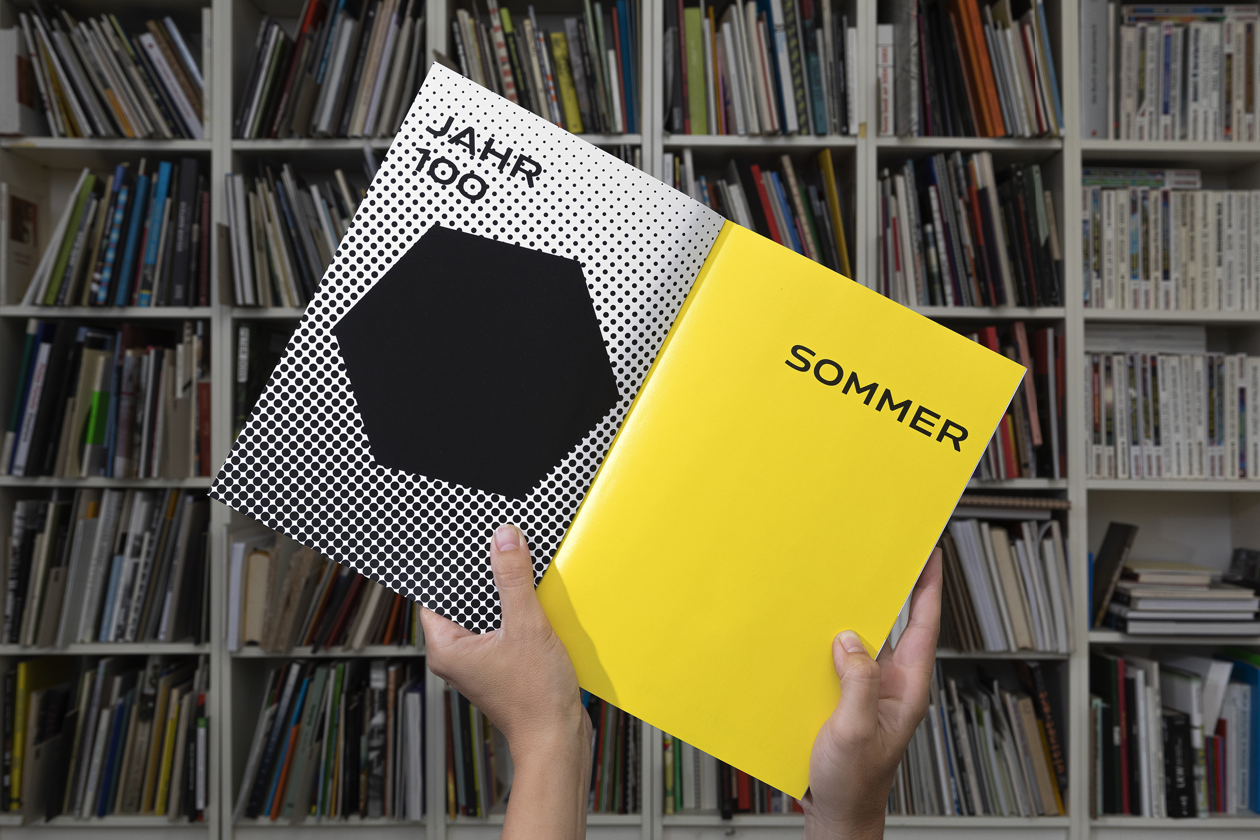 In the summer of 2021, a total of one hundred multidisciplinary, artistic-creative interventions took place in Dortmund under the title Jahr100Sommer. Things, images, musicians and artists appeared and disappeared again. The city was transformed into a space of art and experience. The result is a visual identity to take along. Cubes can be easily transported as stools, tables or decoration, flags mark the event from afar. The bright yellow, as well as the round and angular dots stand out from the urban space. Elena Schneider’s Konsole nestles to the geometric design language. In addition, an extensive documentation has been created.
