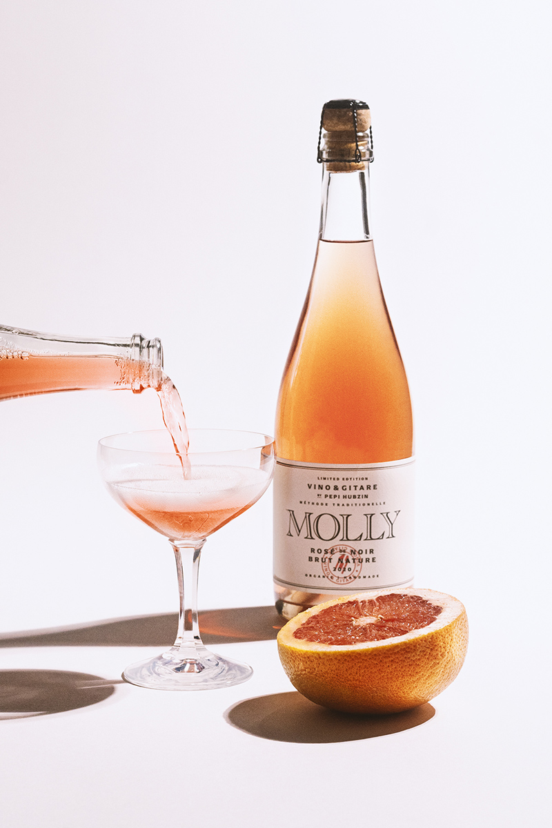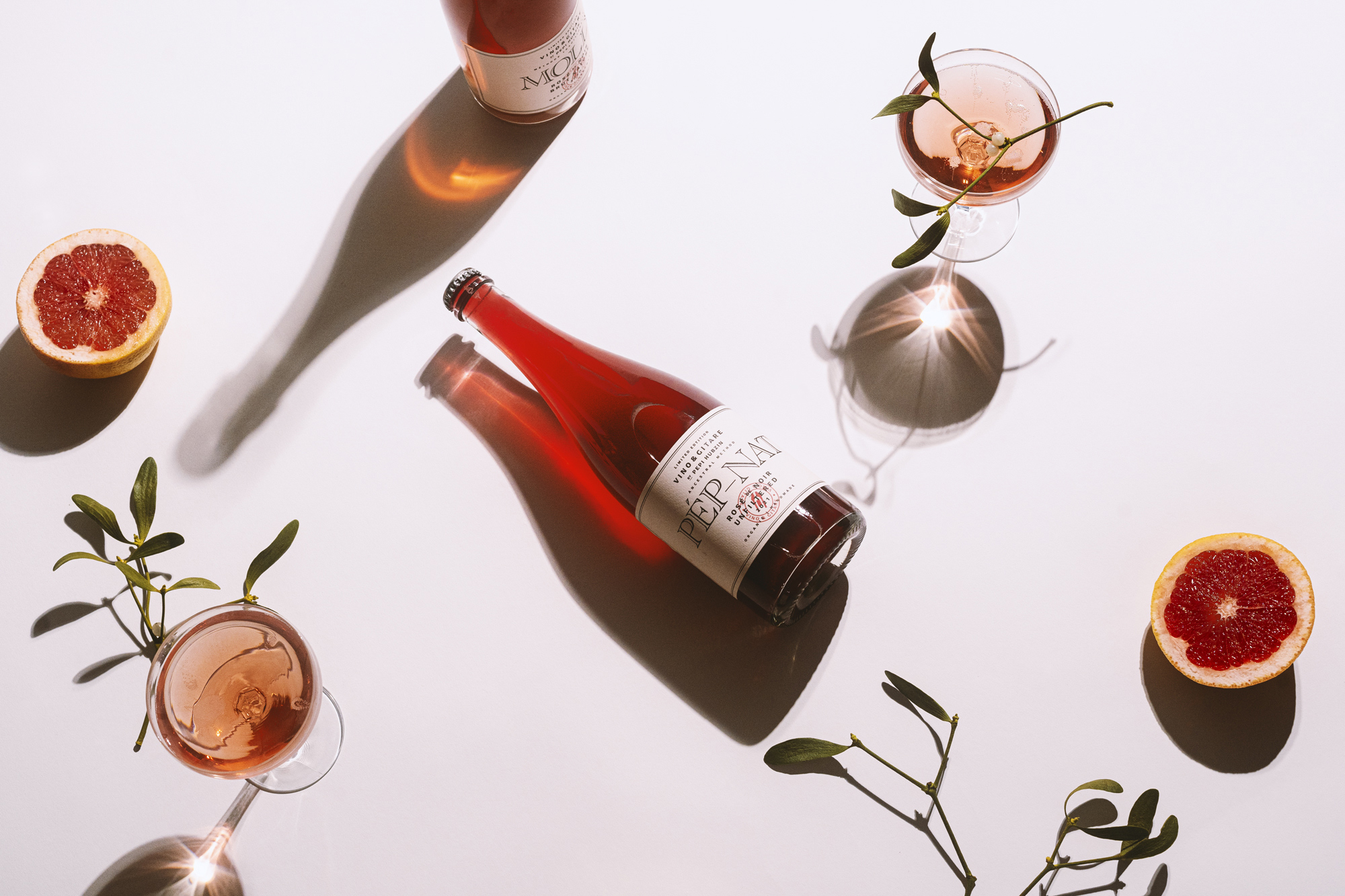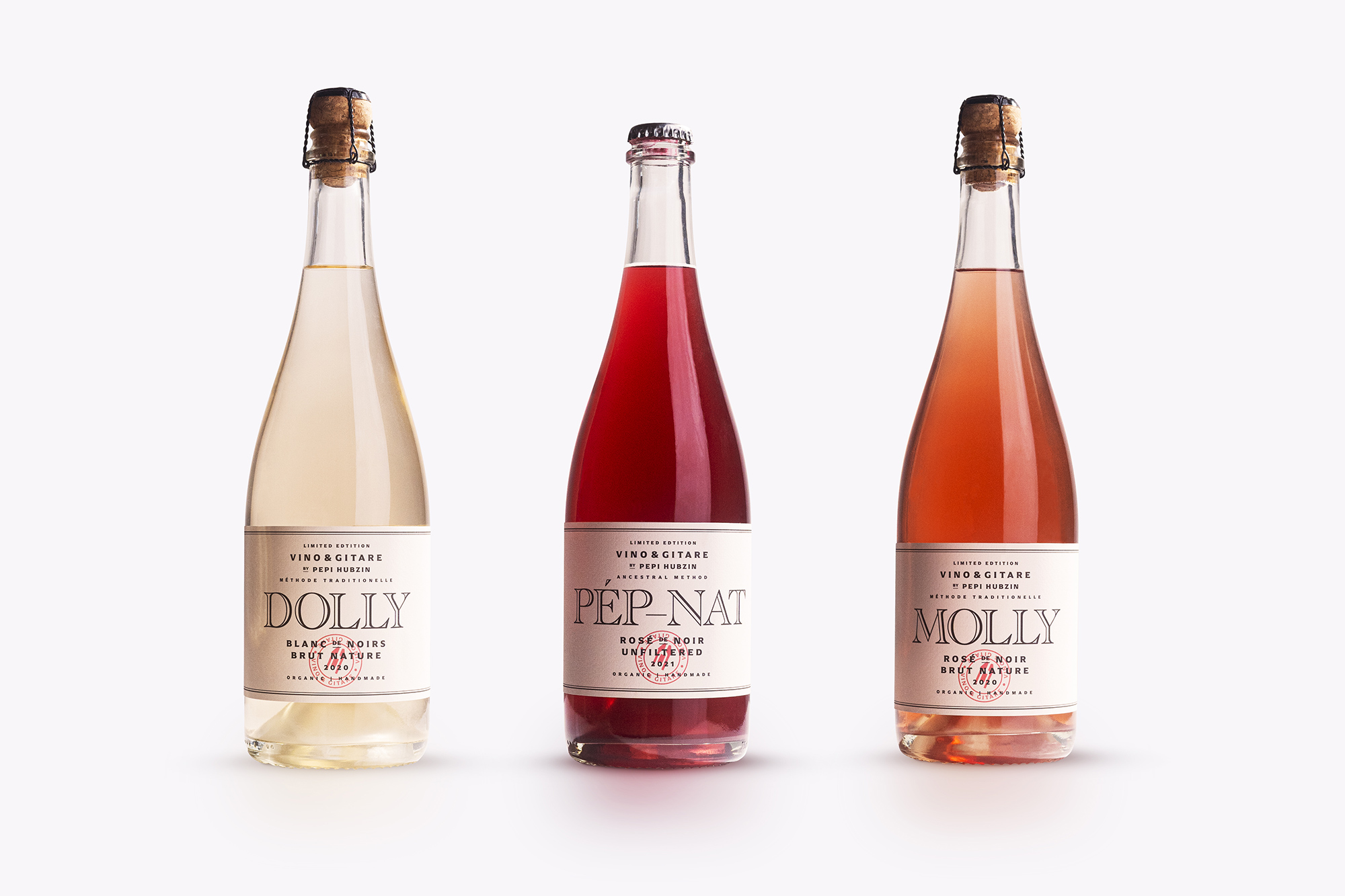 The third wine in the group is the unfiltered Pep-Nat, made with a similar natural process without added supplements. Since all the wines are organic, we reduced plastic materials in the packaging. Removing the foil wrap from the bottleneck made the bottle more transparent, which is an interesting contrast to the traditional ornamental style of the label.