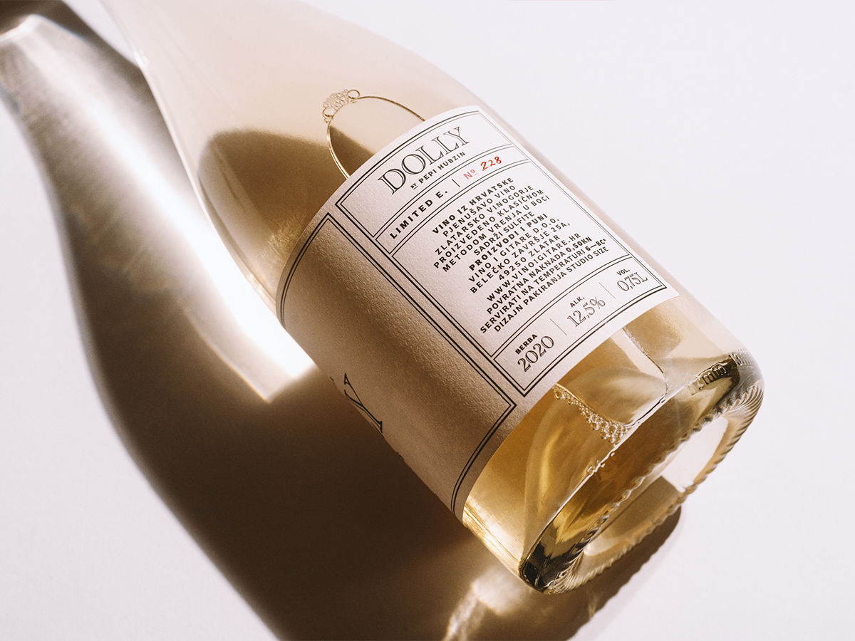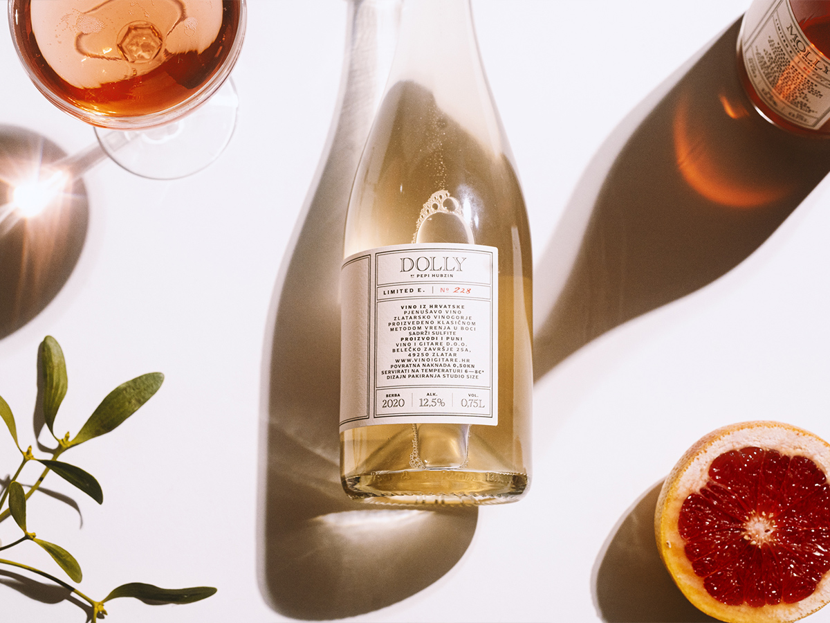 Dolly and Molly are organic sparkling wines made with the traditional production method, known for the production of Champagne in France. That’s why Studio Size designed a label in the style of the “Old World” wines. Studio Size combined a rich typographic treatment — Academy Engraved and Arpona with off-white paper, and the logo was applied as a stamp to complete the classic aesthetic.