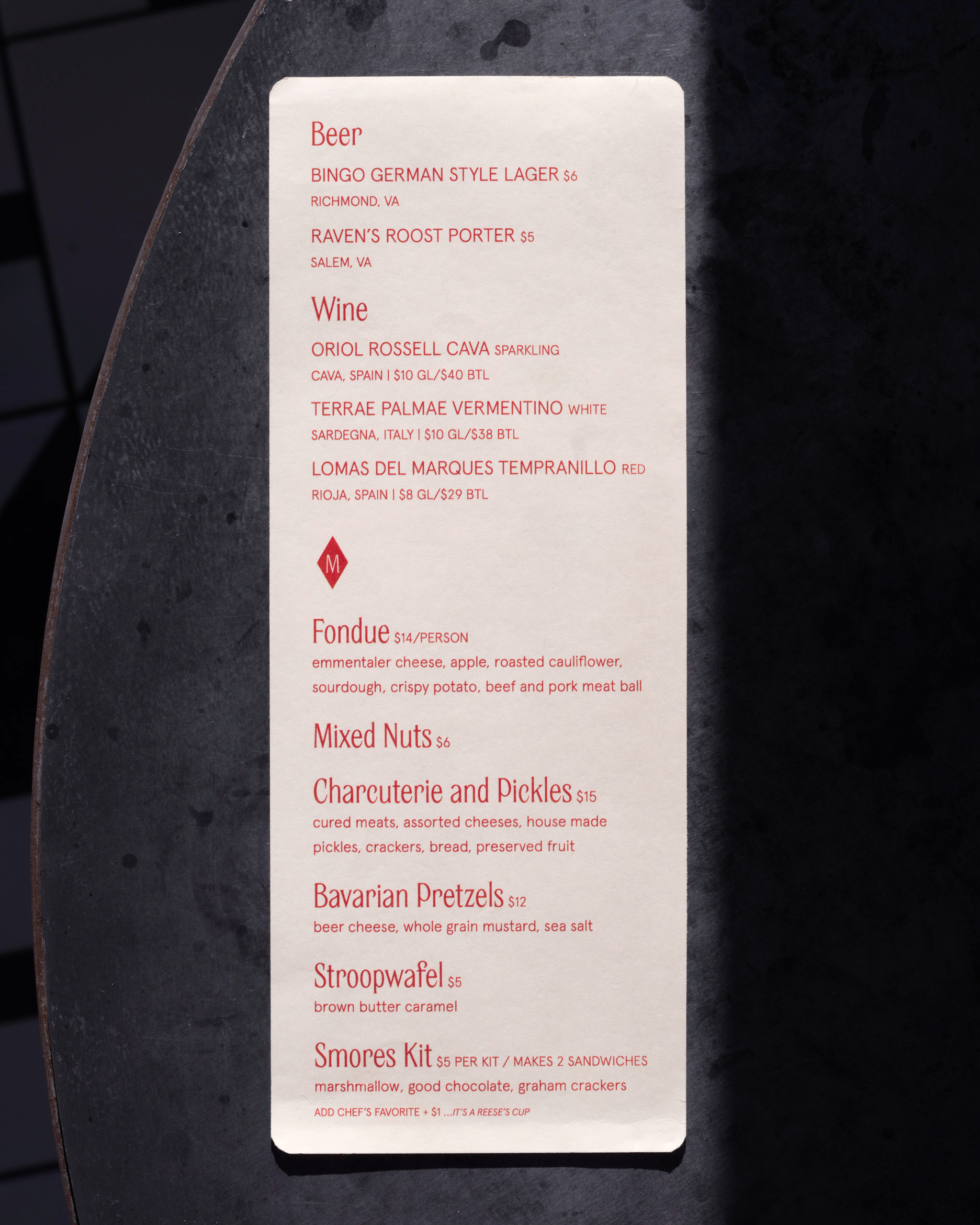In a more significant way, though, the theme was influenced by something my dad always touted as his favorite place on earth: the ski lodge after a long day on the mountain with friends and family,” he said. “The warmth, the camaraderie, the drinks and snacks, the mess of thawing scarves and hats and socks. To him, to me, it was always the best part of winter and our favorite place to reminisce about the day’s adventures and simply enjoy being together. Selfishly, this was what I wanted to recreate and share with Charlottesville. The mountains are not too far and many are familiar with this experience. But for those who have never been to a mountain lodge, we wanted to bottle that feeling and make it more accessible.