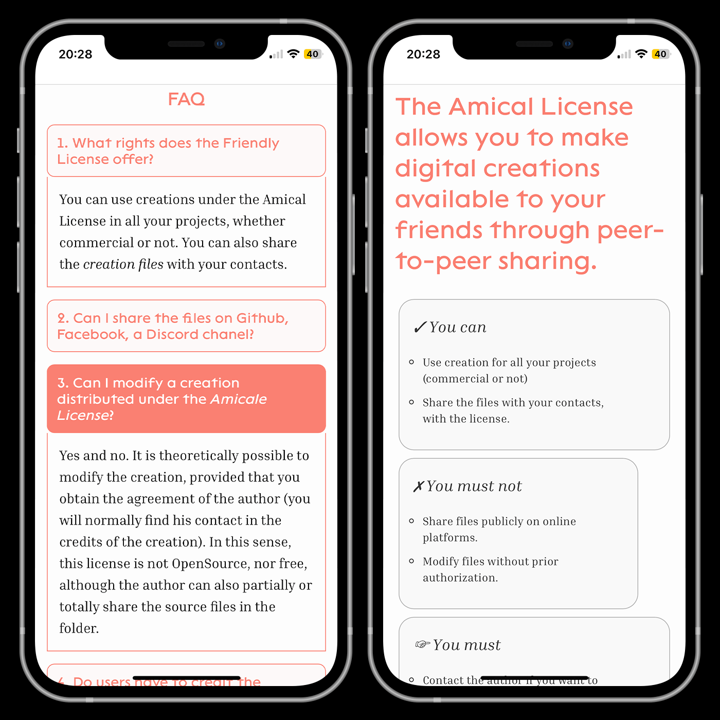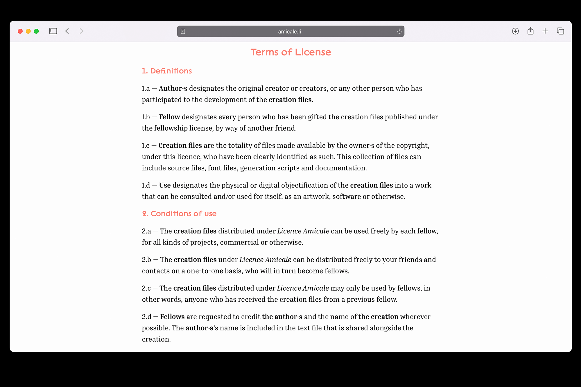 Originally created for typeface distribution, Licence Amicale extends its application to various digital creations such as music, 3D files, software, and more. Users can share projects in progress or drafts with friends and family, simultaneously licensing them.
