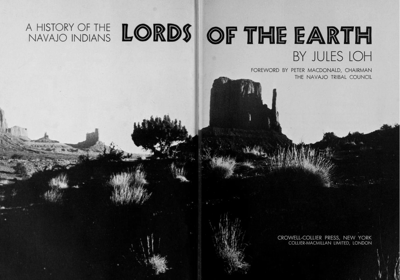 Lords of the Earth is the title of Jules Loh’s history of the Navajo, published in 1971 by Crowell-Collier Press with a foreword by Peter MacDonald, Chairman or the Navajo Tribal Council.
