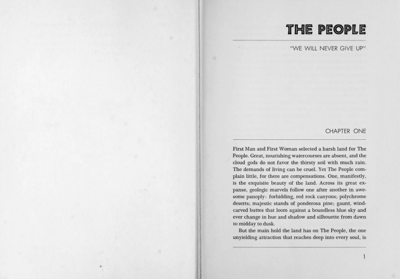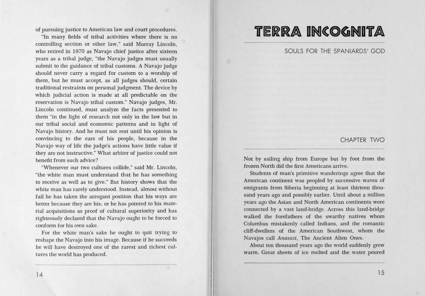 For the jacket design, Walter Harper combined stacked and interlocked Trooper Roman with equally tight-spaced caps from News Gothic and a photograph of Tsé Bii’Ndzisgaii – Monument Valley. The interior design is uncredited. It uses Neuland licht with Futura Light for the title page and chapter beginnings. The text typeface is Rudolph Ruzicka’s Primer.