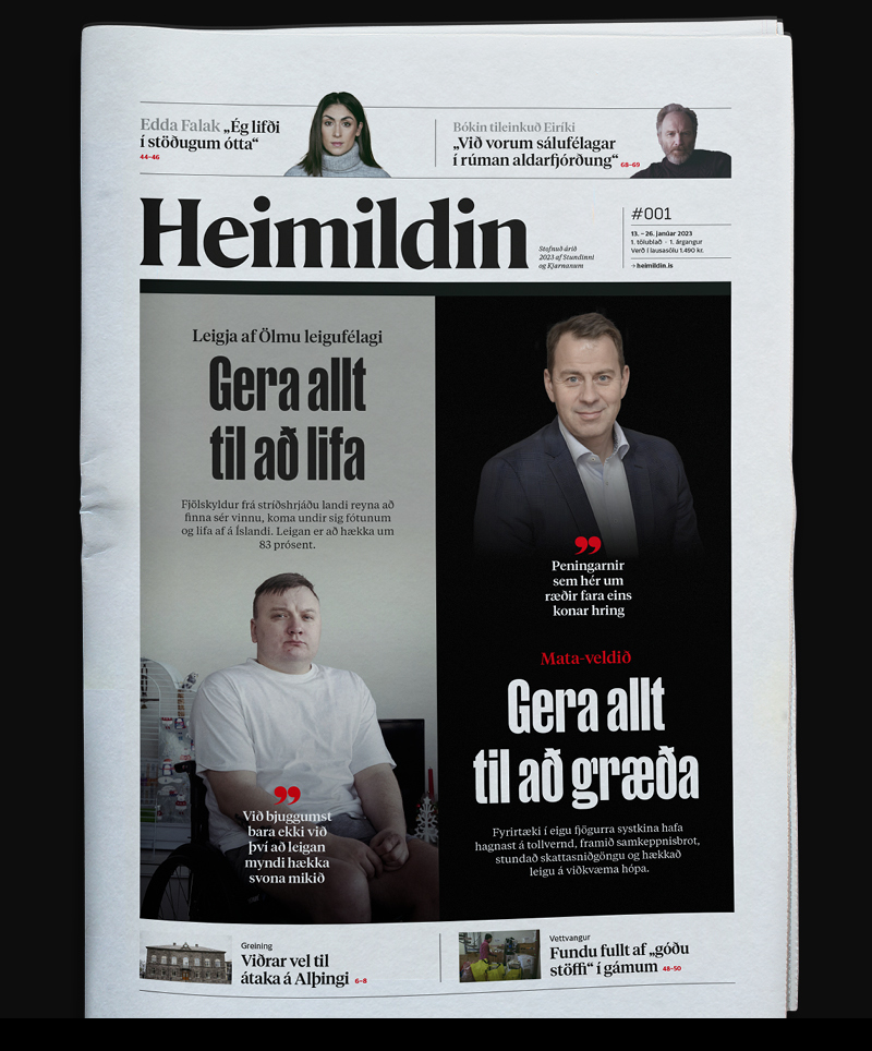 Heimildin (“The Source”) is an Icelandic media company committed to use investigative journalism to provide the public with access to independent information. The firm was founded in 2023 following the merger of Stundar and Kjarnan. It publishes a daily news website and a biweekly printed newspaper that’s also named Heimildin.