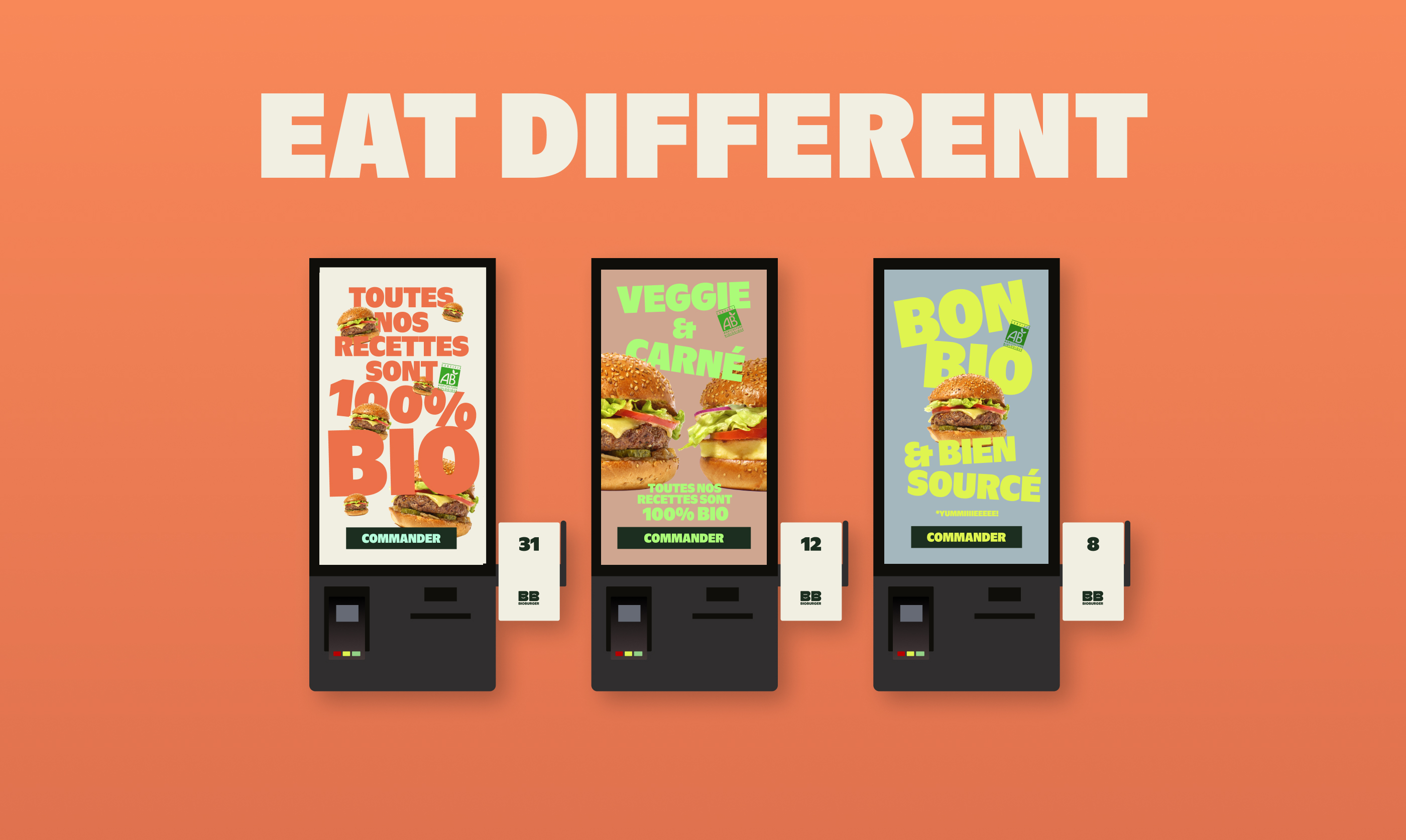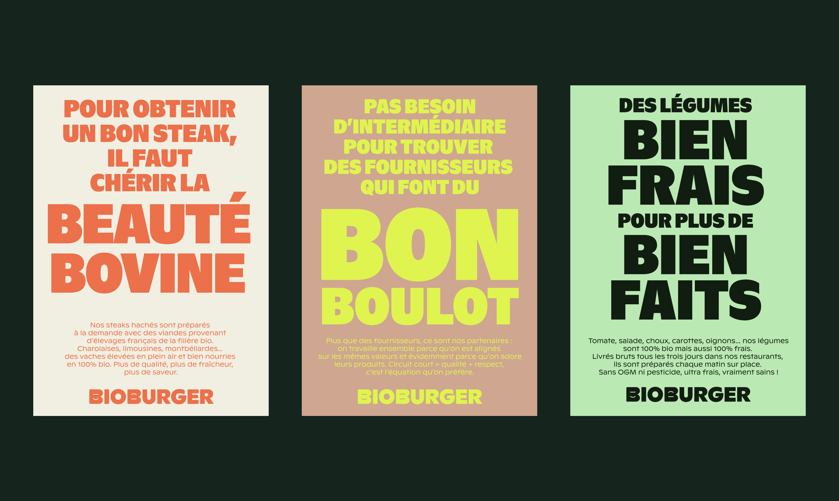 Our goal was crystal clear: Bioburger needed a new, impactful visual identity that brings in tastiness, coolness, and desirability to position itself as the committed fast-food of tomorrow.