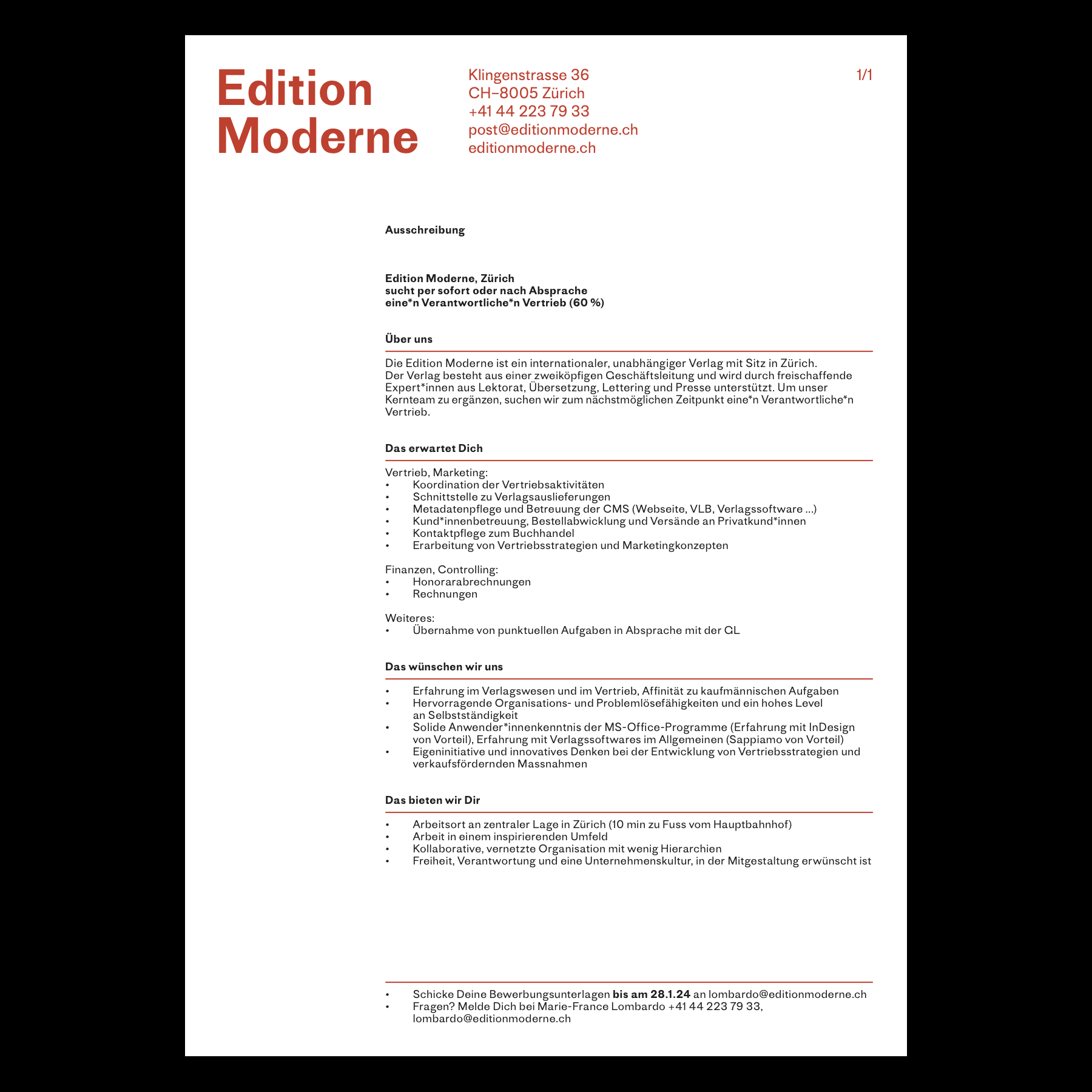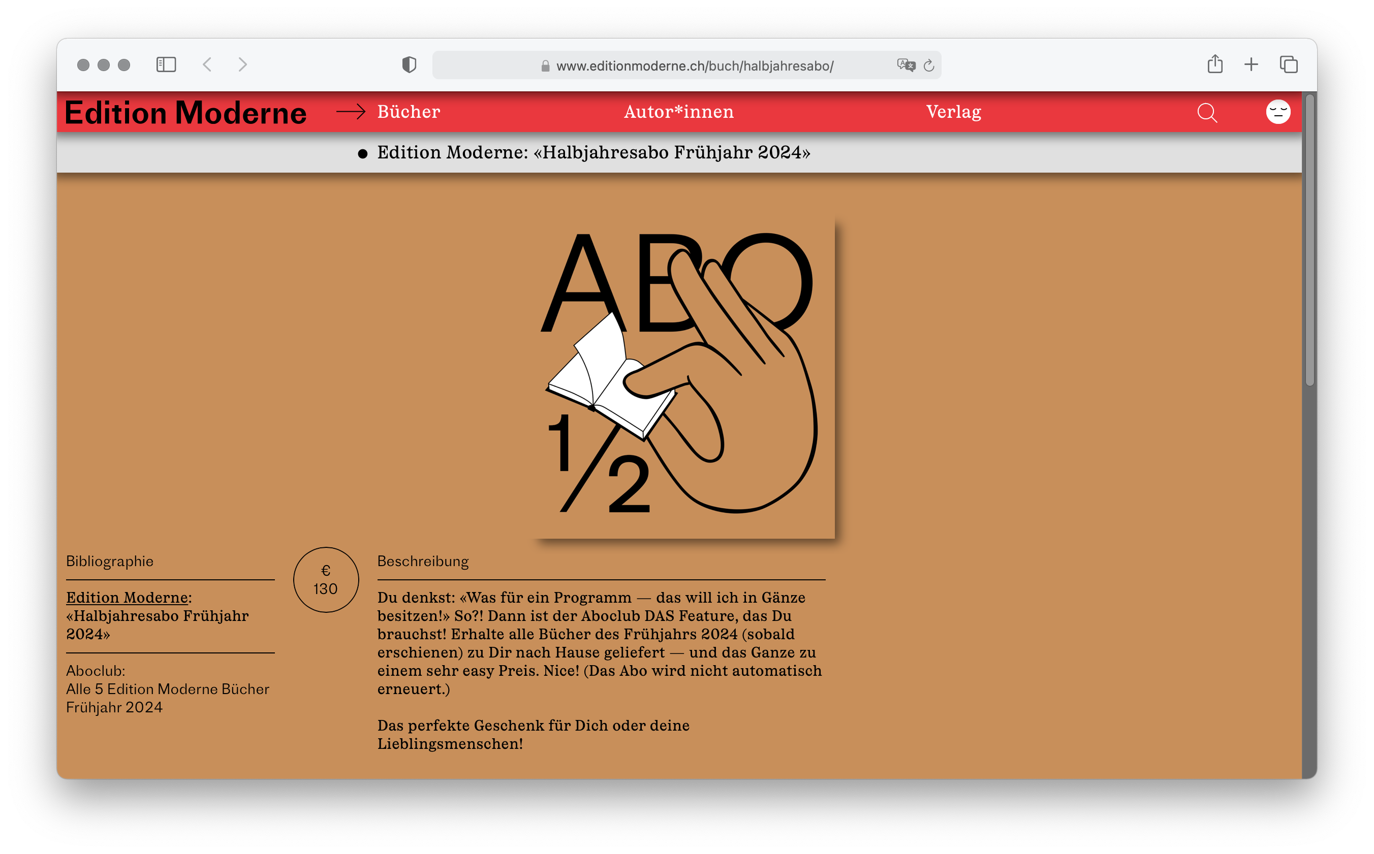 Founded in 1981, Edition Moderne is the oldest independent comic publisher in the German-speaking world and the only one in German-speaking Switzerland. In 2019, graphic designers Julia Marti and Claudio Barandun took over the baton, and introduced a new visual identity.