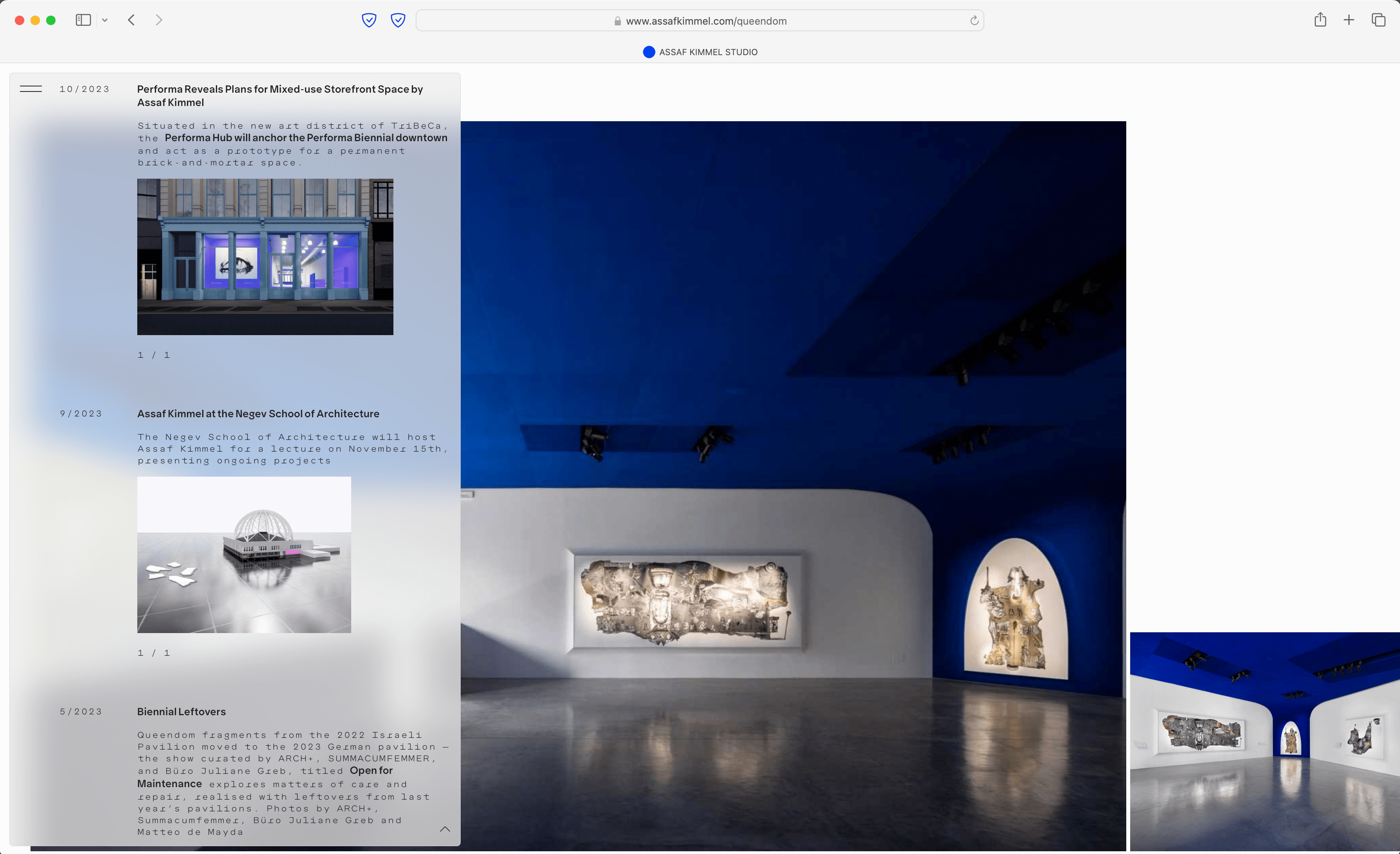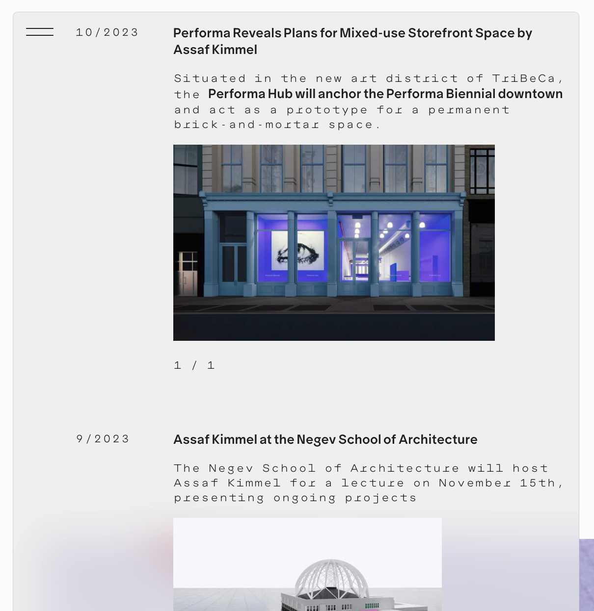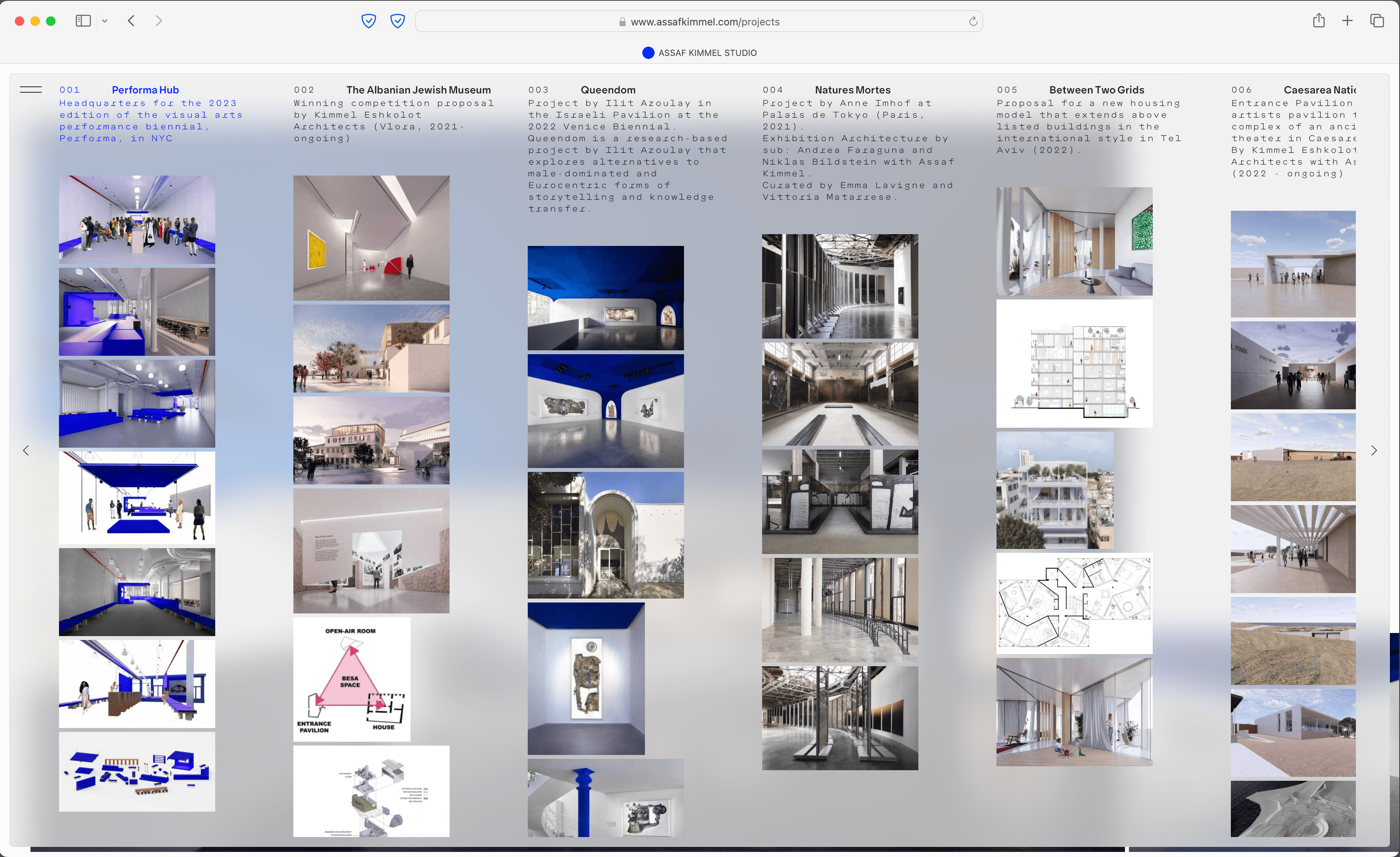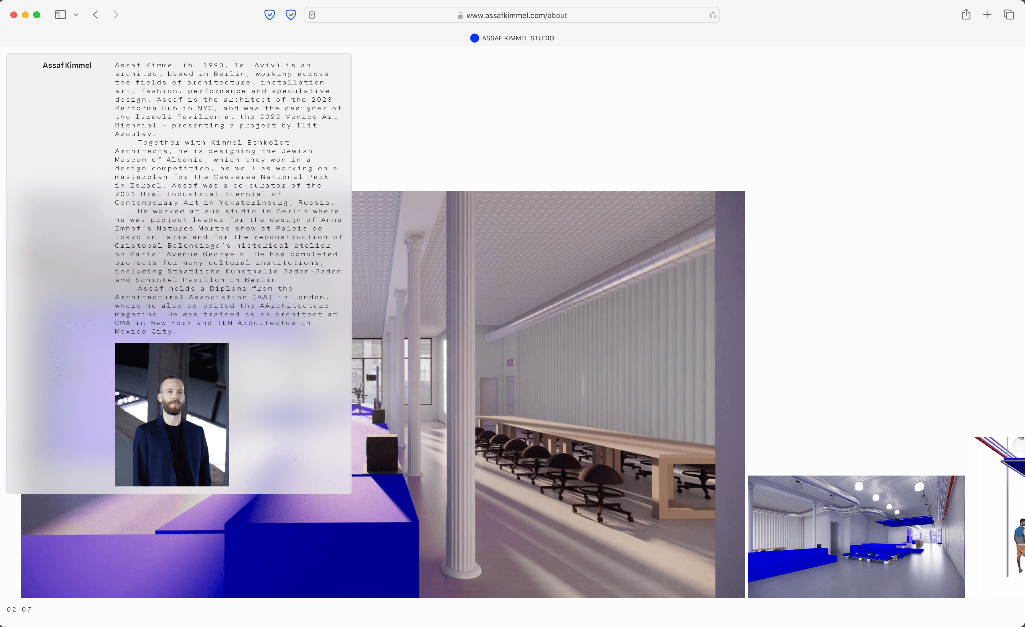 Website for the Berlin-based architectural firm Assaf Kimmel Studio, established by Assaf Kimmel. This practice operates in diverse realms including architecture, installation art, fashion, performance, and speculative design.