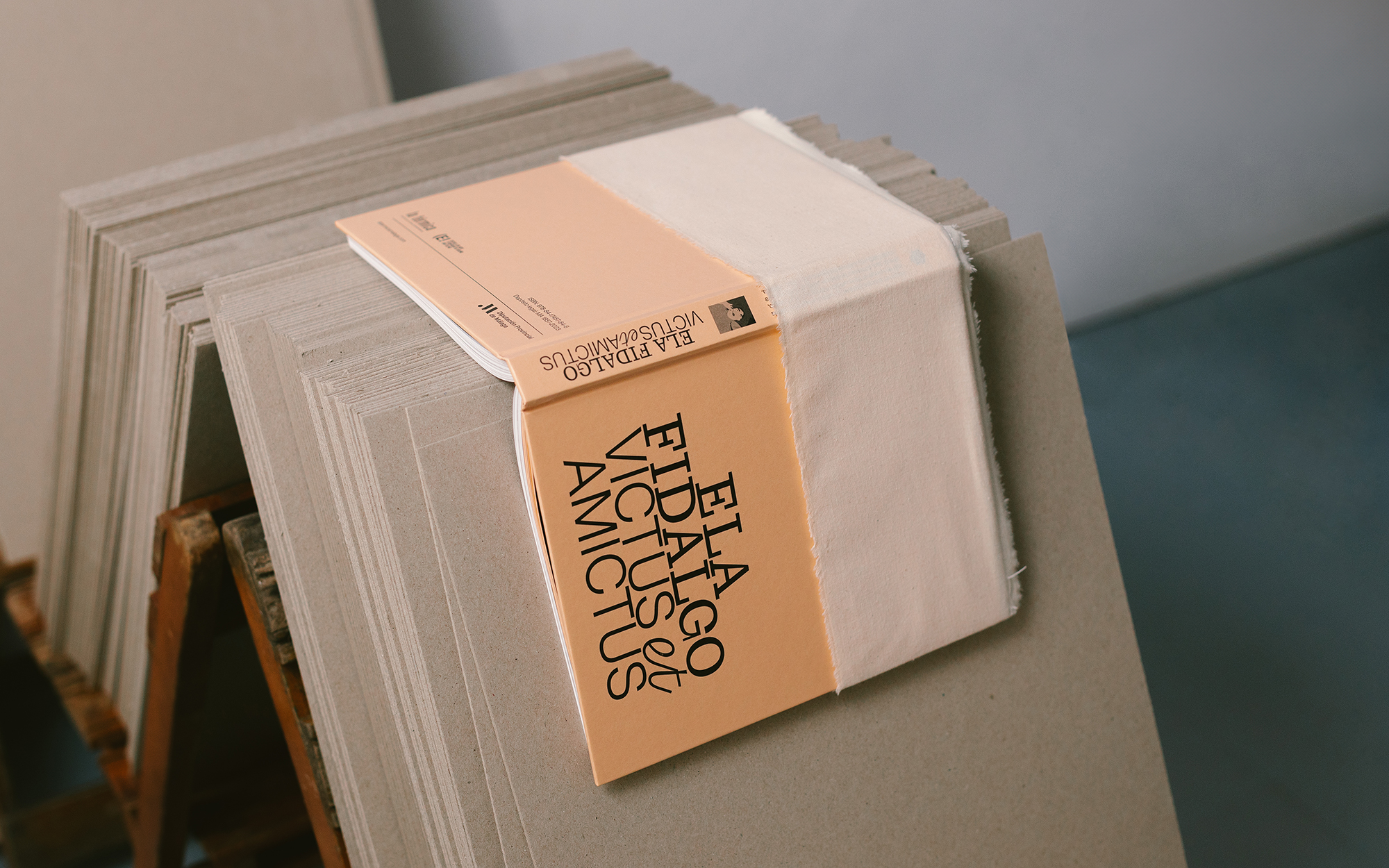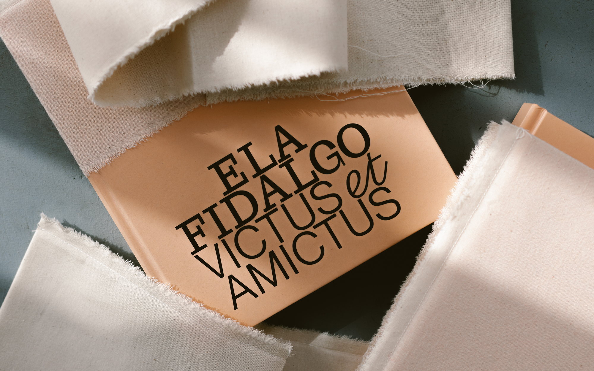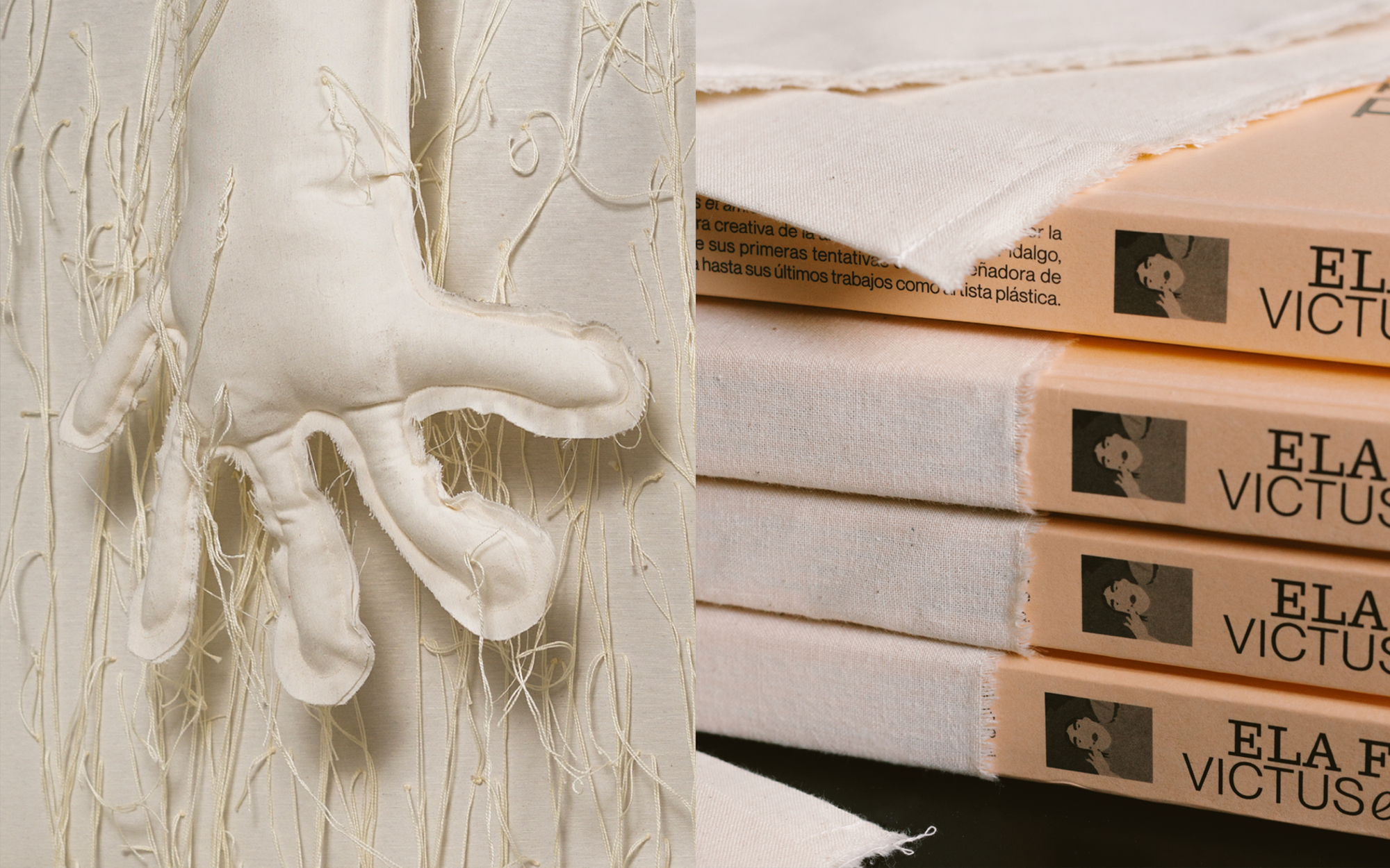 The exhibition catalog showcases a portion of Ela’s artistic creations, along with the pieces featured in the exhibition. In it, we aimed to capture the blend of materials present in the artist’s work; that’s why we used fabric scraps from one of her pieces as a sash for the cover. Additionally, various types of paper have been combined inside the publication to create a dynamic interplay of materials.