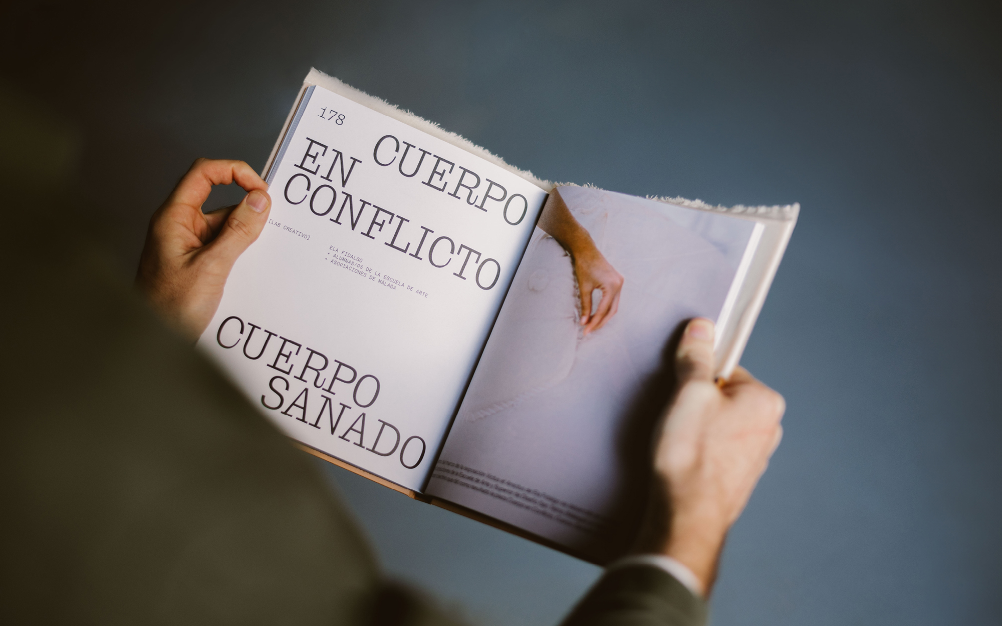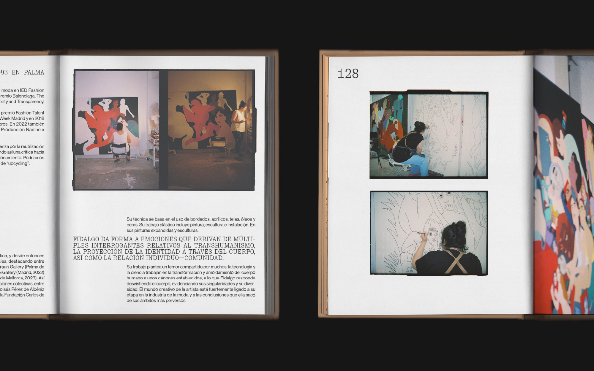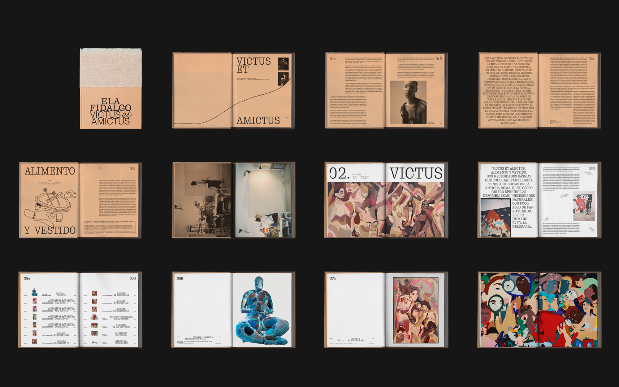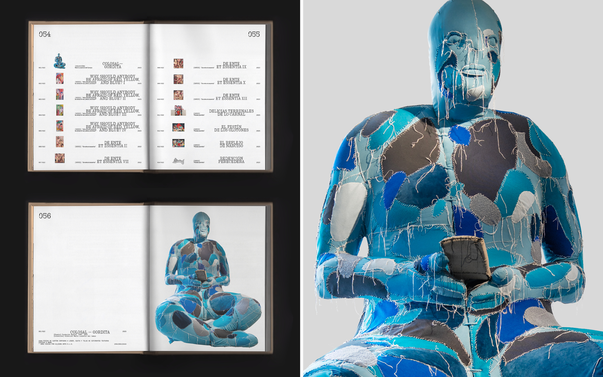 The exhibition catalog showcases a portion of Ela’s artistic creations, along with the pieces featured in the exhibition. In it, we aimed to capture the blend of materials present in the artist’s work; that’s why we used fabric scraps from one of her pieces as a sash for the cover. Additionally, various types of paper have been combined inside the publication to create a dynamic interplay of materials.