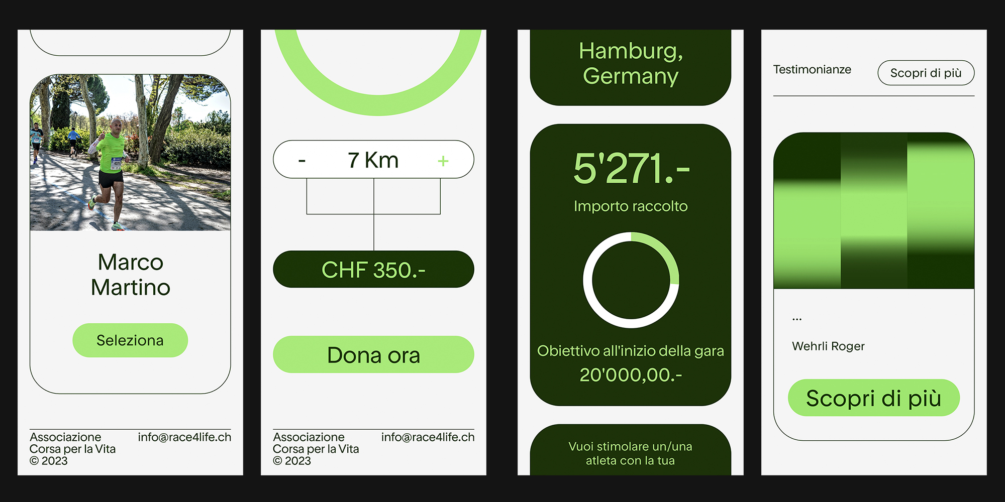 As part of the identity of Race4Life, design studio Favon.io used RT Rondelle as the main typeface. The project is a Swiss nationwide initiative, to raise funds for leukaemia medical research. The collection takes place through the sponsorship of athletes participating in triathlon competitions. The clear and reliable appearance of RT Rondelle lends the project the attention it deserves.