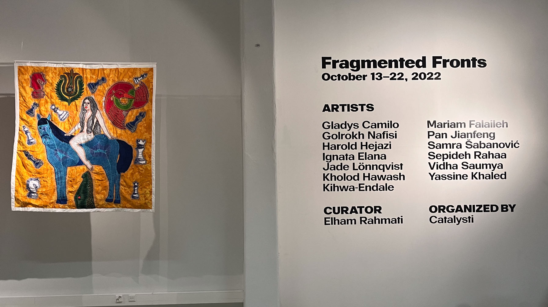 The exhibition took place at the Museum of Technology in Helsinki, Finland, from 13 to 22 October 2022. The exhibition showcased the works of artists Gladys Camilo, Golrokh Nafisi, Harold Hejazi, Ignata Elana, Jade Lönnqvist, Kholod Hawash, Kihwa Endale, Mariam Falaileh, Pan Jianfeng, Samra Šabanović, Sepideh Rahaa, Vidha Saumya and Yassine Khaled.