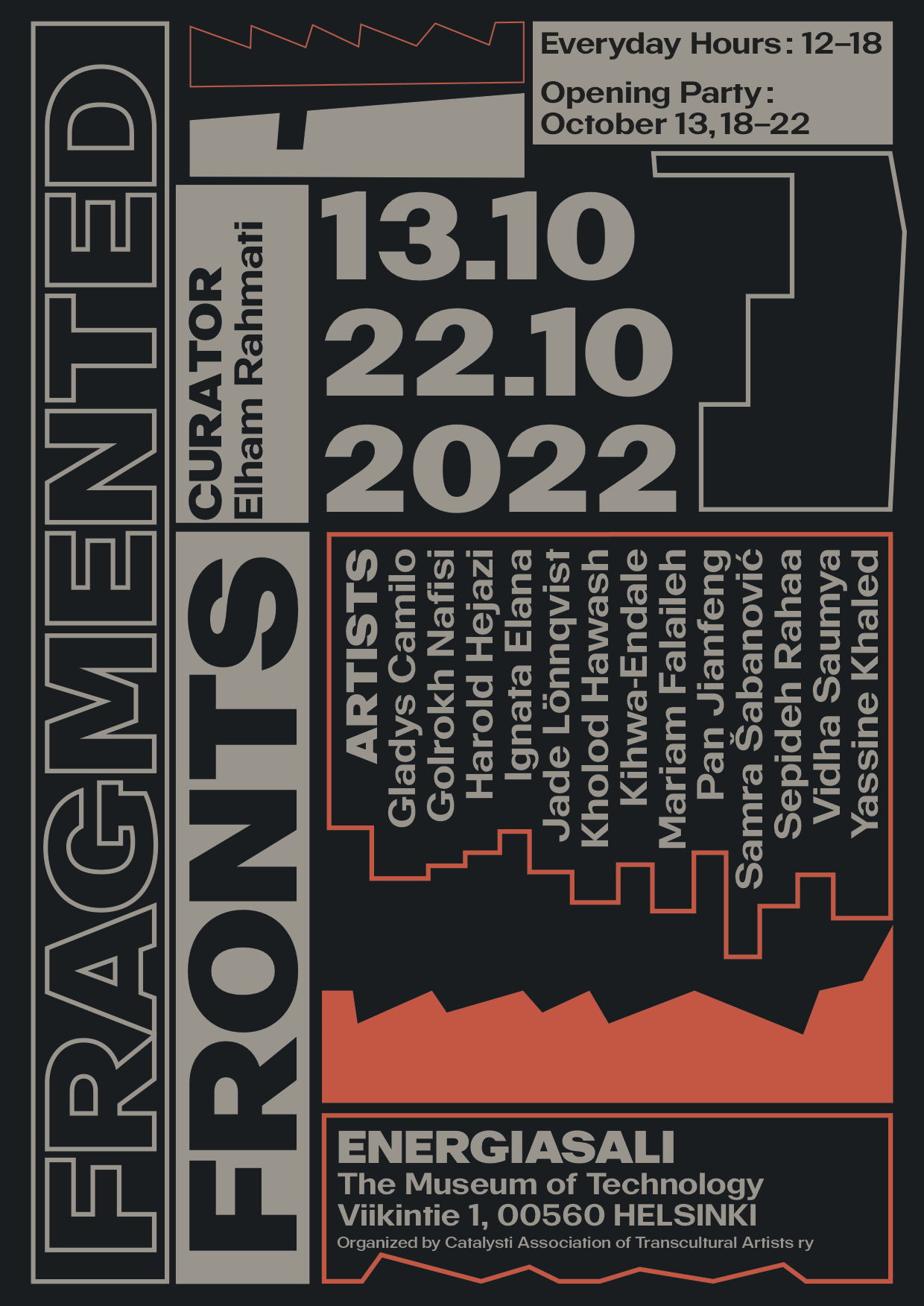 PoW Alara in use for the identity of the 2022 Catalysti Annual Exhibition titled Fragmented Fronts and curated by Elham Rahmati.