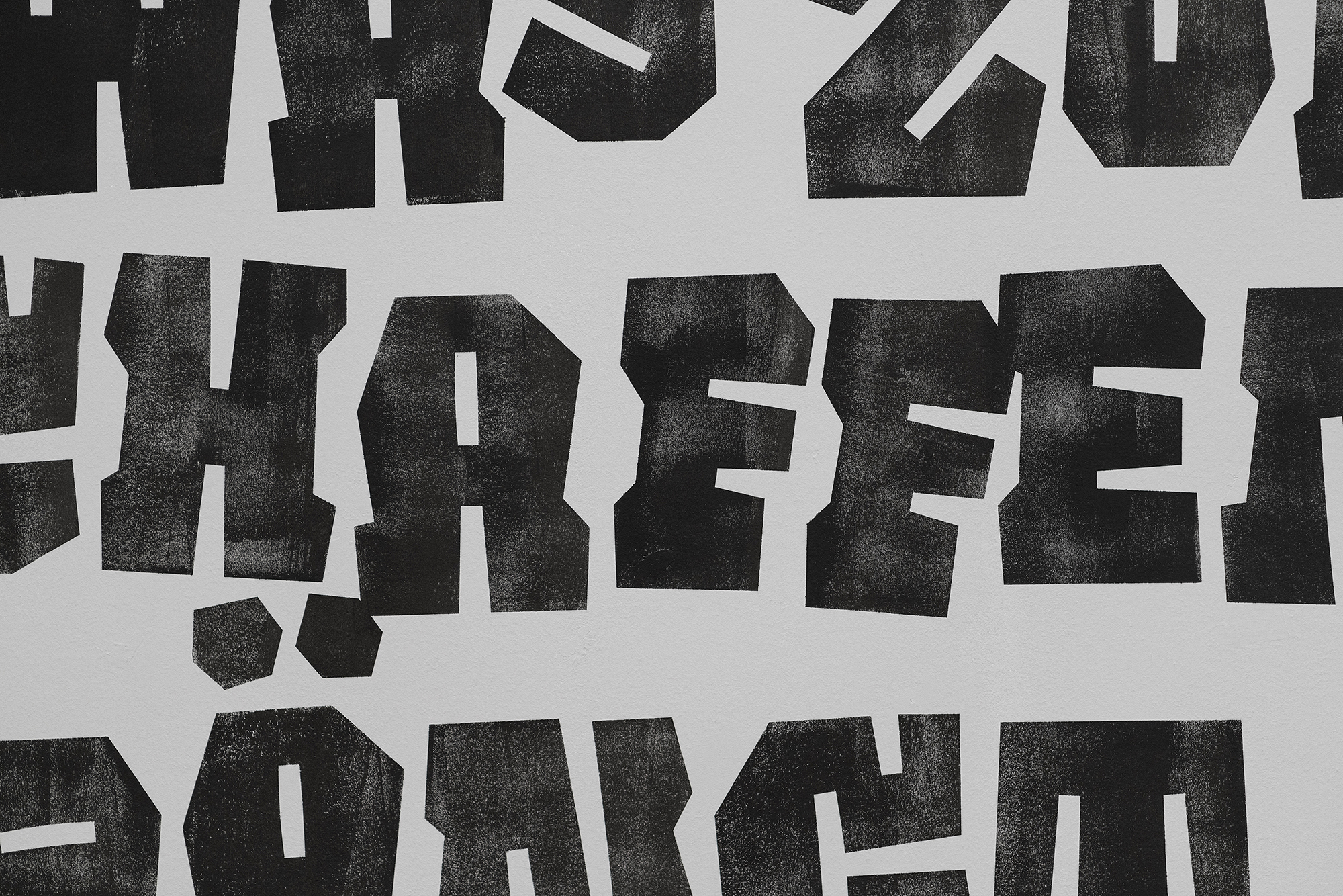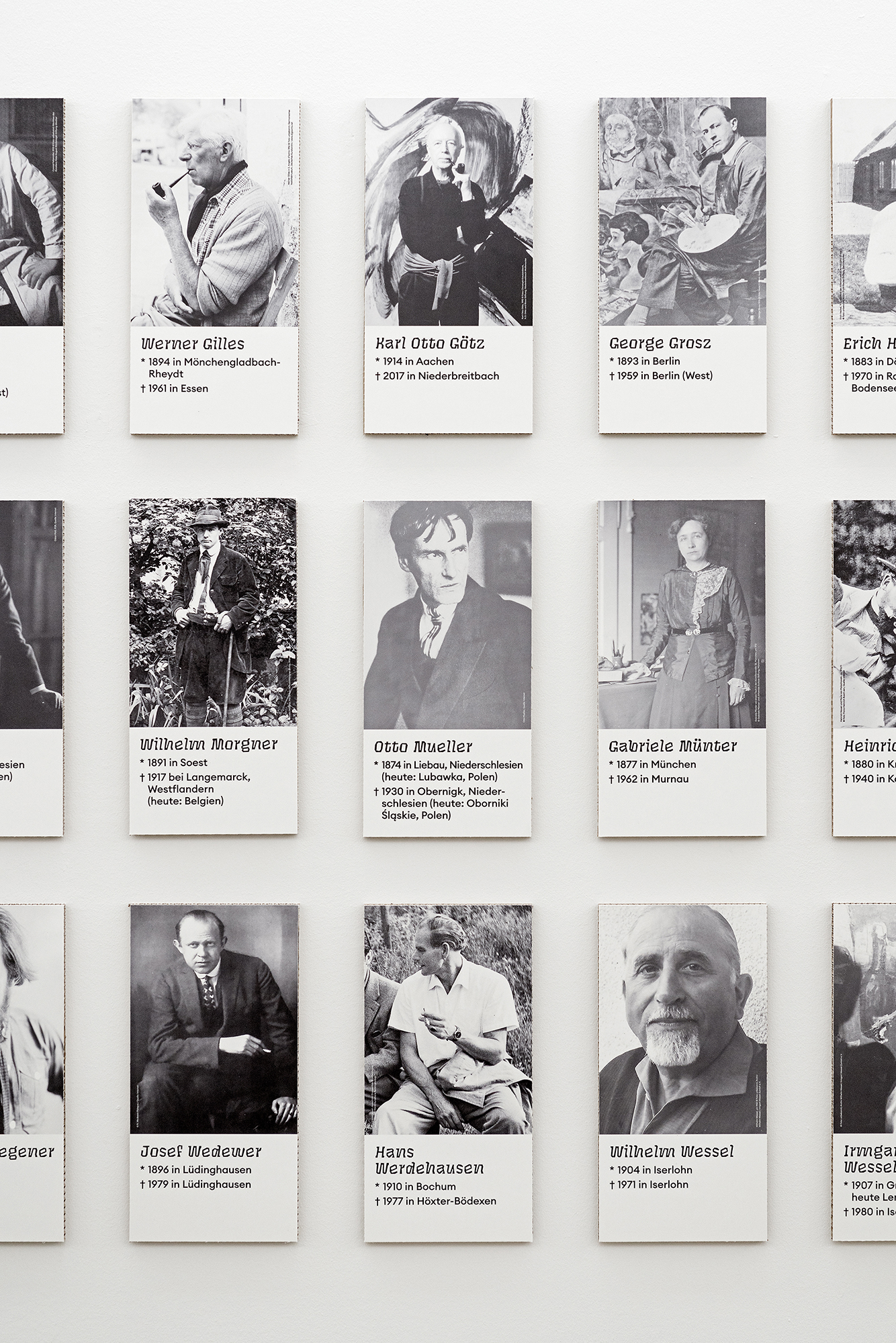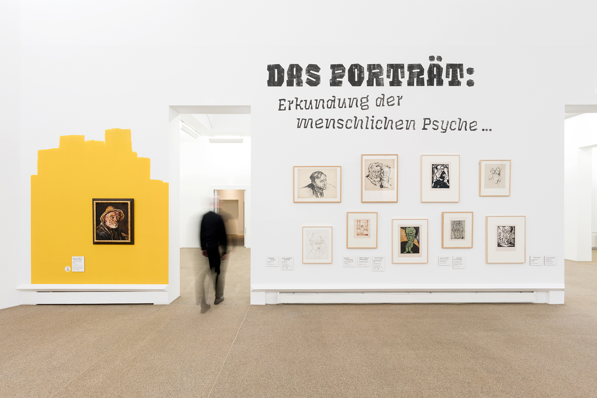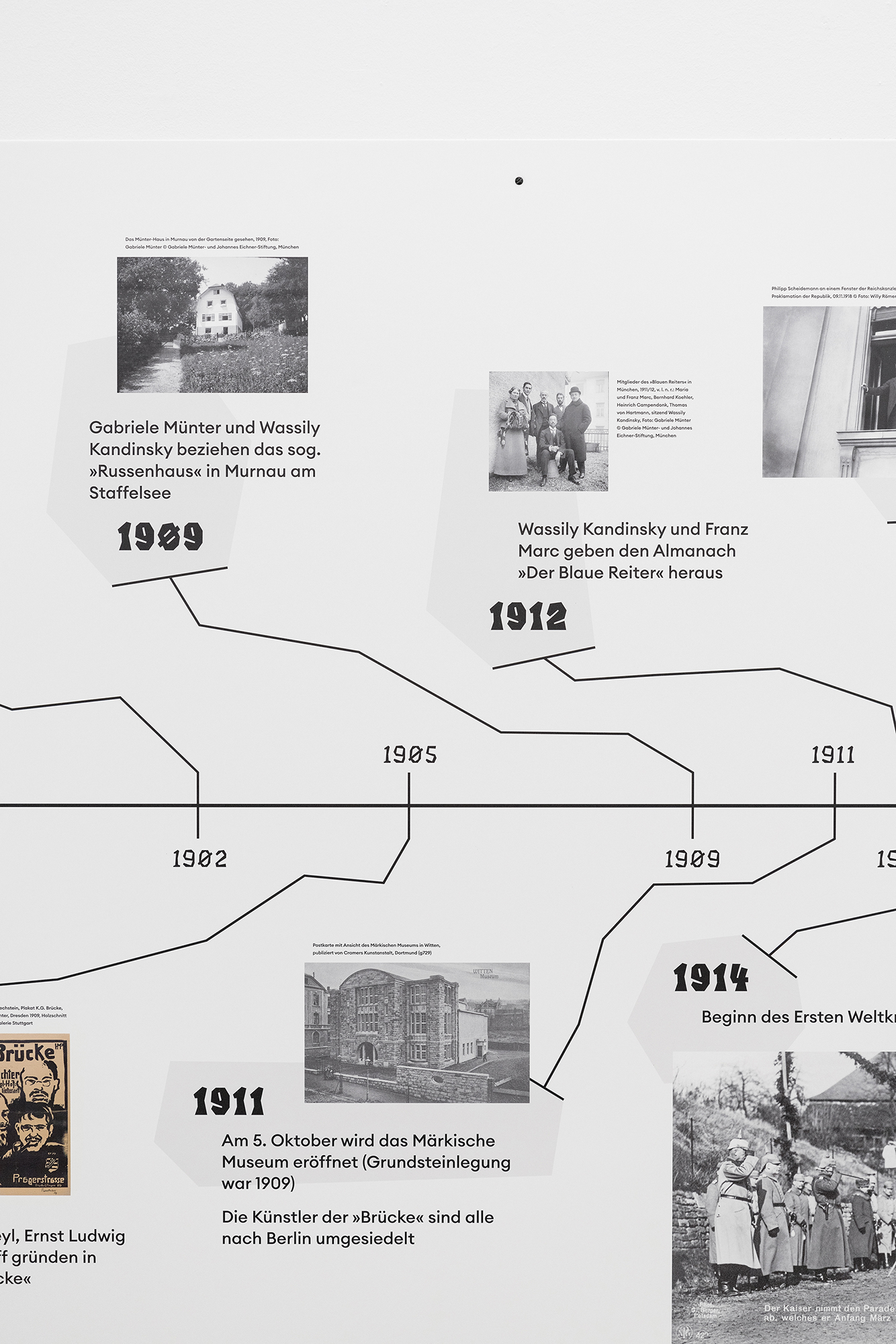 The rough prints of this period are echoed in the chosen typography (Taters by Tommi Sharp, Future Fonts), while the unfinished painted walls and open edges of the information panels evoke the style of Expressionism.