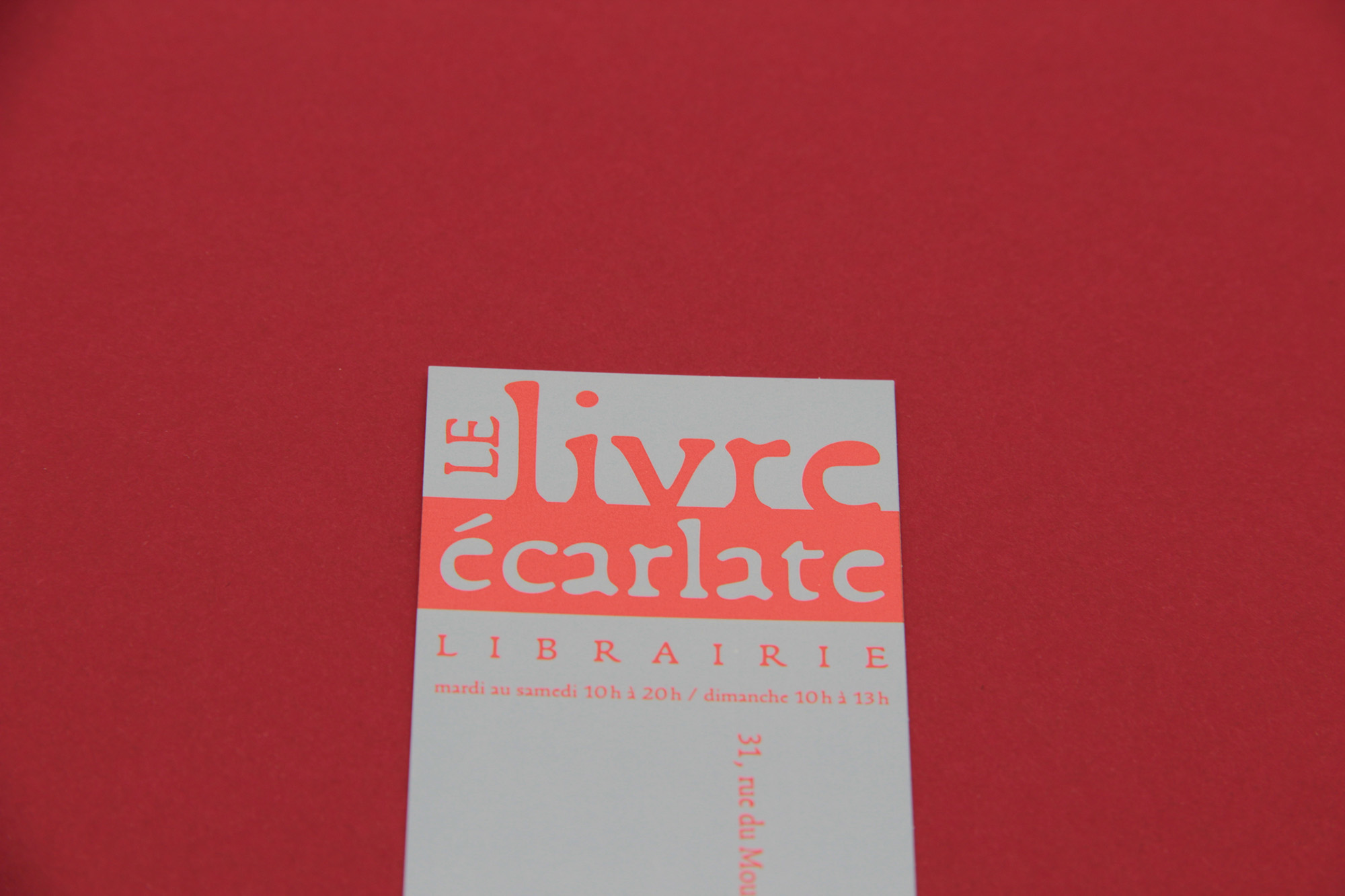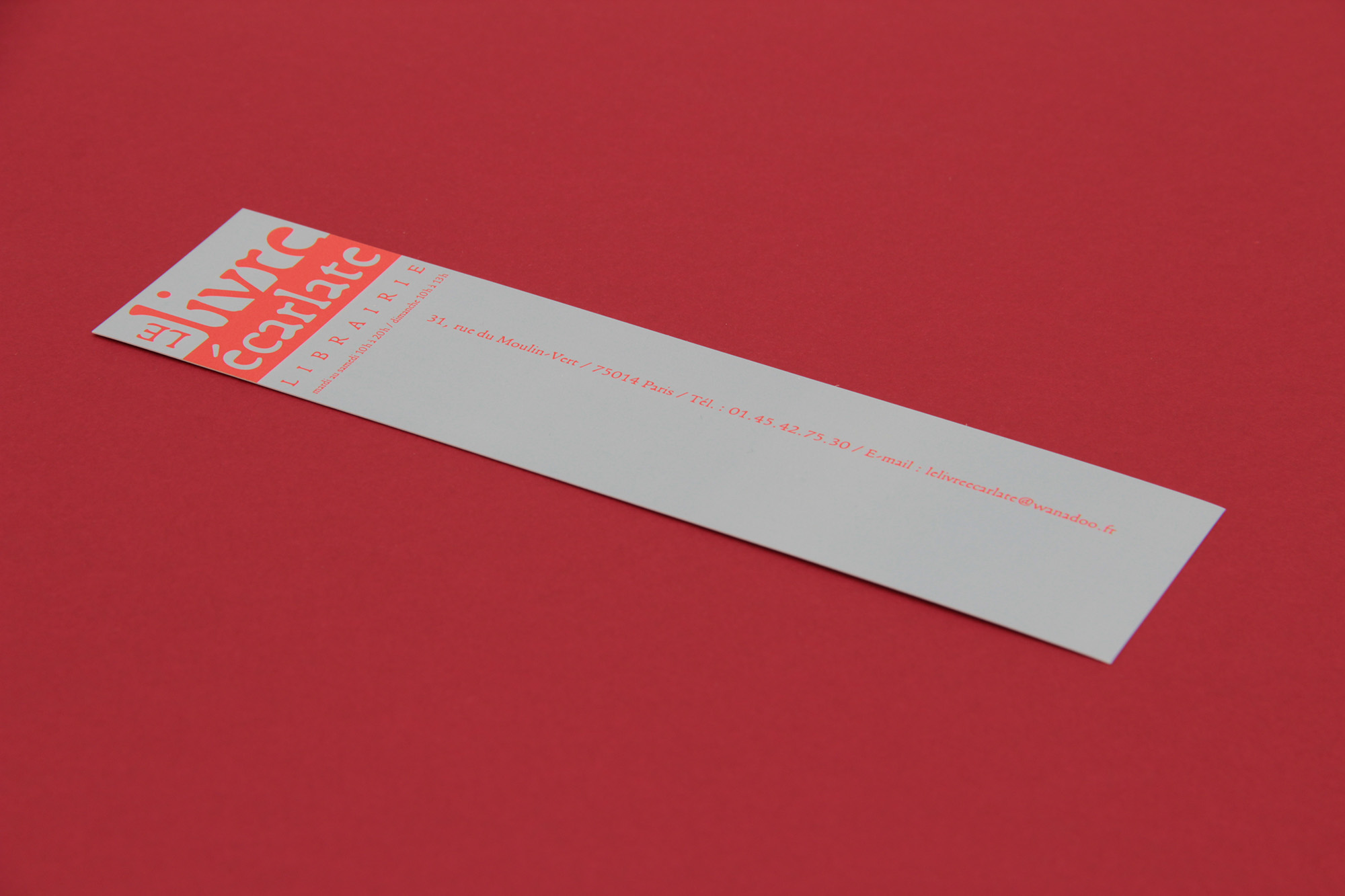 Le livre écarlate (“the scarlet book”) is a generalist independent bookshop located in the 14th arrondissement of Paris. Serge Cortesi designed the identity. The logotype and the information on the bookmark are set in Francesco, combining the easily recognizable lowercase and uppercase letters.