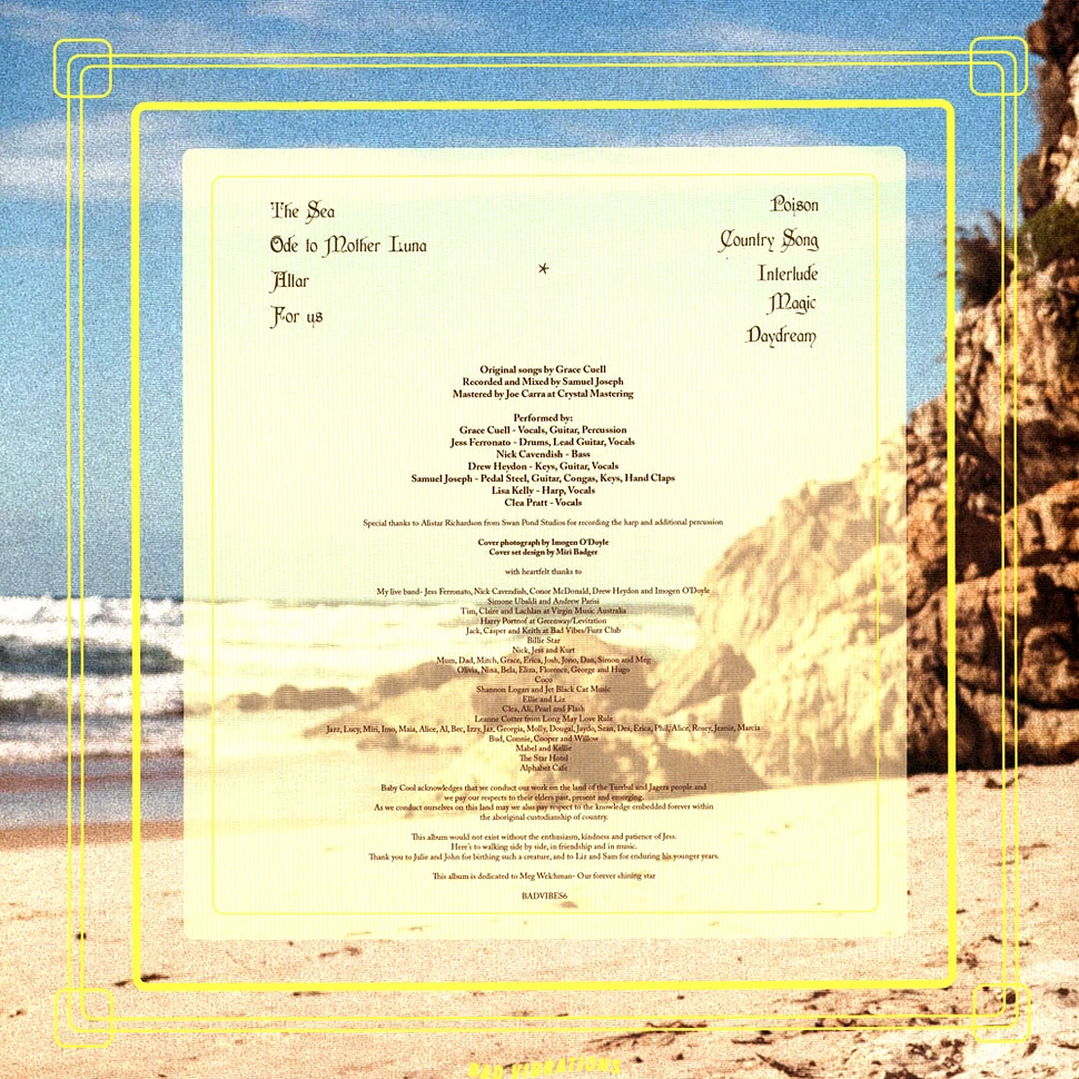 Earthling on the Road to Self Love is the debut album of Baby Cool, a side project of Grace Cuell (co-front woman of the band Nice Biscuit) from Brisbane, Australia. The album was released on the 10th of February 2023 and is distrubuted by Bad Vibrations Records, Greenway Records and the Reverberation Appreciation Society.