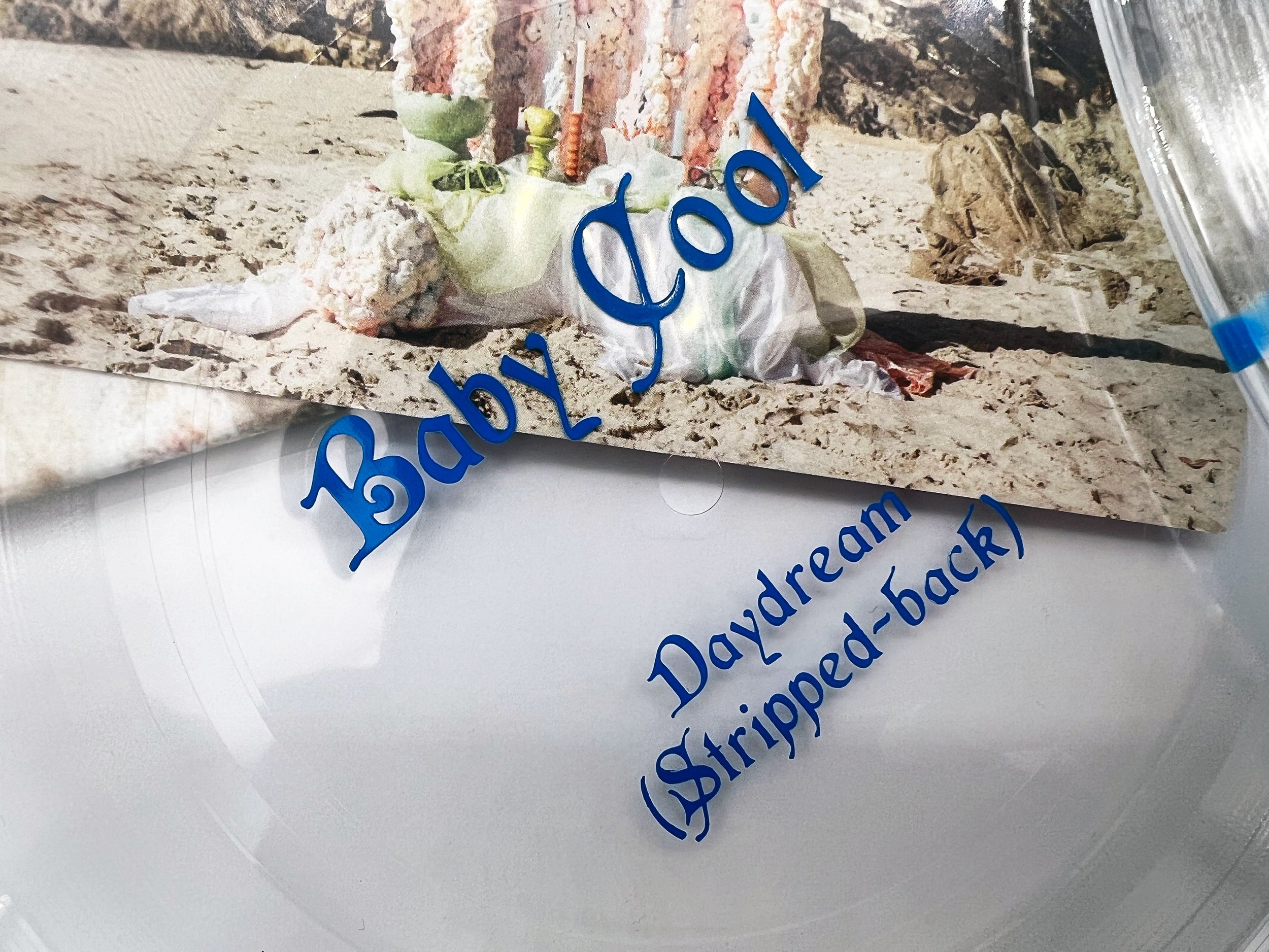 A version of Cardinal – apparently Dieter Steffmann’s digitization – is used for the album title, the track list on the back cover, the LP sticker, some packaging as well as covers for single tracks online (“The Sea”, “Poison”, “Daydream”).