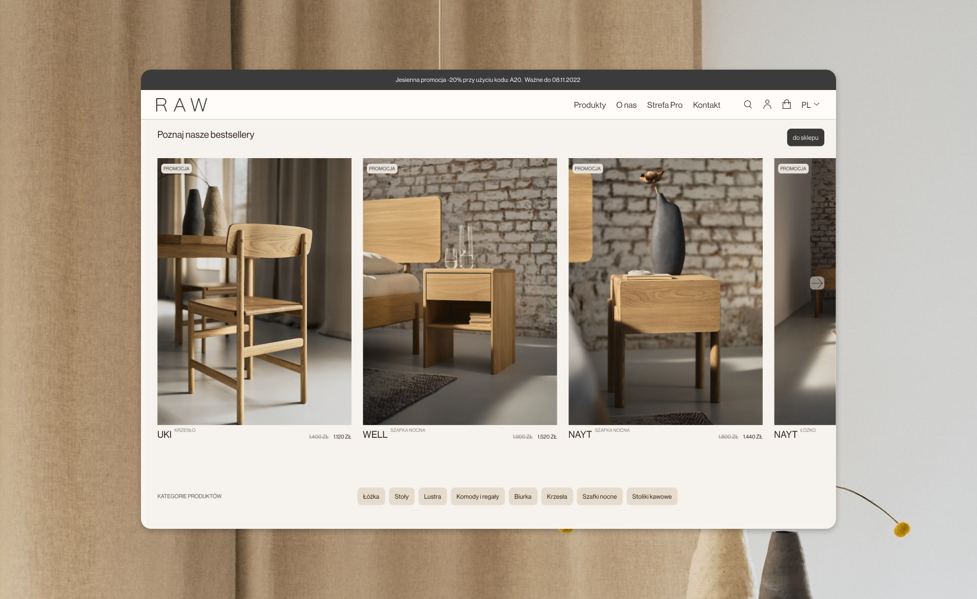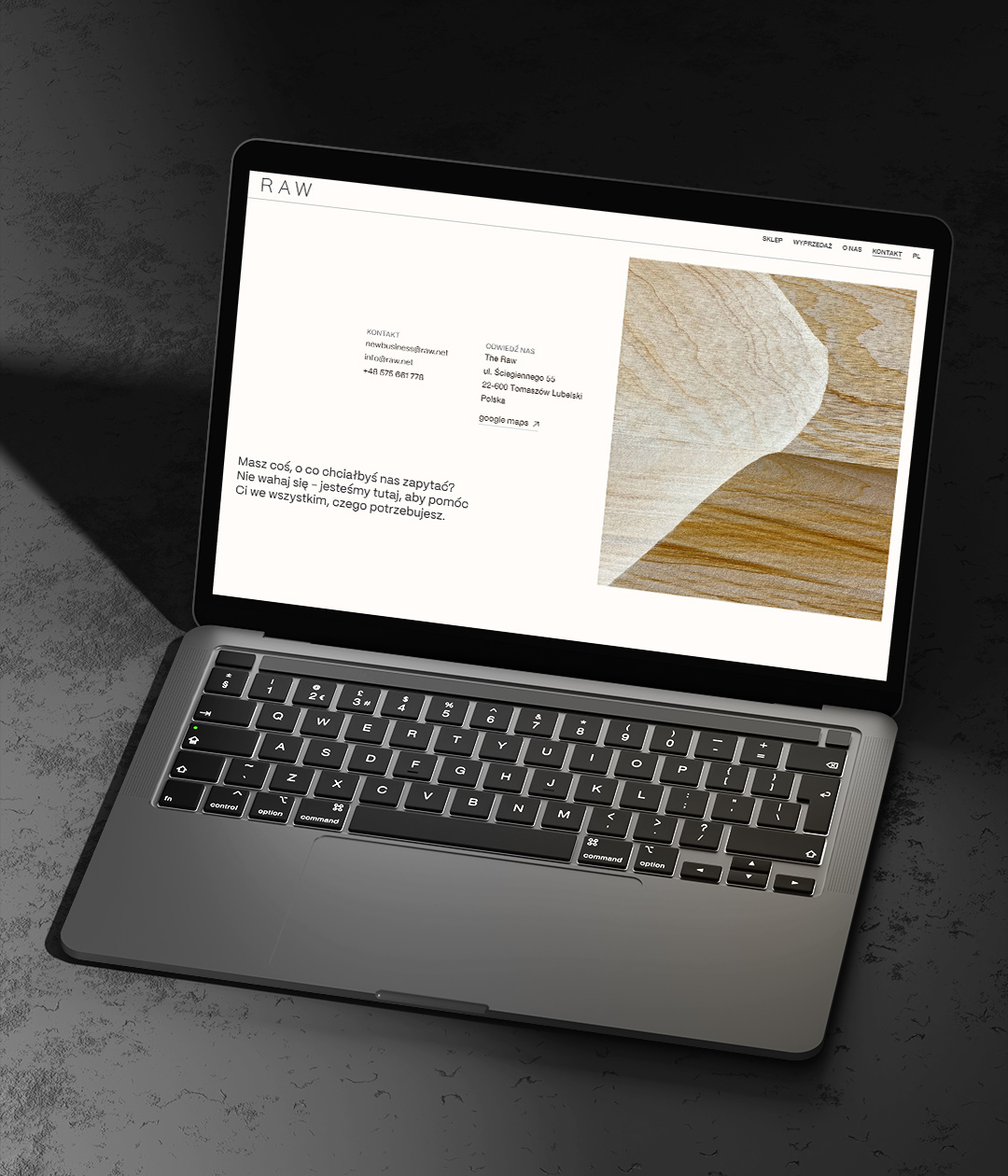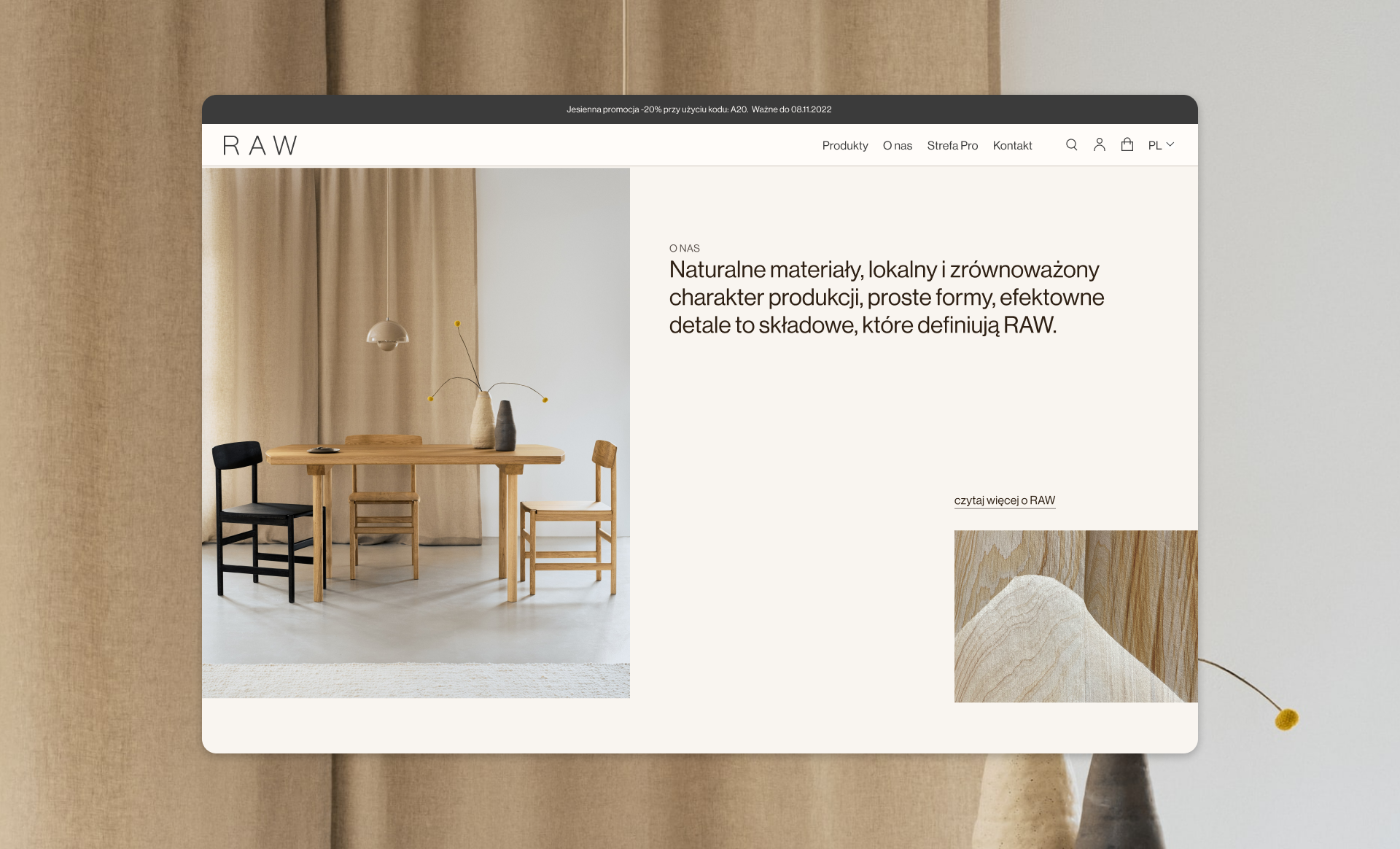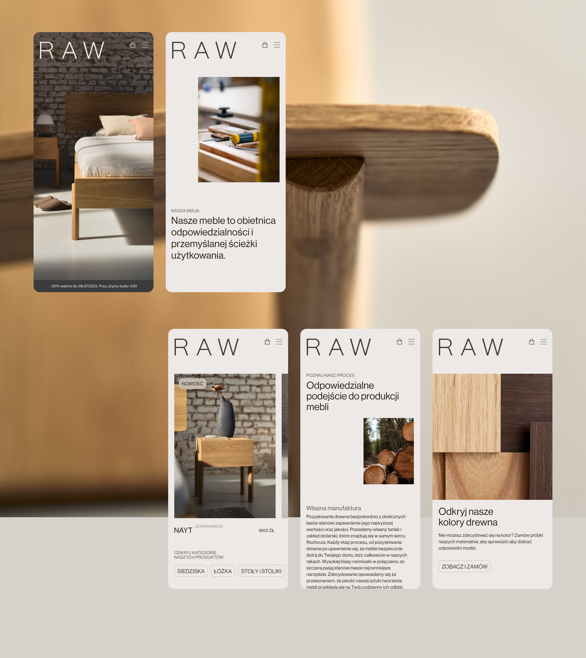 RAW is a brand from Poland that creates and sells minimalist wood furniture. The logo