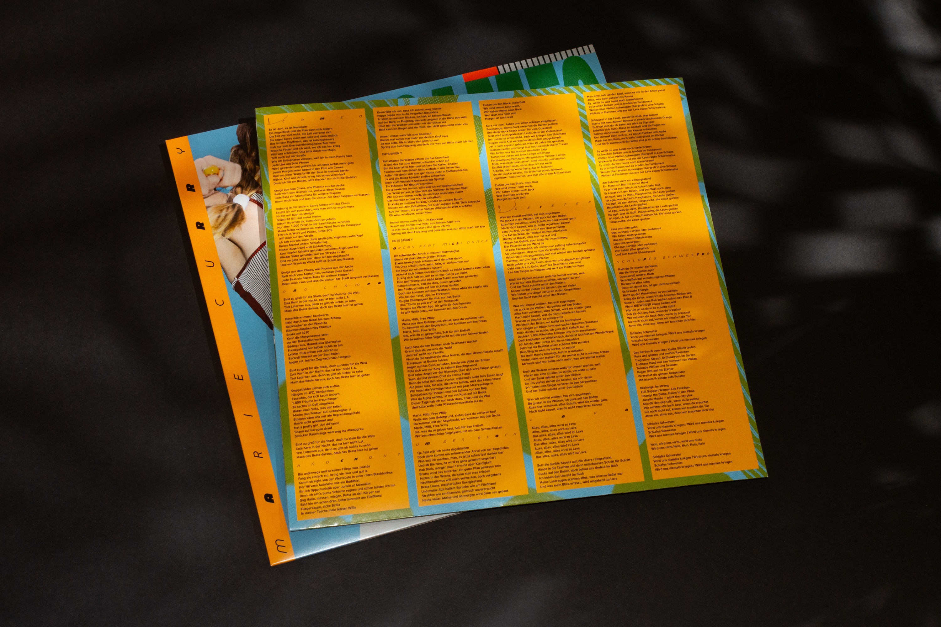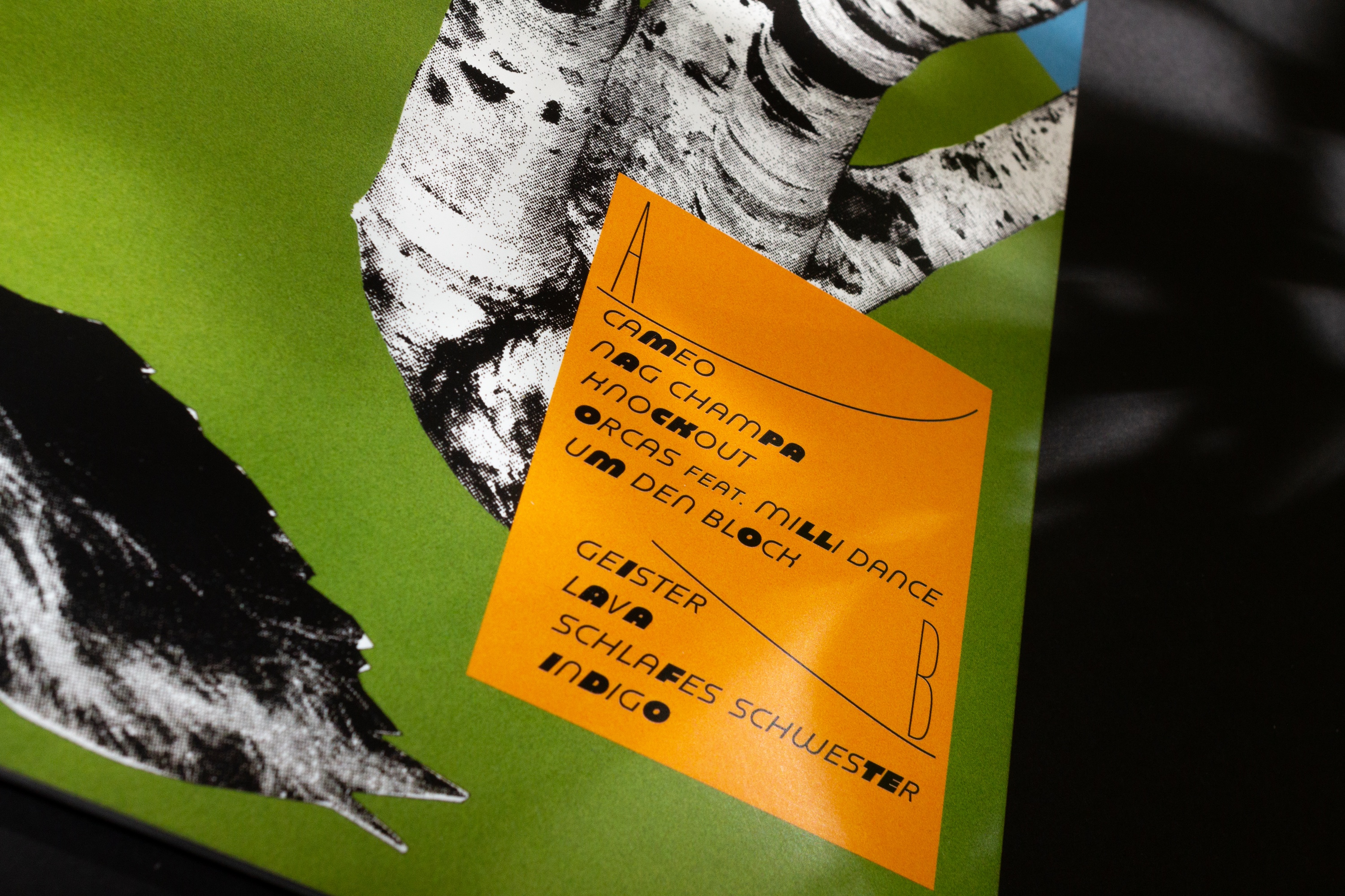 For the “Cameo” lettering and for the A/B letters the studio used Yuni Grotesque by Philipp Neumeyer of Rüdiger. The titles feature Baustraße produced by Fantasia Type and distributed by Future Fonts. The inner sleeve and all additional informations are set in DIN Rounded 2014 wich was released by Paratype .