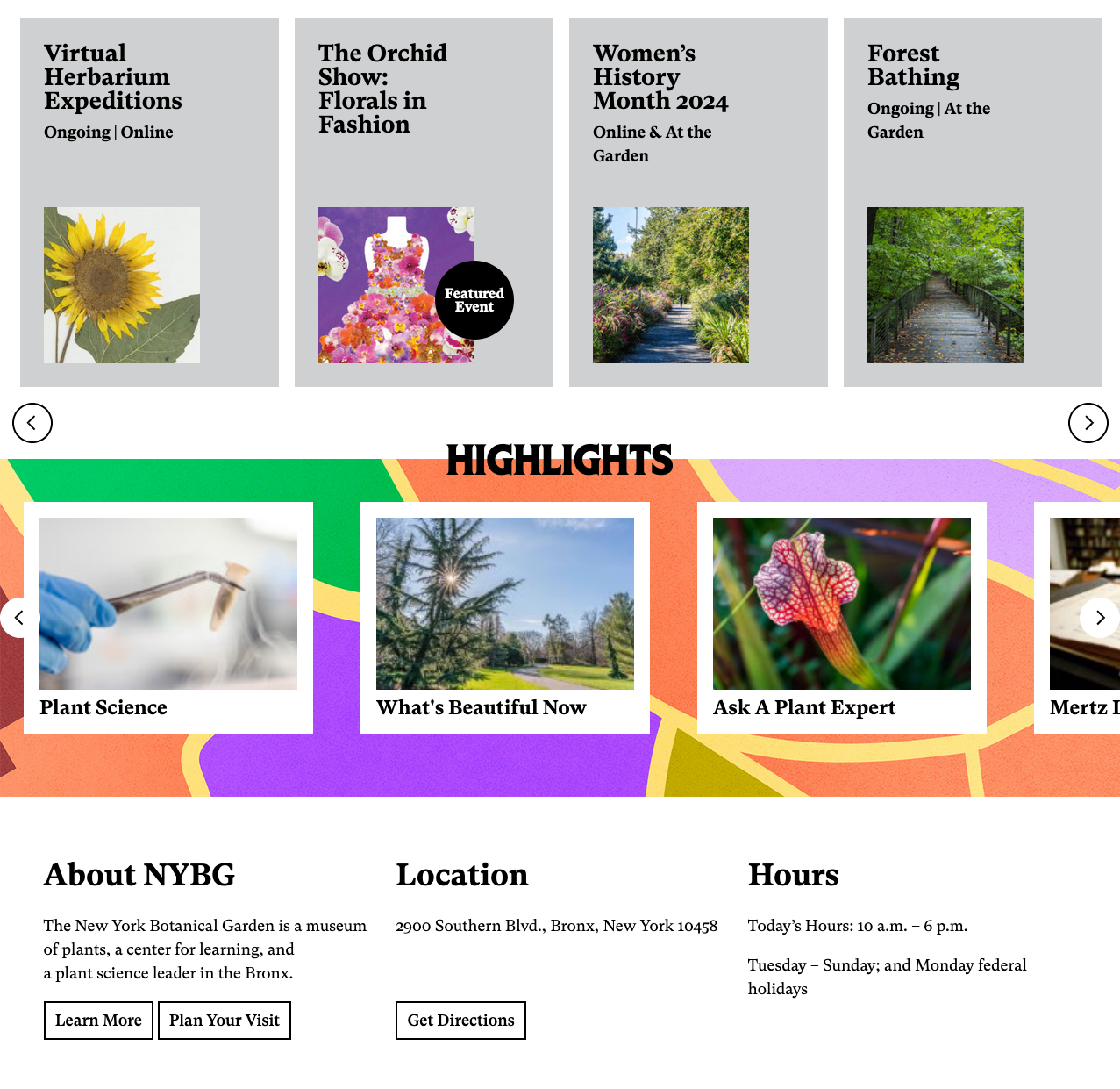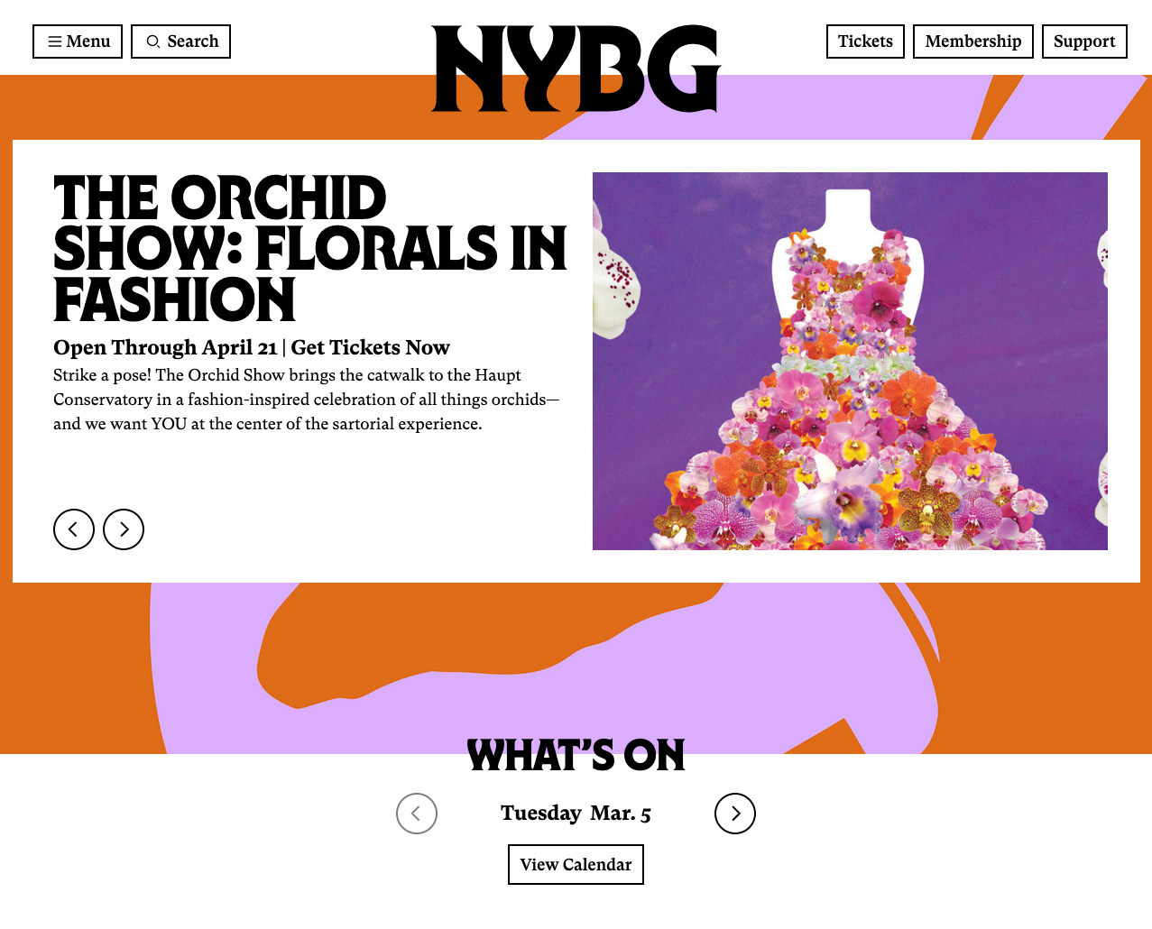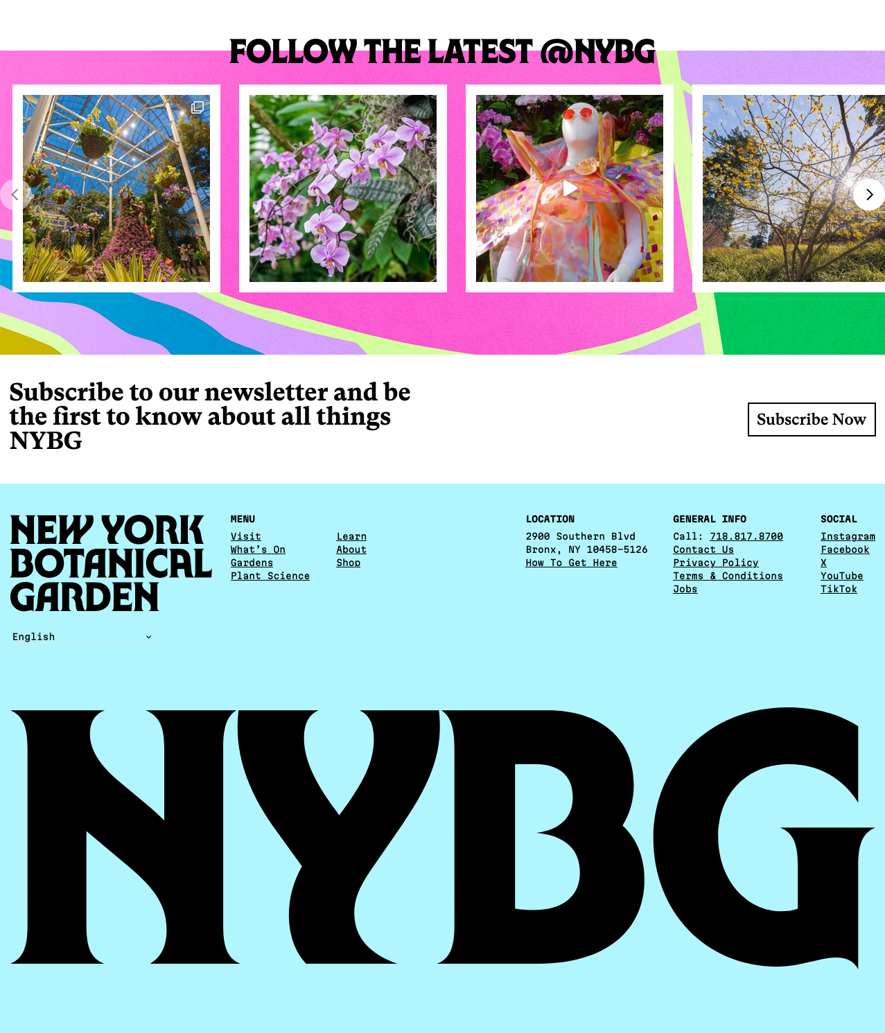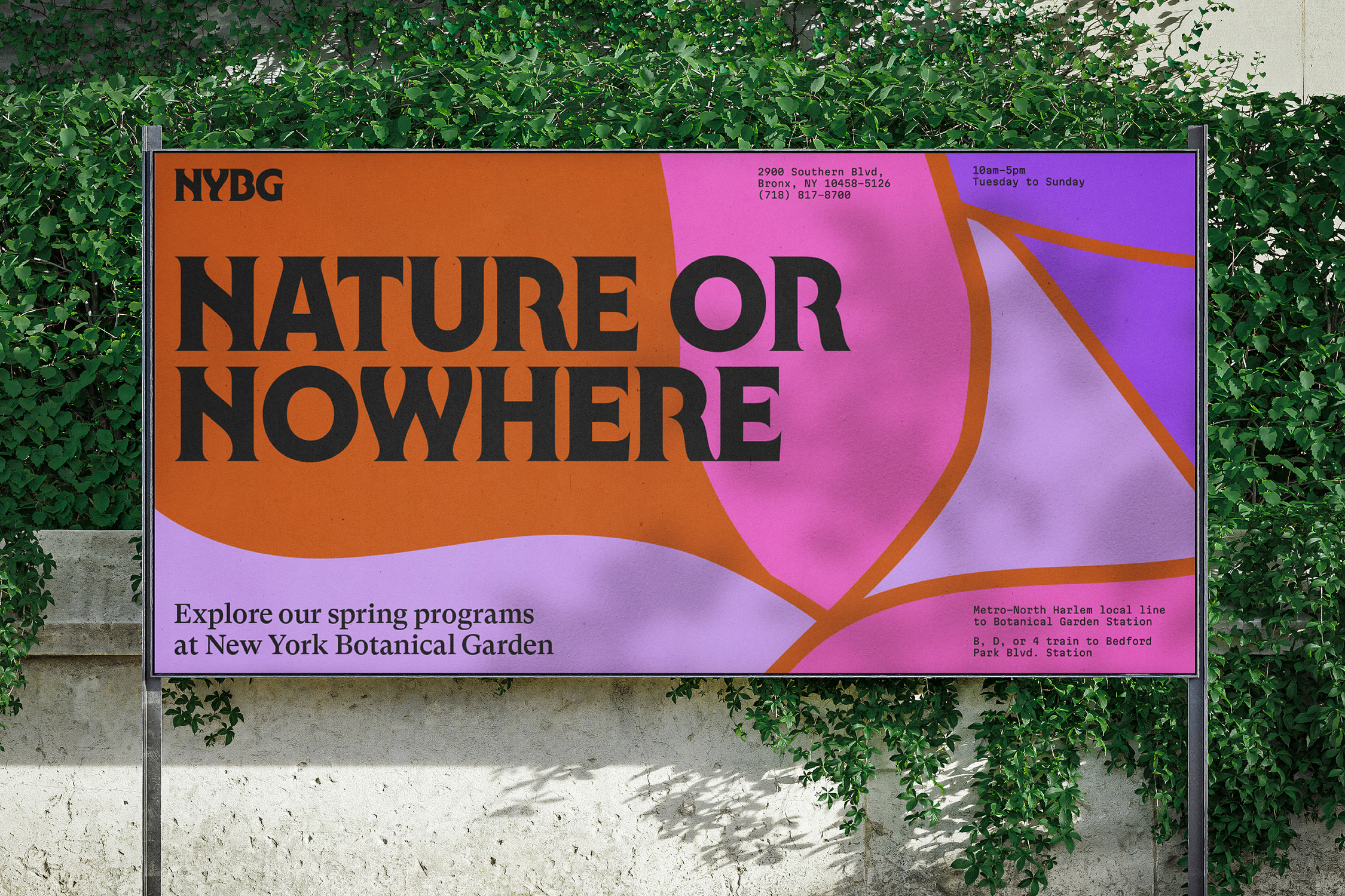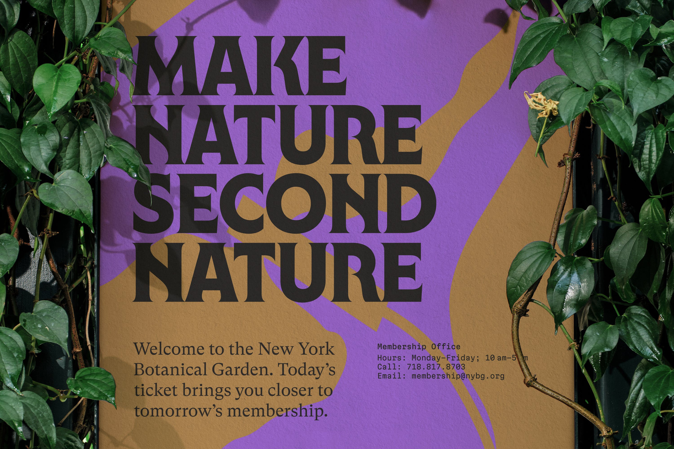 Our refreshed logo is full of organic shapes inspired by natural elements, all of which can be found among NYBG’s collections: flowers, bees, trees, dewdrops, succulents, etc. Our new custom font—NY Botanical Gothic—draws upon notable posters from the environmental movement of the 1960s and ’70s that can be found in our LuEsther T. Mertz Library collection. The Serif forms of the new font pay homage to the more traditional fonts found on historic buildings throughout New York City and across our Garden landscape. Lastly, the new logo evokes the spirit of place of New York City, drawing inspiration from other famous New York icons such as the New York Yankees, The New Yorker, and The New York Times. Our secondary font, GT Super, fits well within the framework of a logo that’s both retrospective and future-facing. Inspired by typefaces from the 1970s and ’80s, it focuses on “the expressive and idiosyncratic nature of calligraphic motions, compelled into stable, typographic shapes”—the perfect combination of flowery and functional.