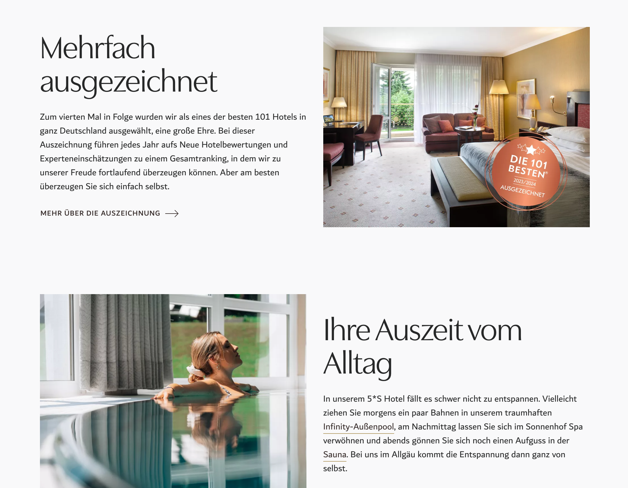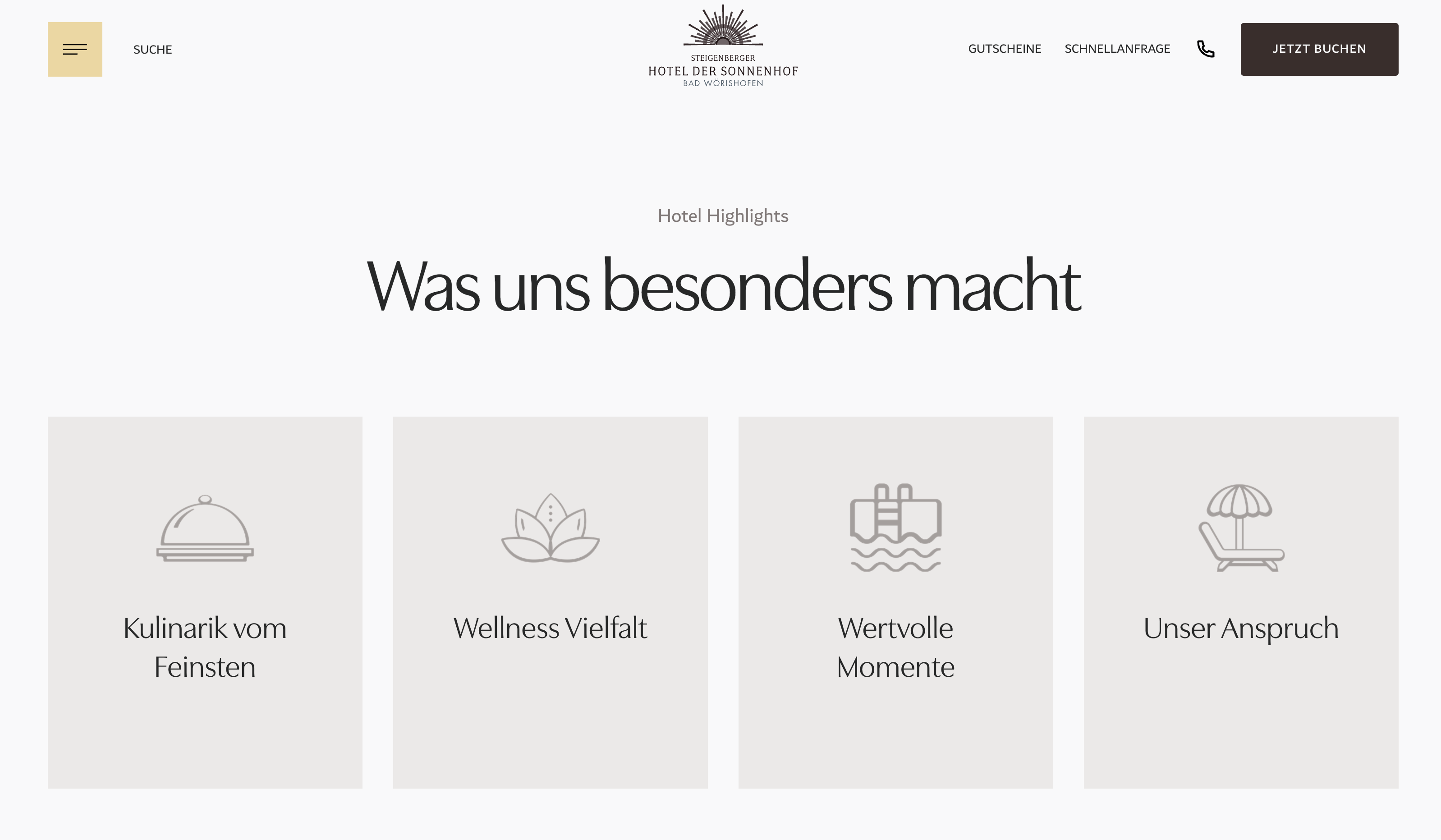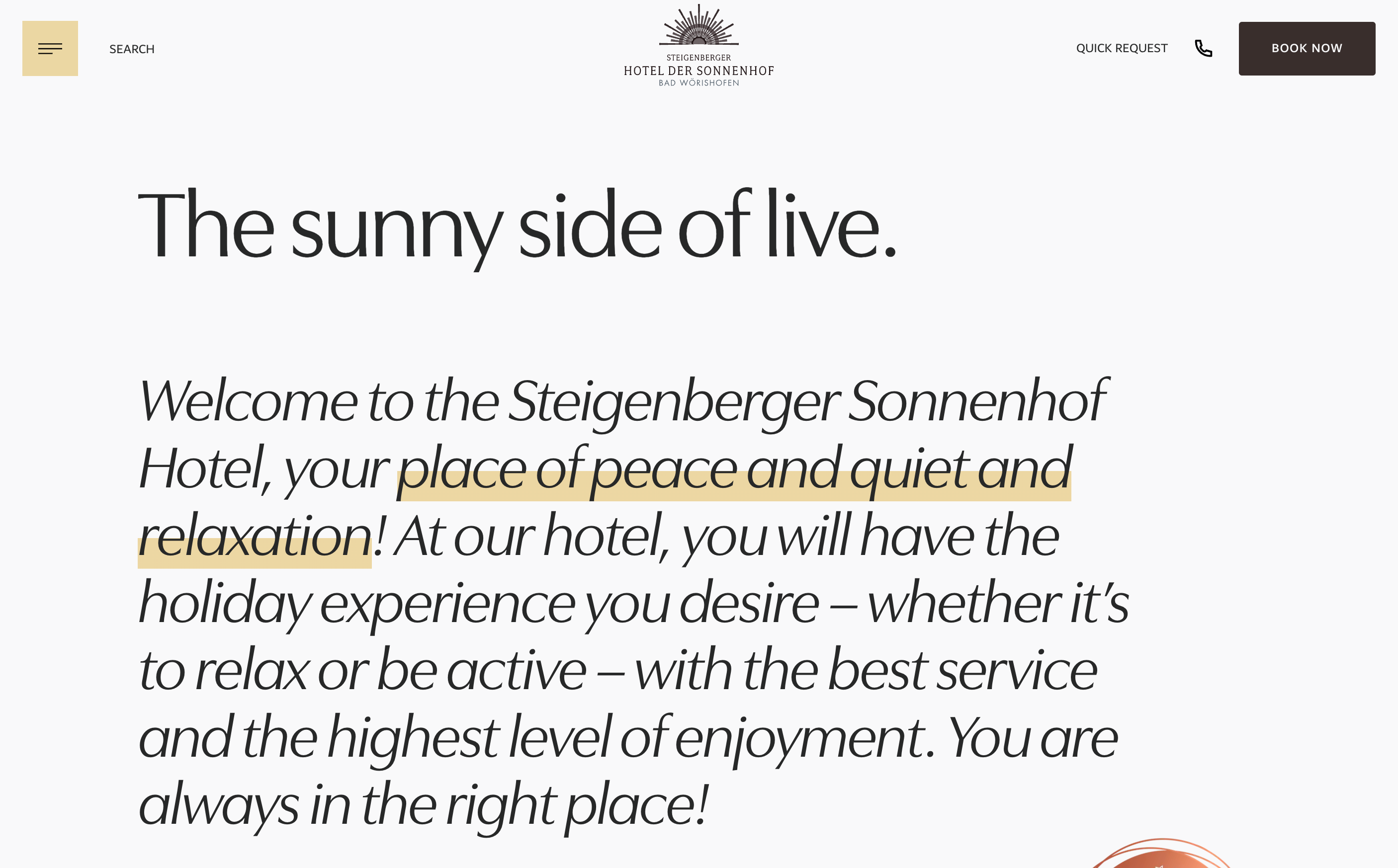 The Hotel der Sonnenhof is located in Bad Wörishofen, a spa town in Bavaria, Germany. Known for Sebastian Kneipp’s water treatment method, the town attracted guests since the end of the 19th century and became officially a spa town in the 1920s. The Sonnenhof is awarded one of the 101 best hotels in Germany.