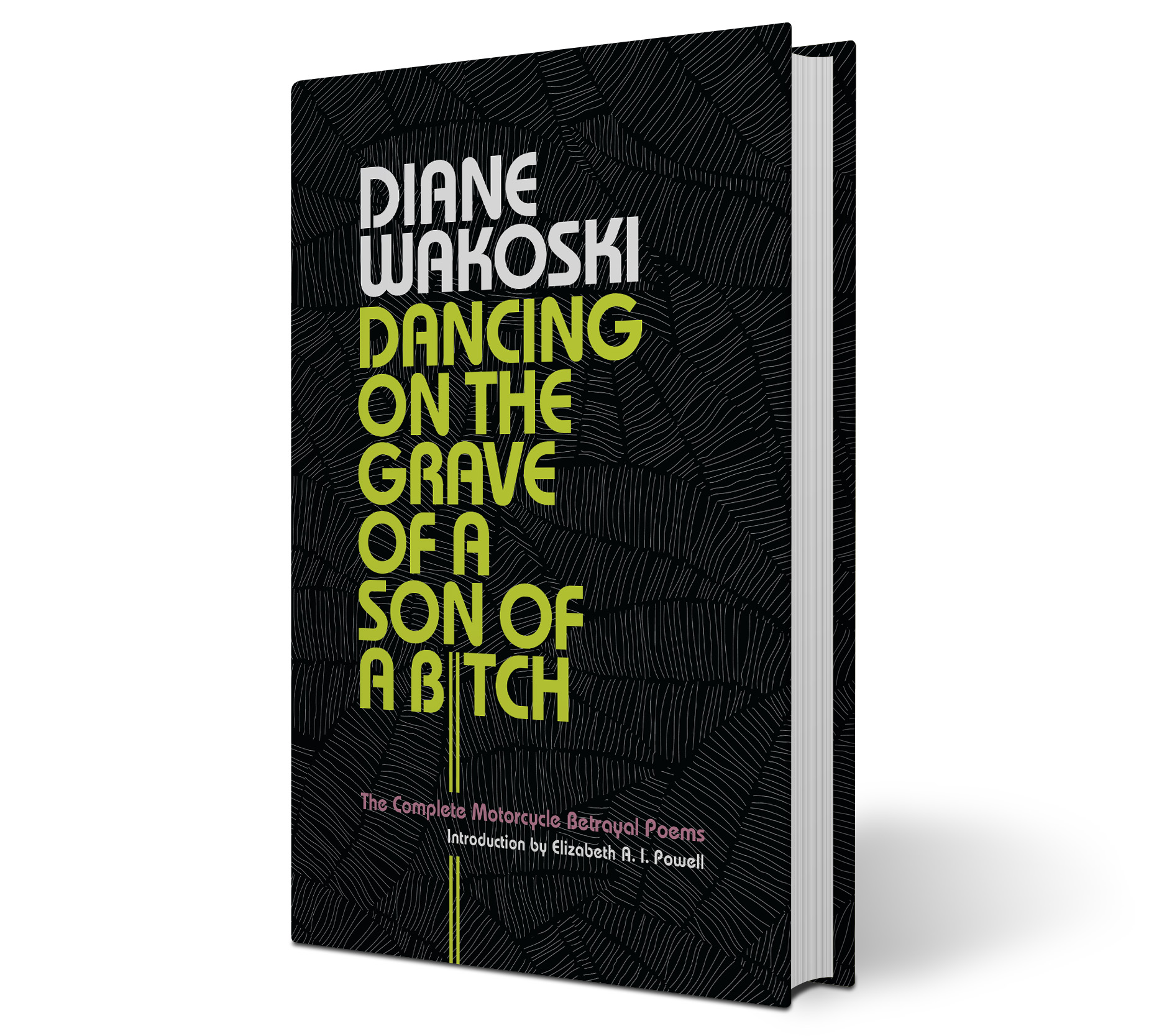 For the cover design, Tammy Ackerman used ITC Bauhaus, splitting the I in “BITCH” to create a visual reference to road stripes, a nod to the book’s subtitle: The Complete Motorcycle Betrayal Poems. The interior is set in Palatino with Optima for titling.