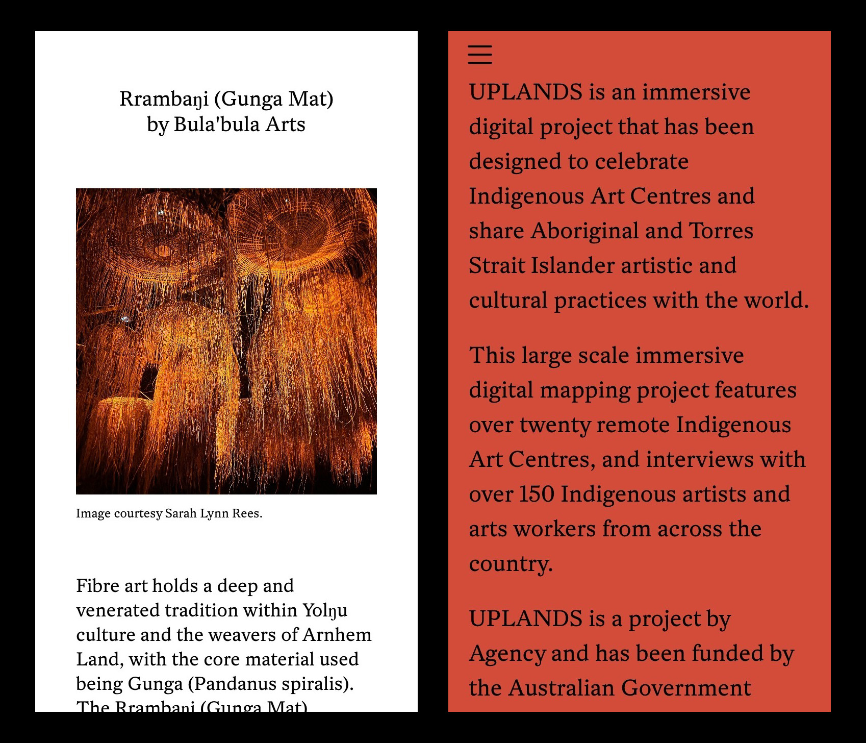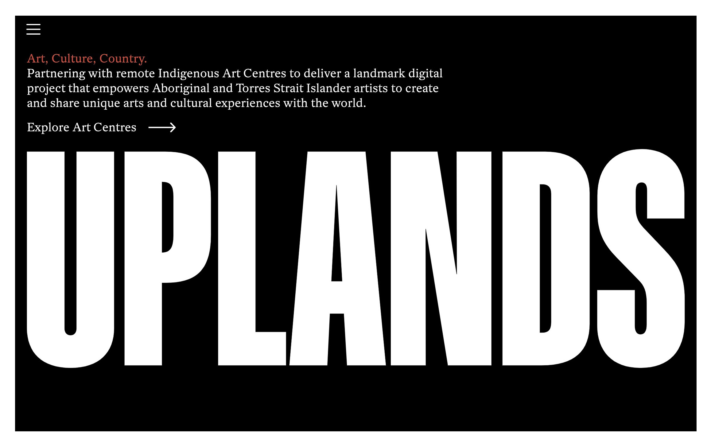 Uplands is an immersive digital project that has been designed to celebrate Indigenous Art Centres and share Aboriginal and Torres Strait Islander artistic and cultural practices with the world.