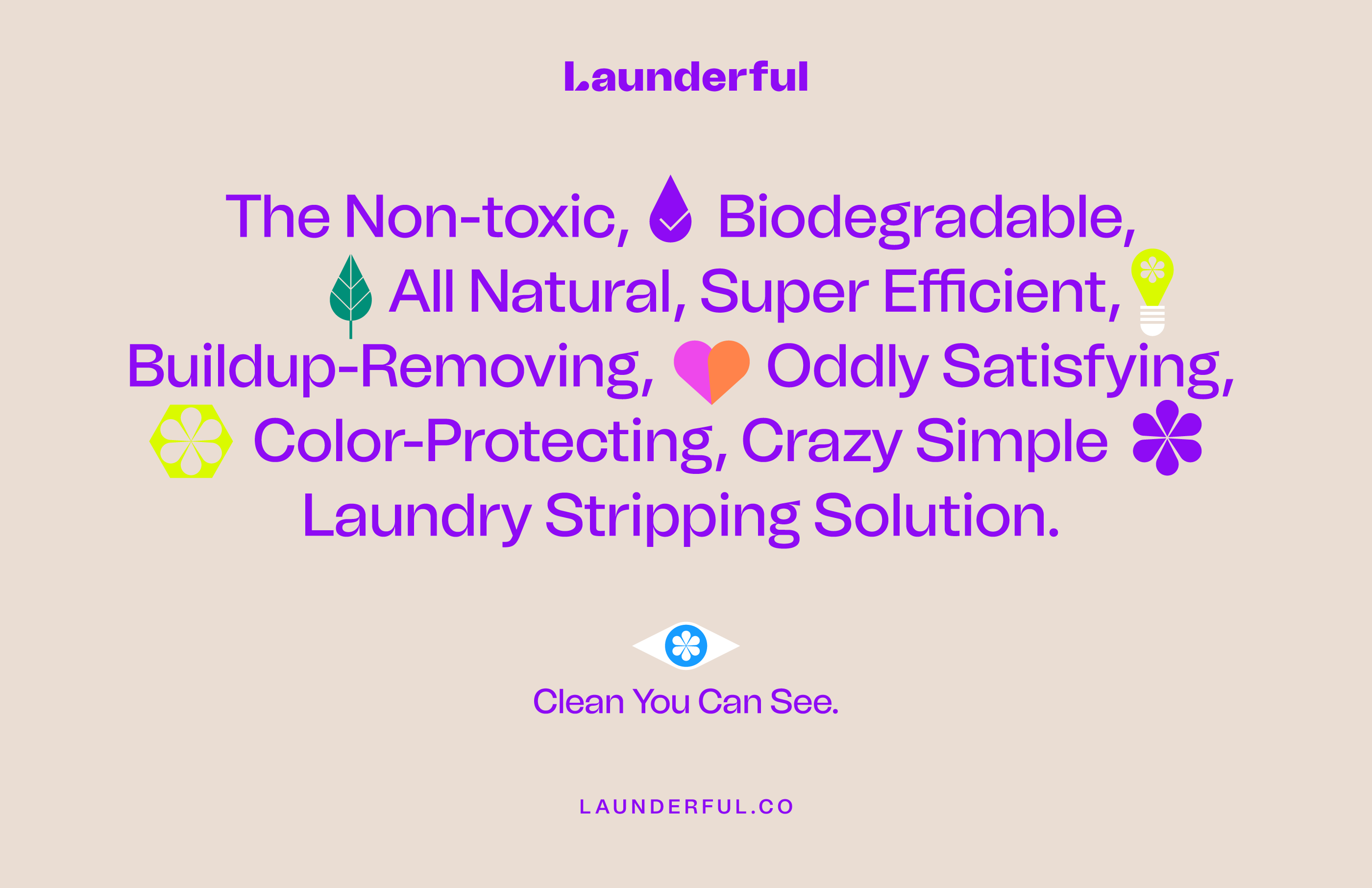 Launderful is a cleaning products company that offers a highly effective, non-toxic, biodegradable, powder “laundry stripper” that deep-cleans and sustains soft goods better (and more Earth-friendly) than most commercial detergents.