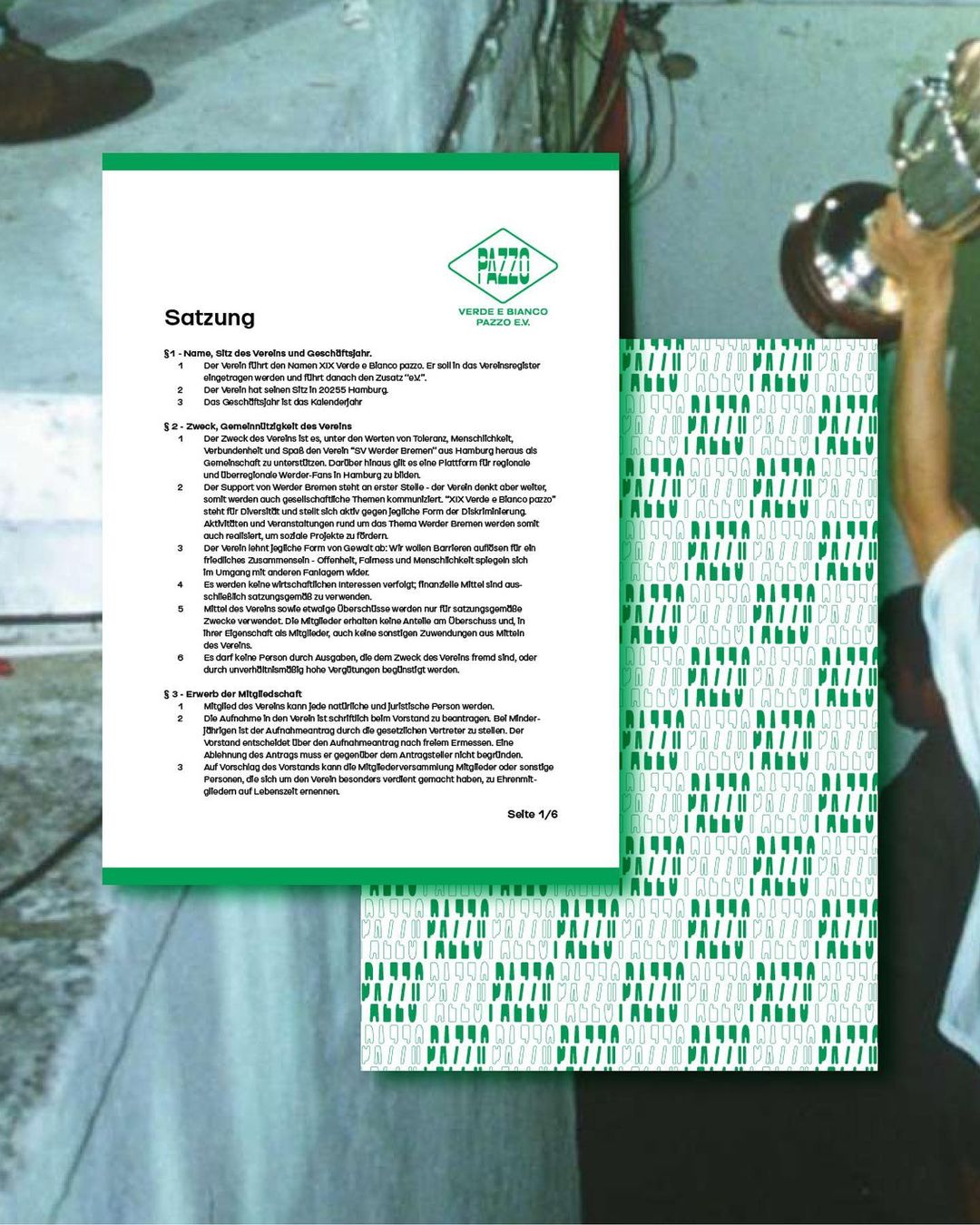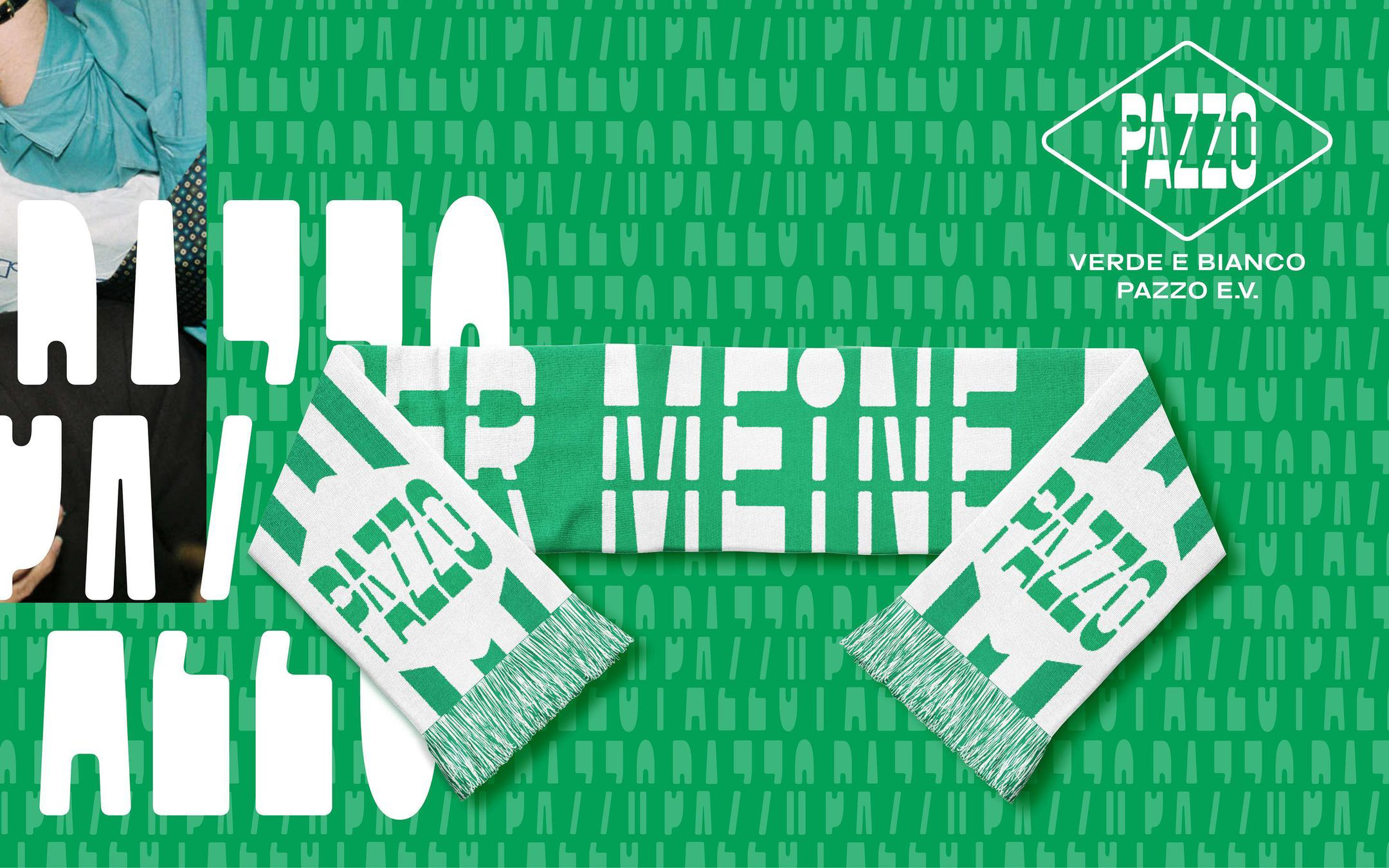 Henry Monse (from studio Karl Anders) created here a cool visual identity and art direction based on a pair of fonts – Vroum Gti (from lift-type) and Elastik (from Benoît Bodhuin) – for Verde e Bianco Pazzo, the biggest Werder Bremen fanclub in Hamburg. Both Vroum Gti’s upright and “Decalic” styles are used. The latter is an italic where every next segment of a character – bottom, middle and top part – is shifted a bit more to the right, creating a slanted effect.