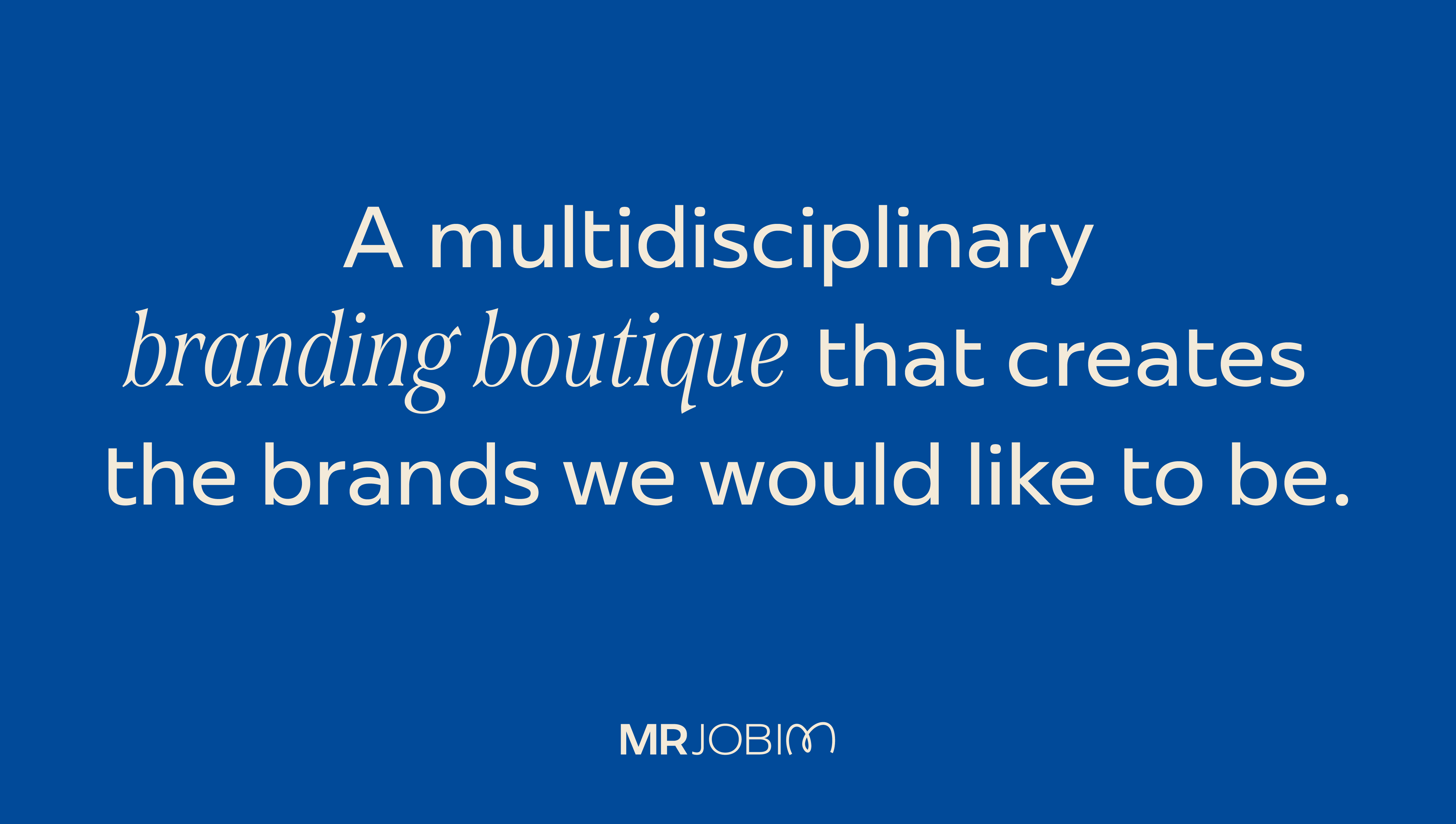 Based in São Paulo, creating for the world: MR Jobim is a branding boutique that combines strategy, creativity and a sensitive perspective to connect brands to the future through tailor-made solutions. To compose our typography, we matched two contrasting fonts: TT Commons and Span.