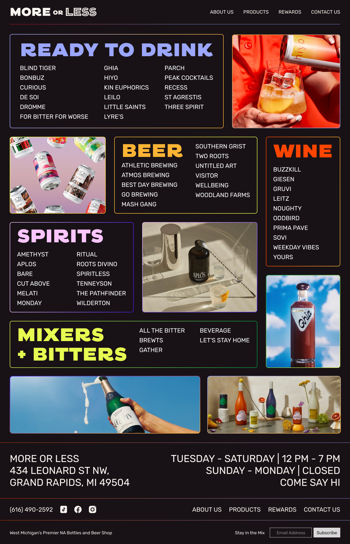 Branding, identity and website design for Midwest’s premier non-alcoholic bottle and beer shop, More or Less, located in Grand Rapids, Michigan.