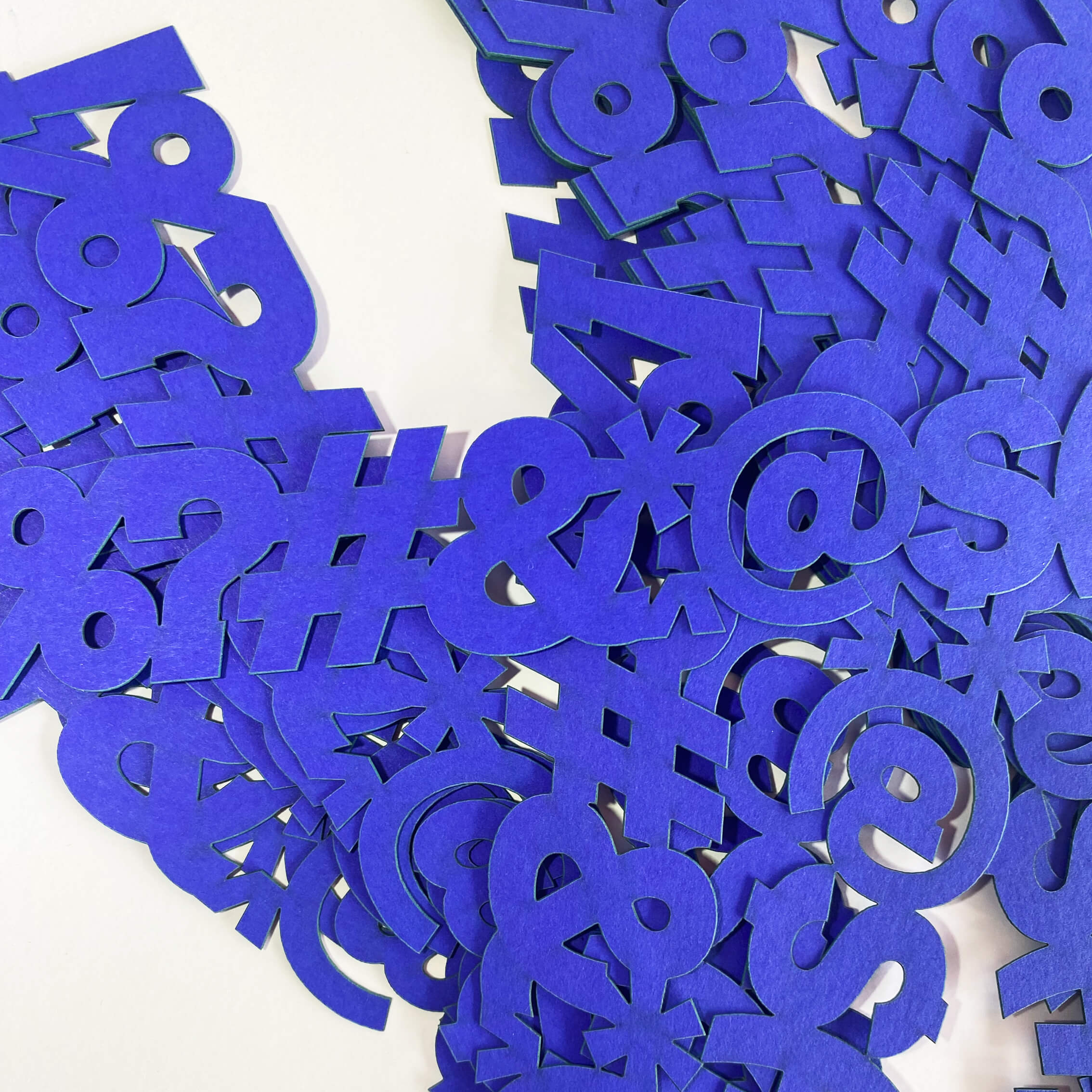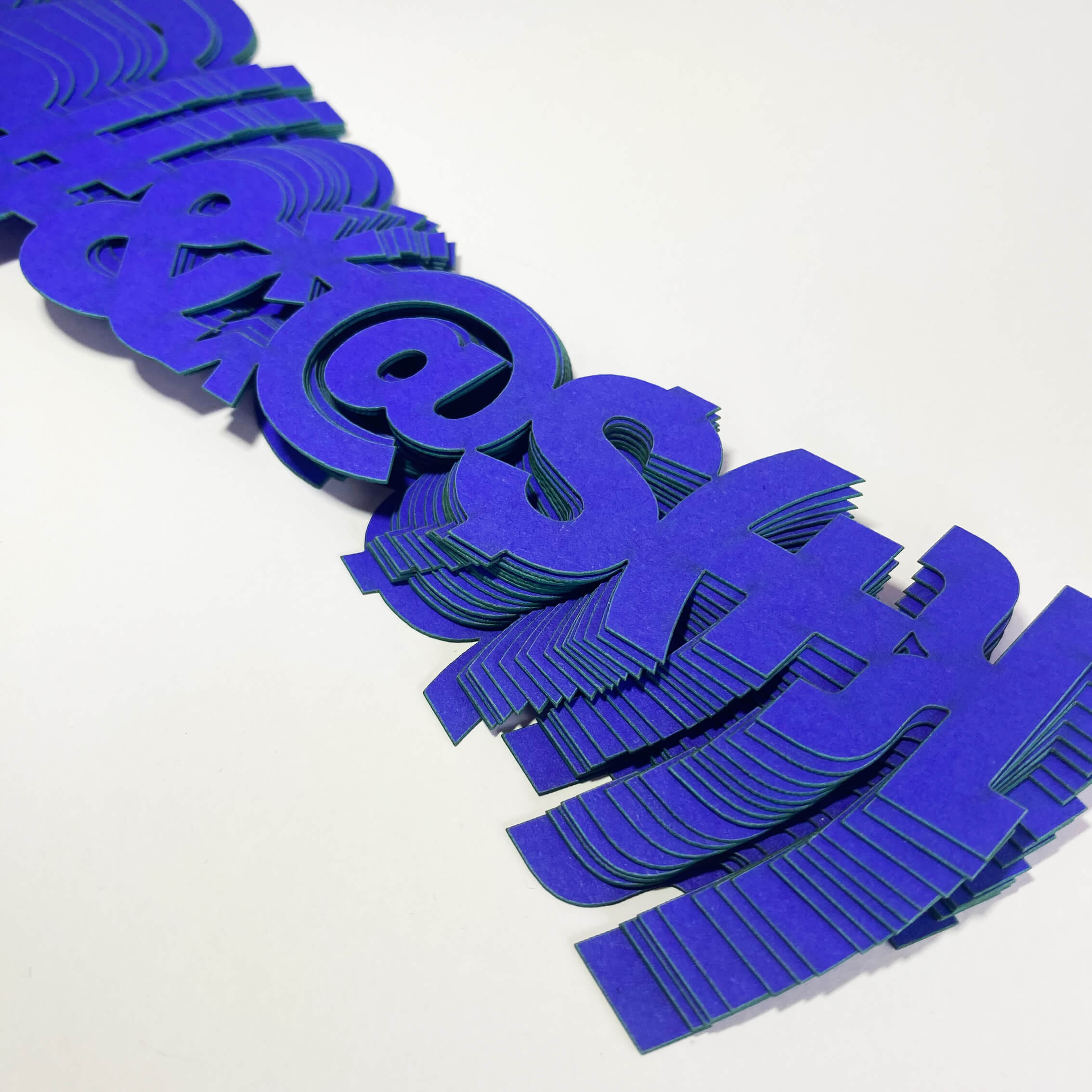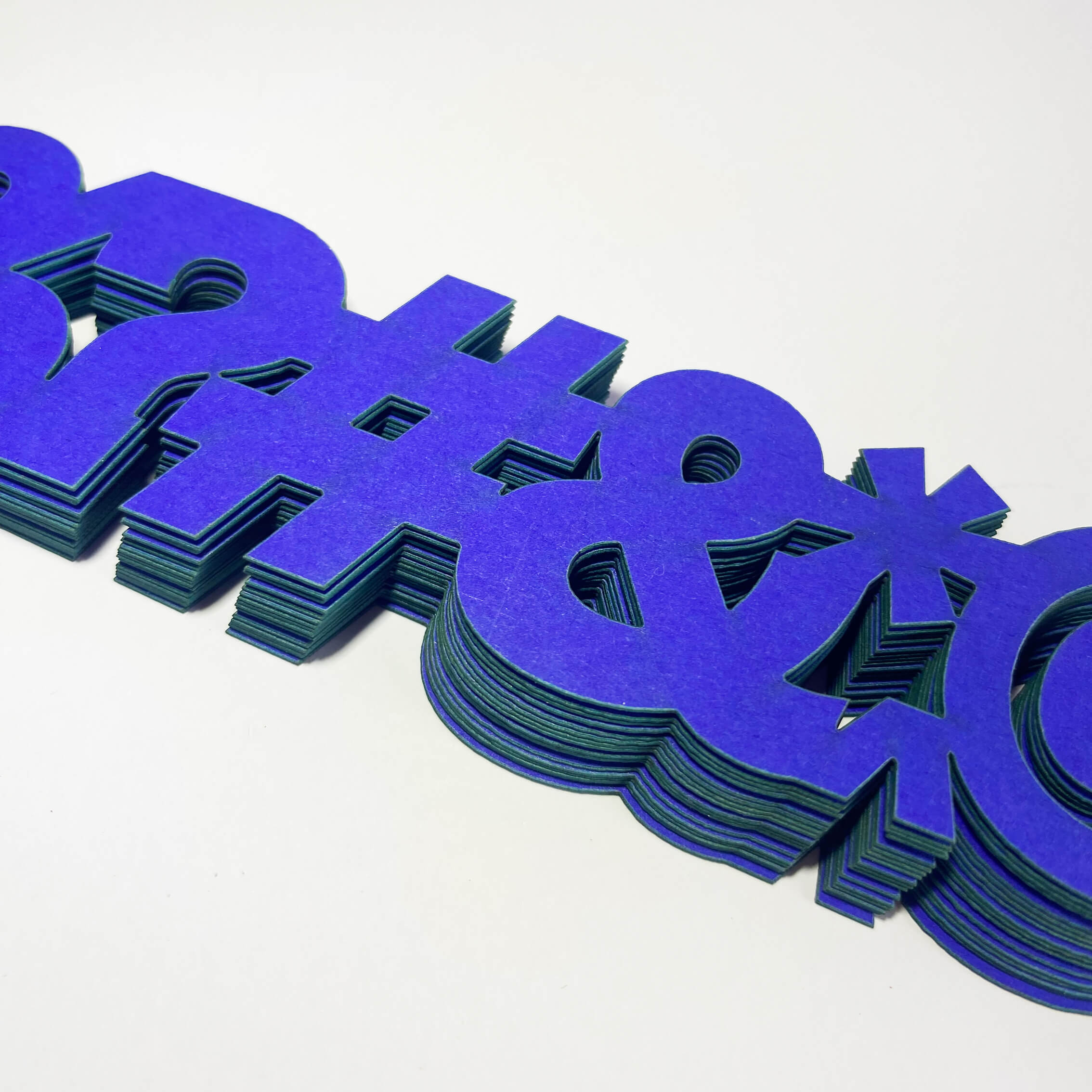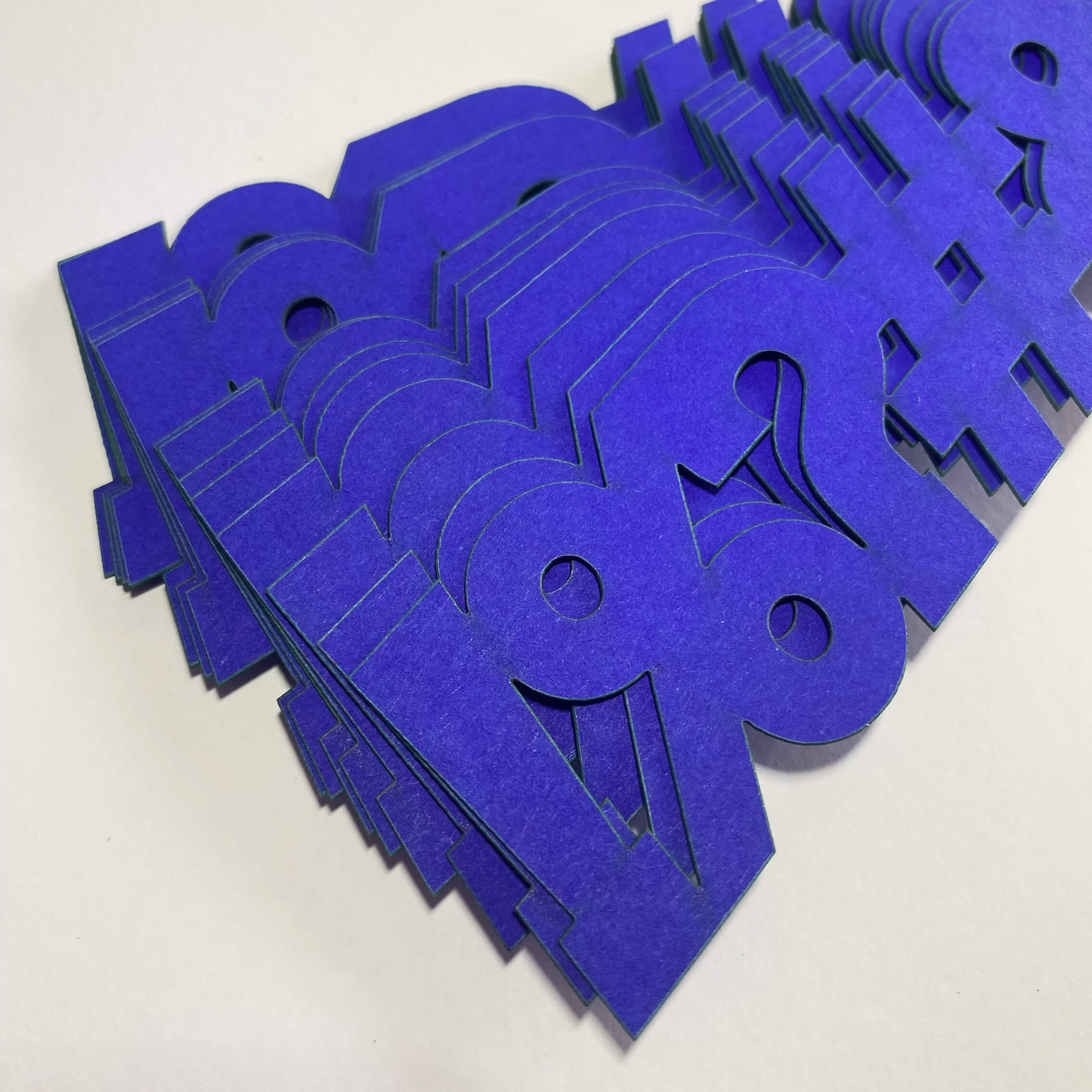 Set in HAL Four Grotesk, published by HAL Typefaces, the bookmarks were lasercut from 300 g/m Ultramarin Fotokarton.