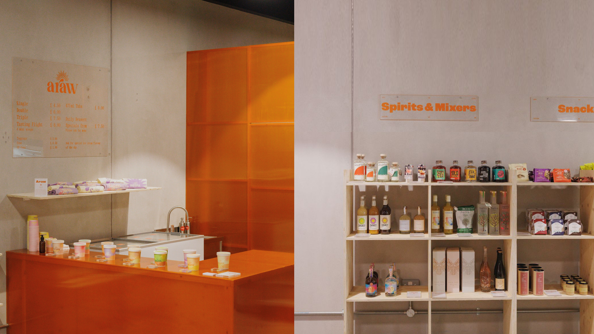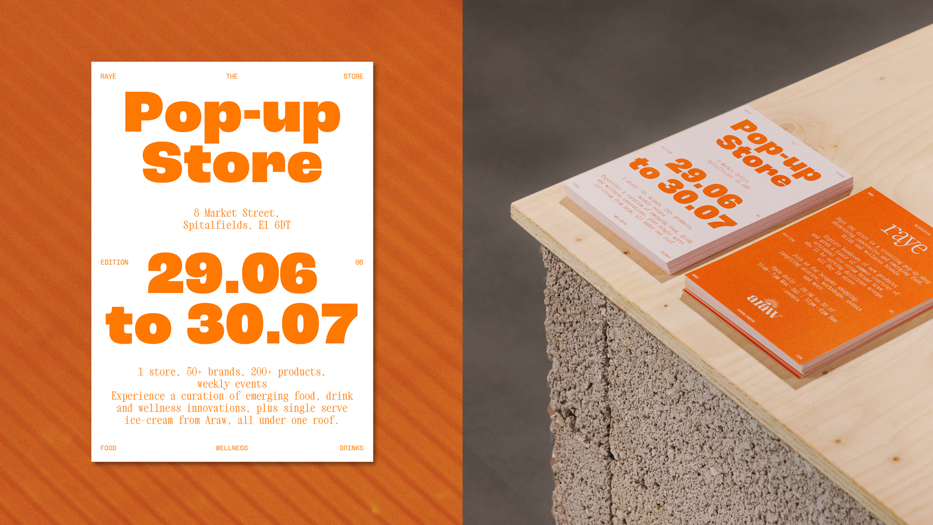 Edition number 06 took place in the hot summer month of 2023 in Spitalfields. The vibrant color as well as the chunky, friendly typeface invited customers to stop by, browse through the wide range of innovative brands and enjoy a scoop of artisanal ice cream in store.